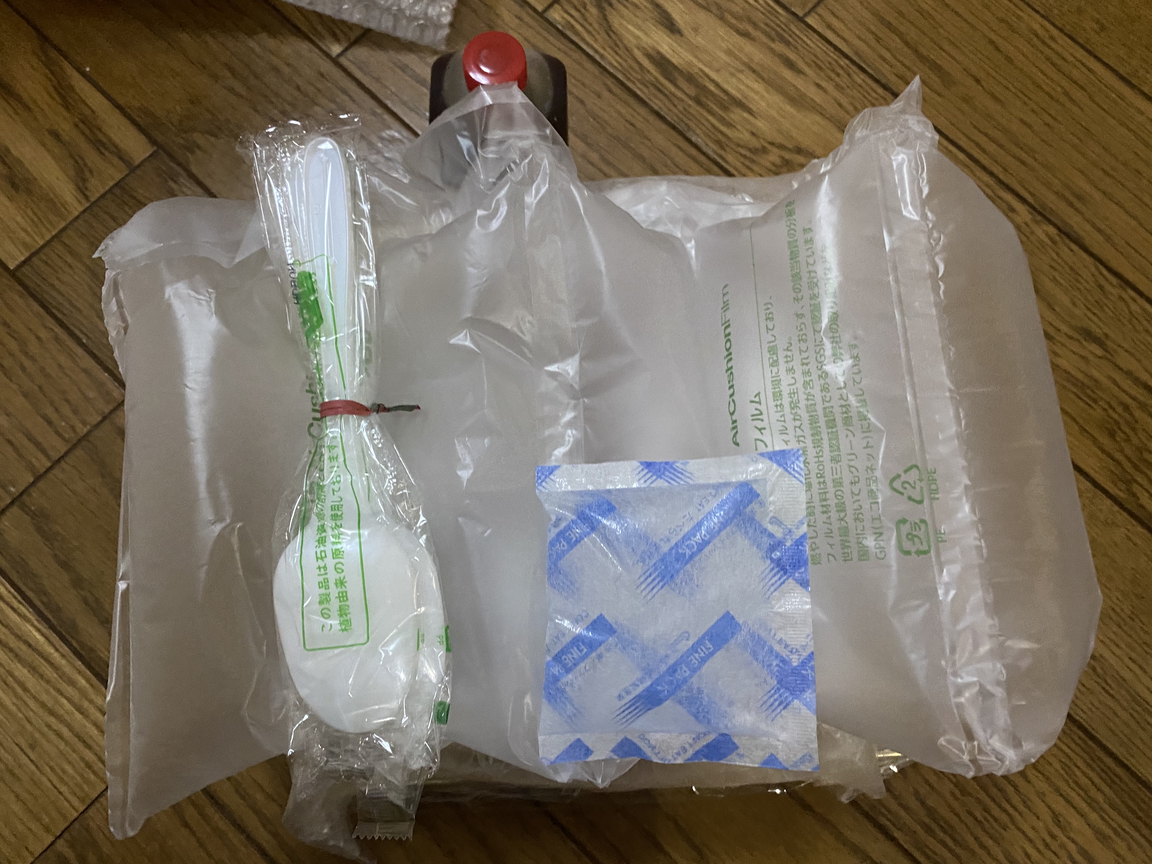 中には梱包材がたくさんと、プラスチックのスプーンとナイフが!気遣いがとても嬉しいです♪