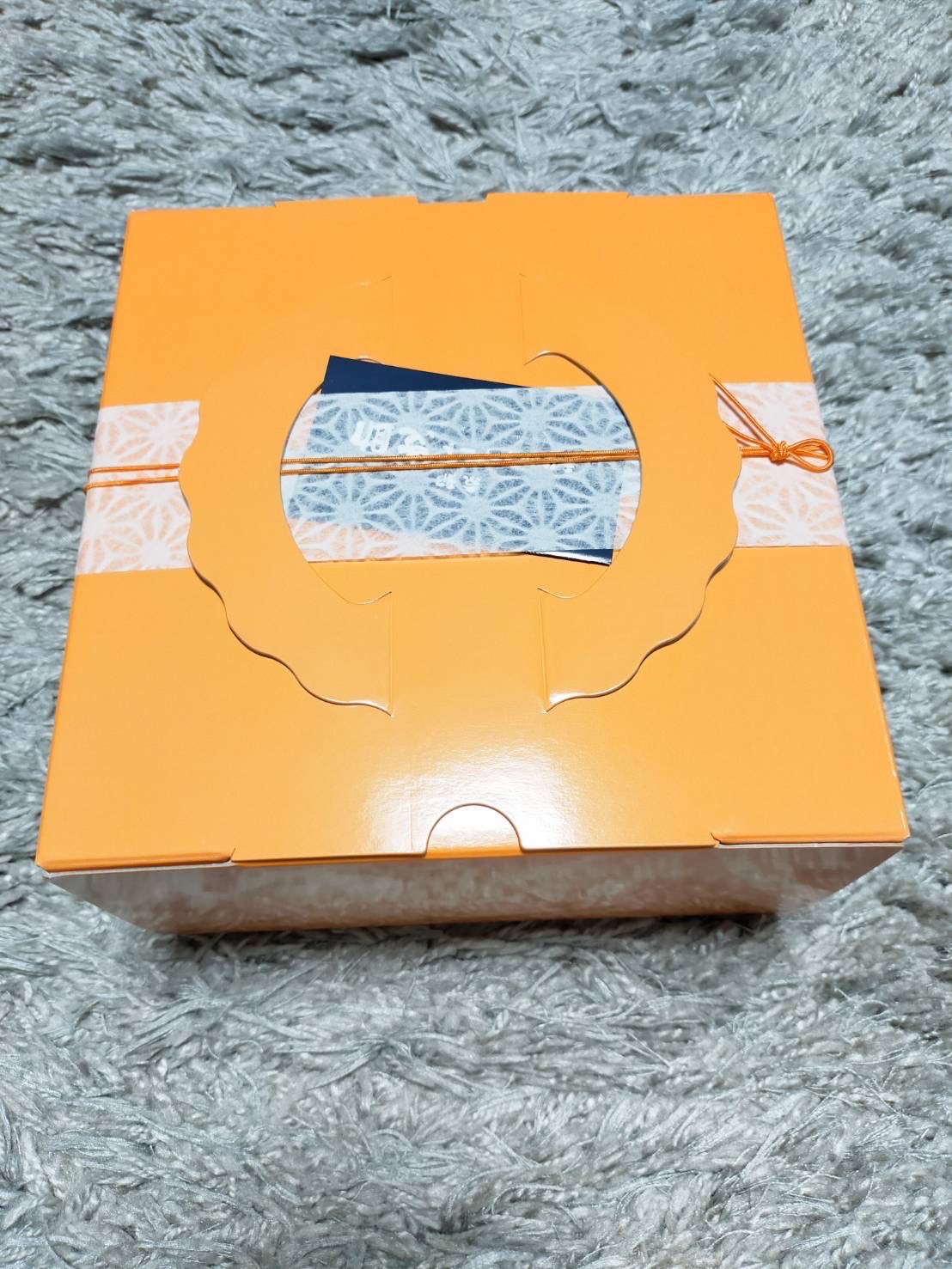 オレンジの大きな箱に入ったインパクトのある大人からもご年配の方からも小さい子からもみんなに喜ばれる大満足スイーツですごくおすすめです。