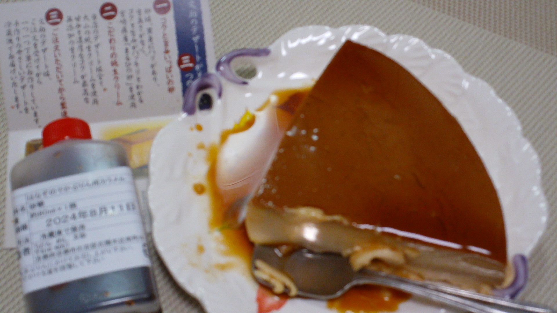 はなぞのでかぷりんが到着して、箱を開けた瞬間、家族でびっくりしました。でかぷりんどころが、でかでかぷりんではないでしょうか。これは、ほんとうに家族みんなで、楽しめるサイズに違いありません。また、受け取った側がワクワクすること、請け負います。だってこんな大きなプリンを見ることが、あった人は、今までなかなかいないでしょうから。子どもの頃に戻れるような、そんなワクワクドキドキの夢のような経験ができます。まず、丁寧に包装されている包みを取り、切り分けて、一口。うん、まったく、ほんの少し心配していた大味なんてことは、ぜんぜんありません。大きいけども、すごく、繊細な味わいです。ほんとうに丁寧に作られているのがわかります。まず、そのままを味わってみましたが、卵をはじめとして、素材の素晴らしさが伝わります。ほんとうに美味しい。合わせて特筆すべきは、このカラメルソース。ほんとうに濃くて甘味が絶妙で、素晴らしいです。これがあれば、いくらでも食べられる。こんな素晴らしいプリン、みんなに愛されます