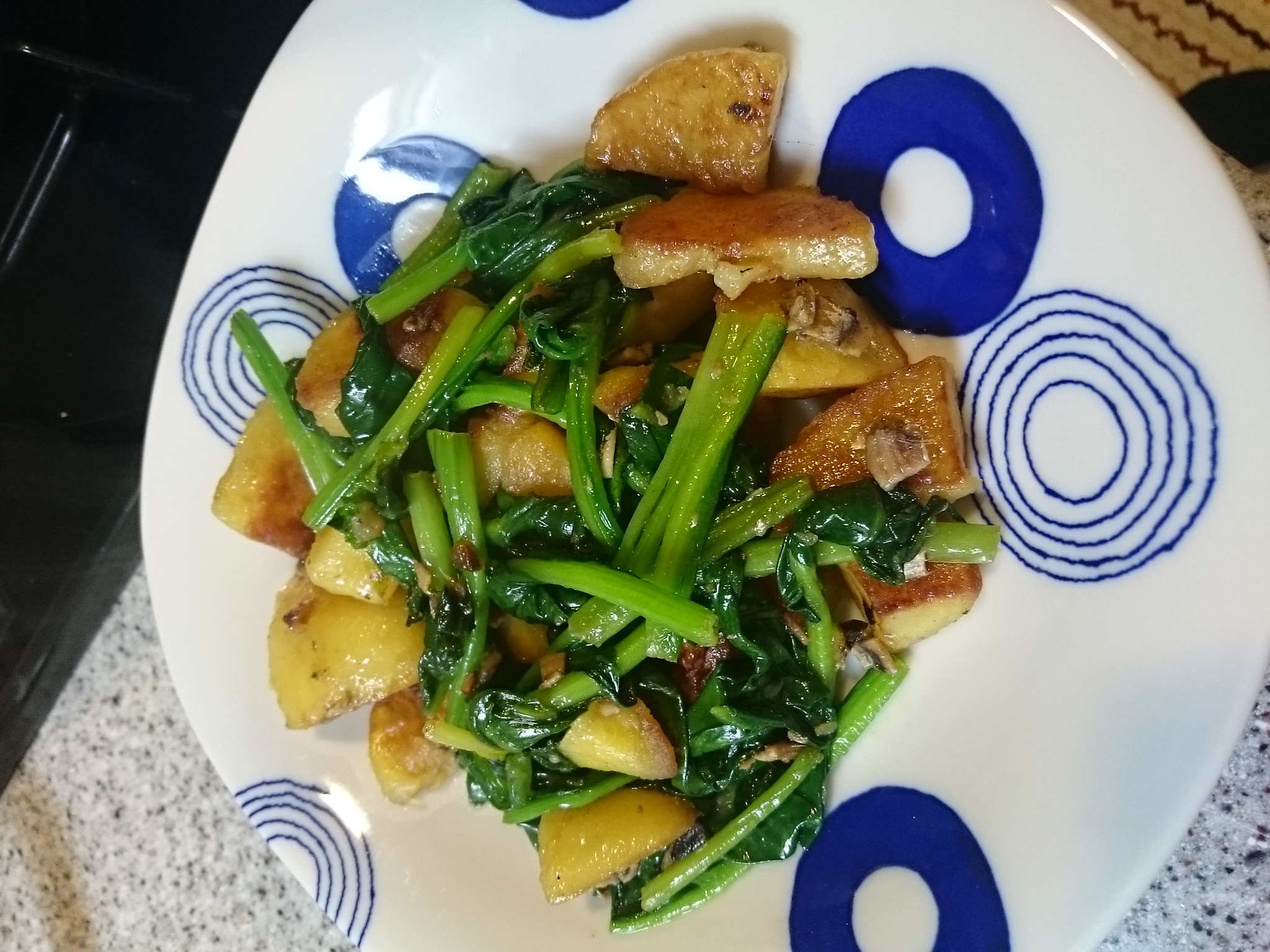 子どもにも食べてもらおうと思い、ほうれん草とポテトのアンチョビ炒めを作りました。