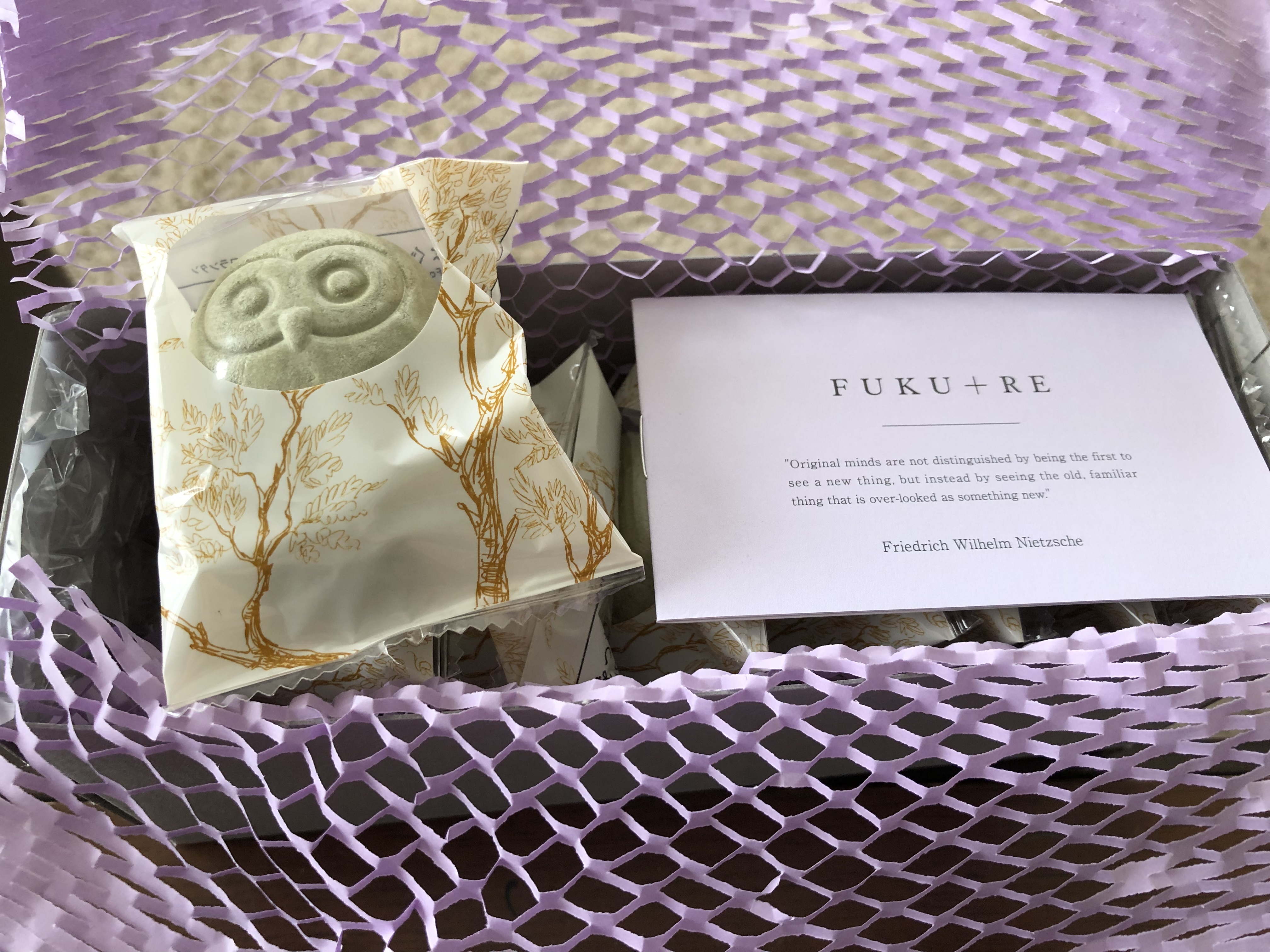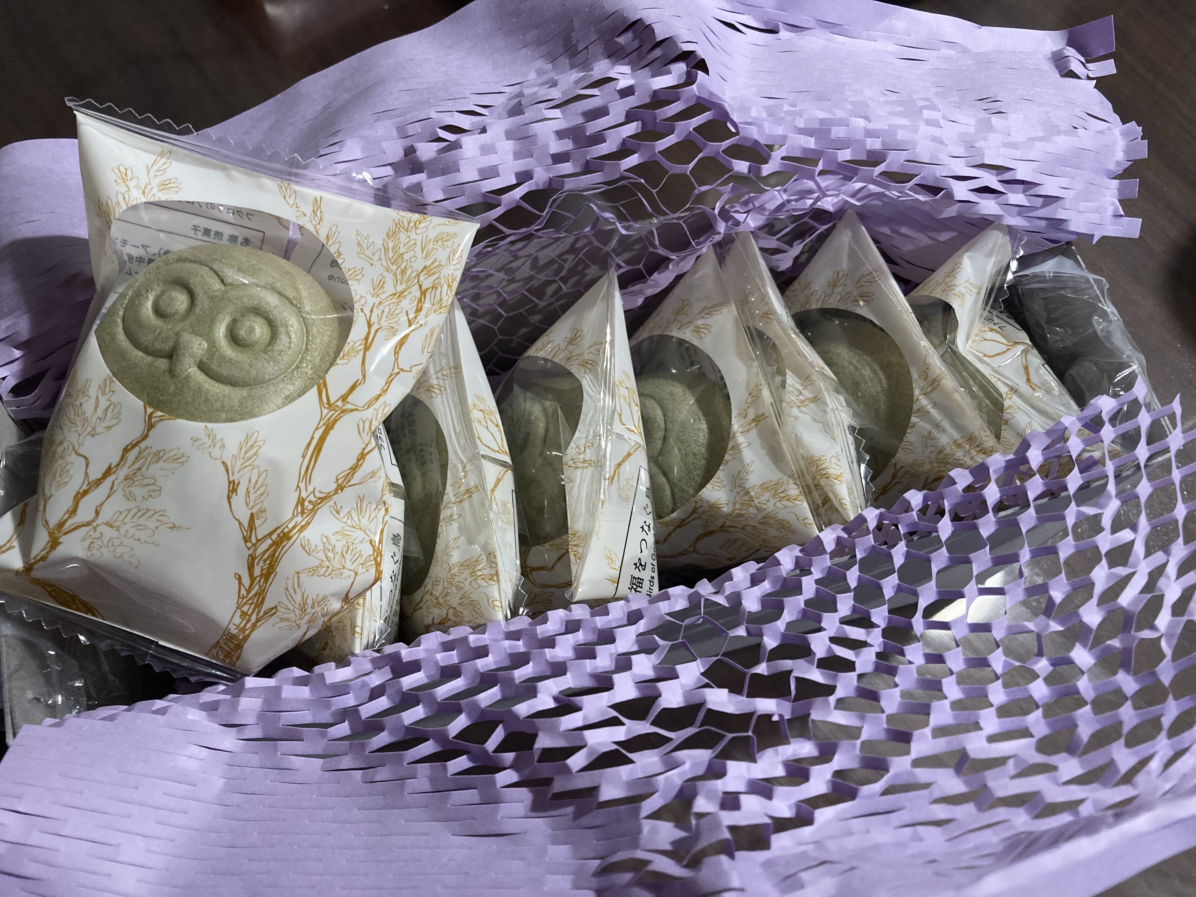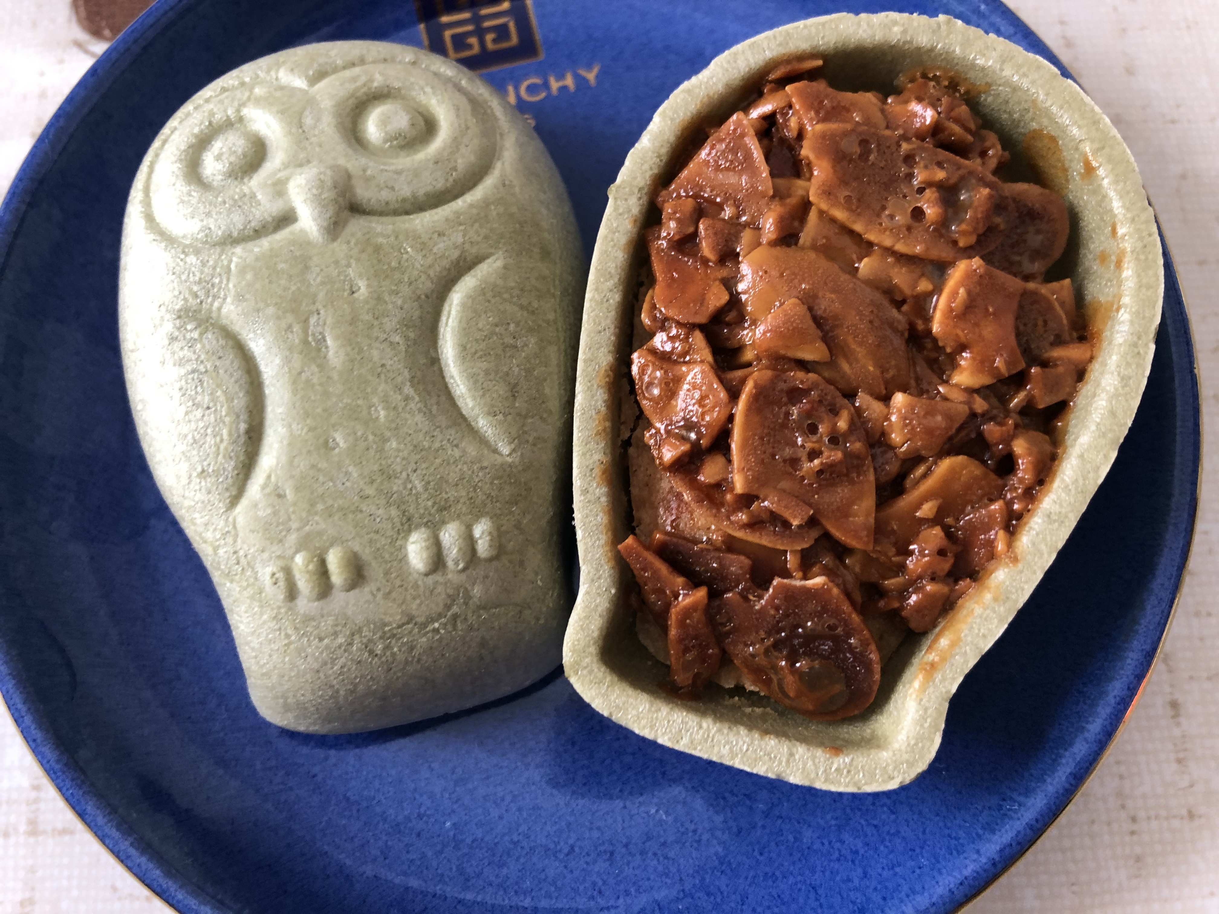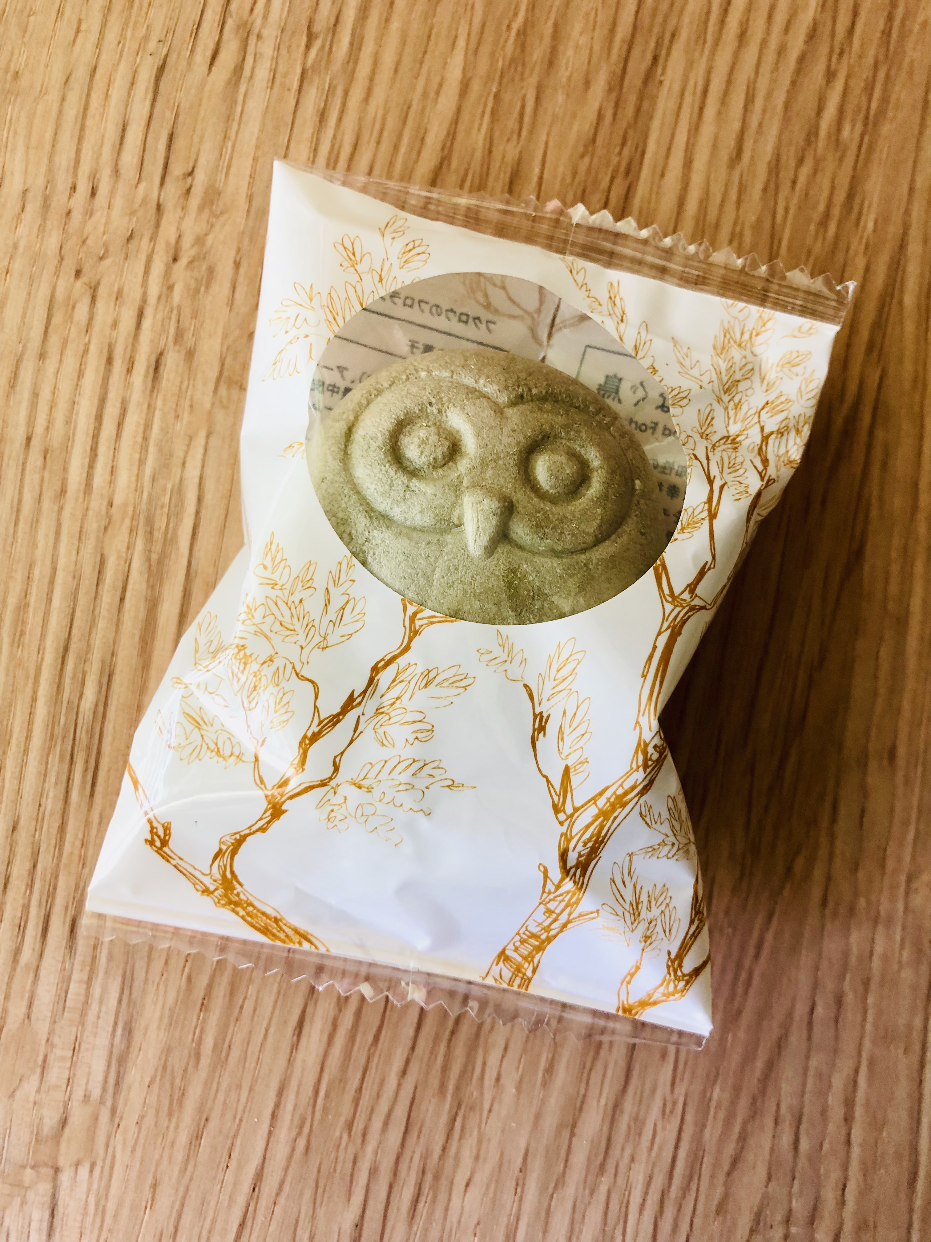 フクロウに象られた皮はよもぎ風味の最中皮なのですが、ヨモギの香りがうっすらと感じられ、洋菓子×和菓子がうまく融合されたハイブリッドスイーツです。