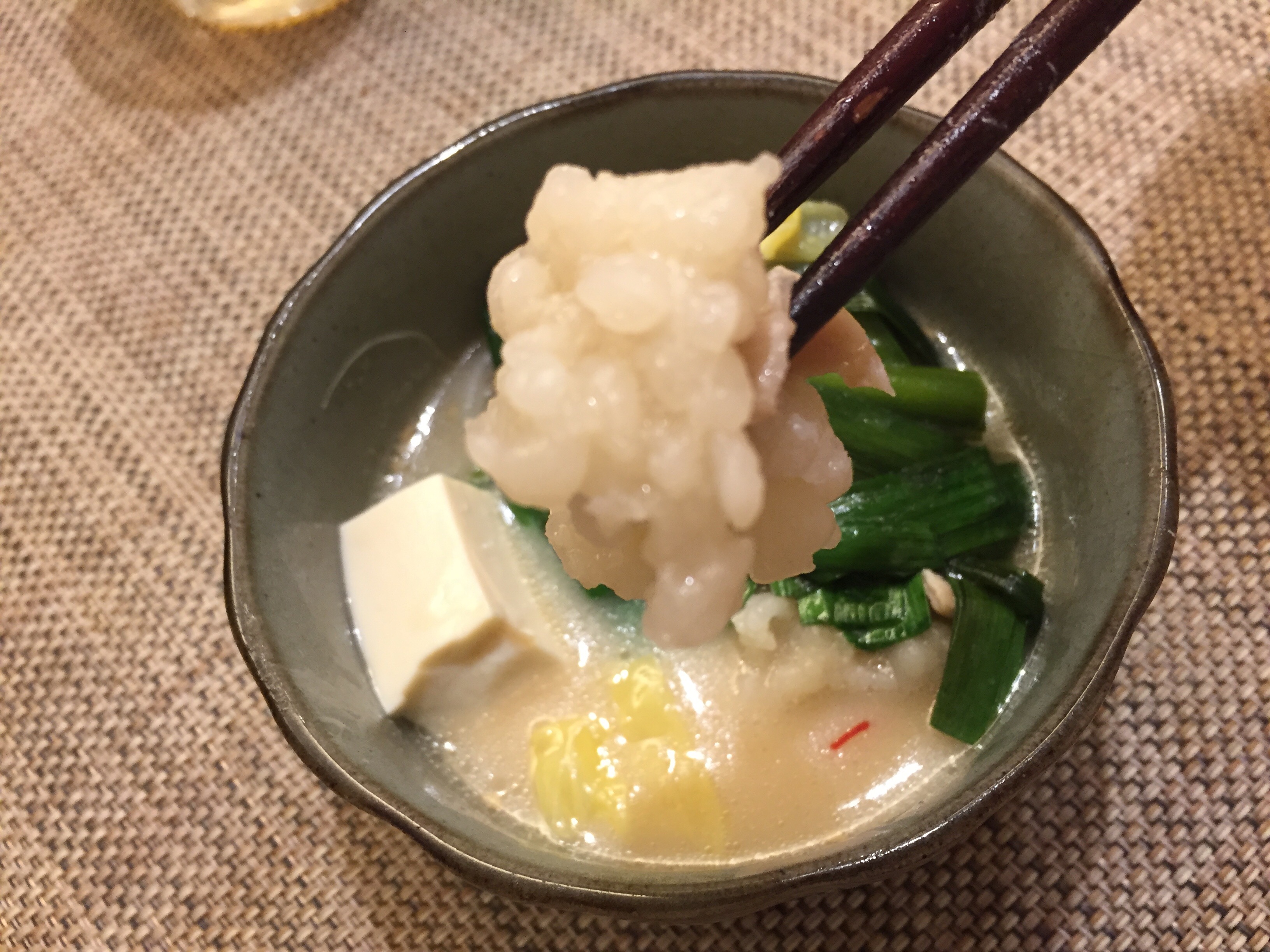 ちゃんぽん麺の後に頂く後雑炊は、牛もつや野菜からでた旨味を余すことなく楽しむことができ絶品です。