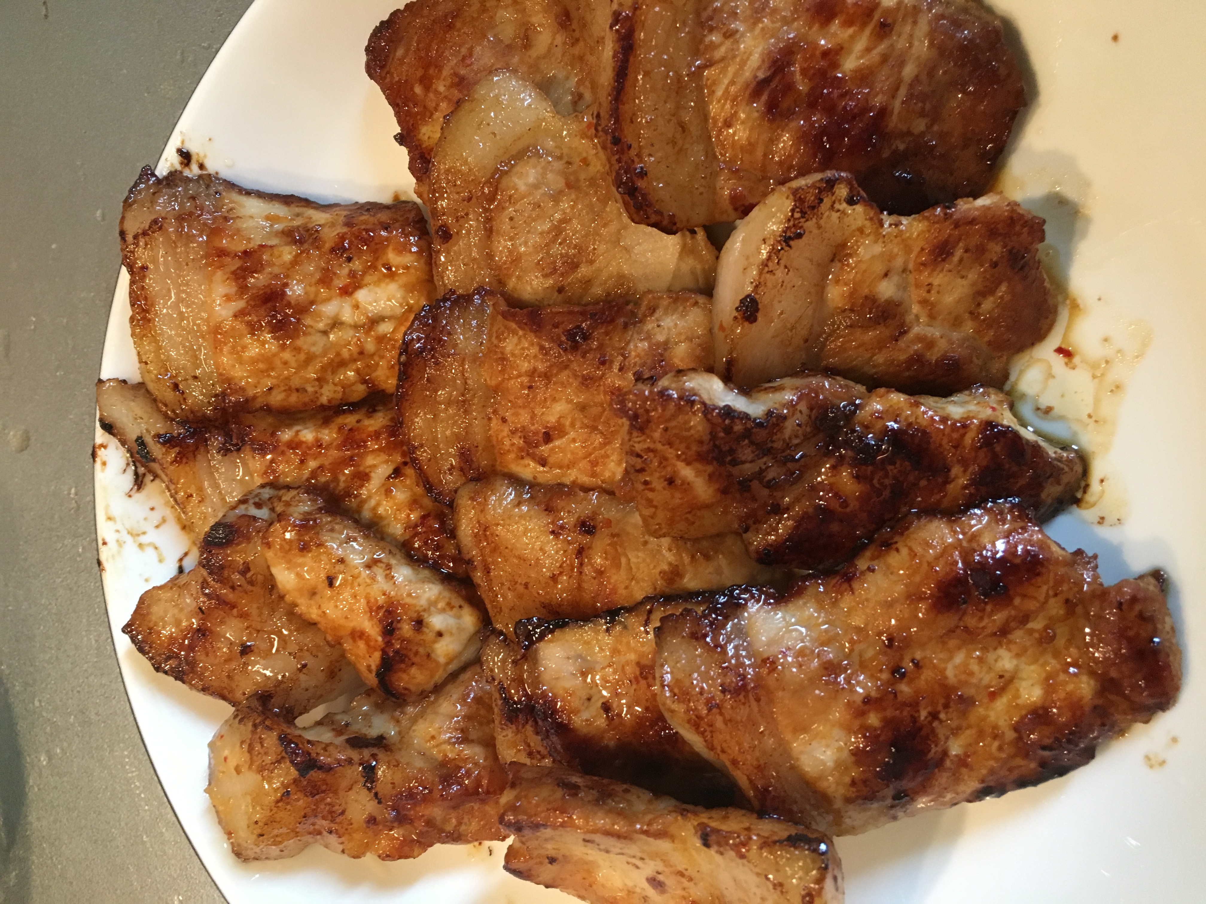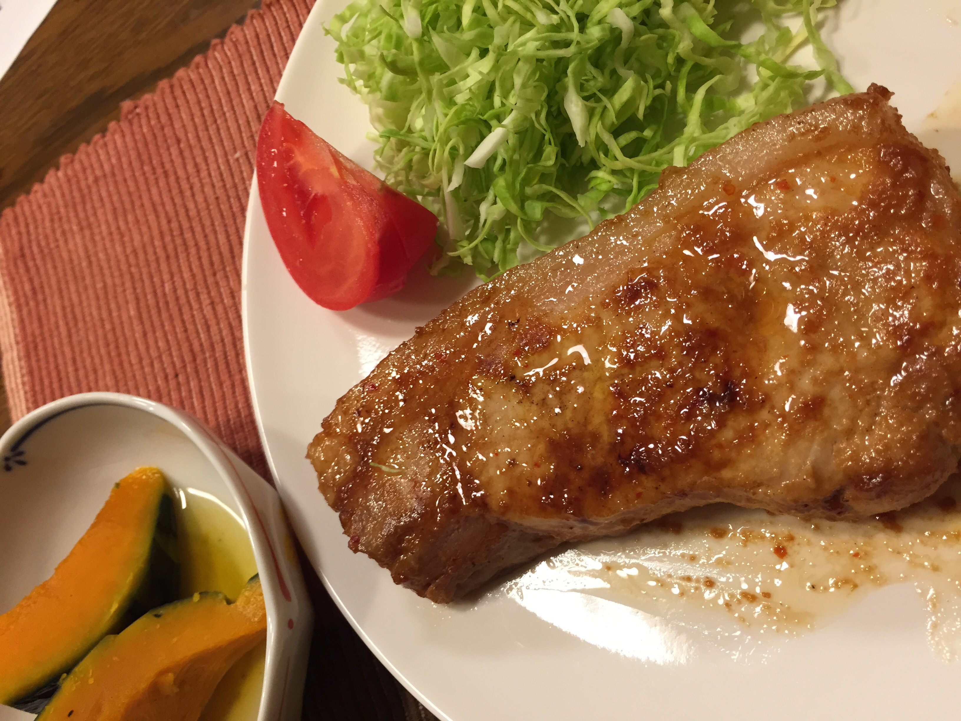 お肉は分厚く、お酒にもご飯にも合うピリ辛お味噌の香り。フライパンで焼くには少し時間がかかりますが、最初は肉の脂部分を押し当て、その脂から両面を少し焦げ目が出来るように焼き、弱火で蓋をしてじっくり焼きました。なんとも言えない、お肉とお味噌の香りがとても食欲をそそります。