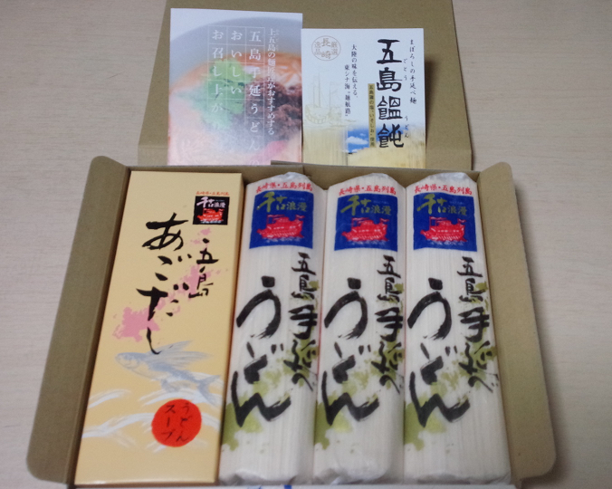 五島手延べうどんは、長崎県五島列島で作られてきたうどんです。地元特産の椿油を使用し、乾麺とは思えない程の強いコシと滑らかな食感が特徴。そうめんより太く、うどんより細い絶妙な太さで、食べやすい点も評価されています。