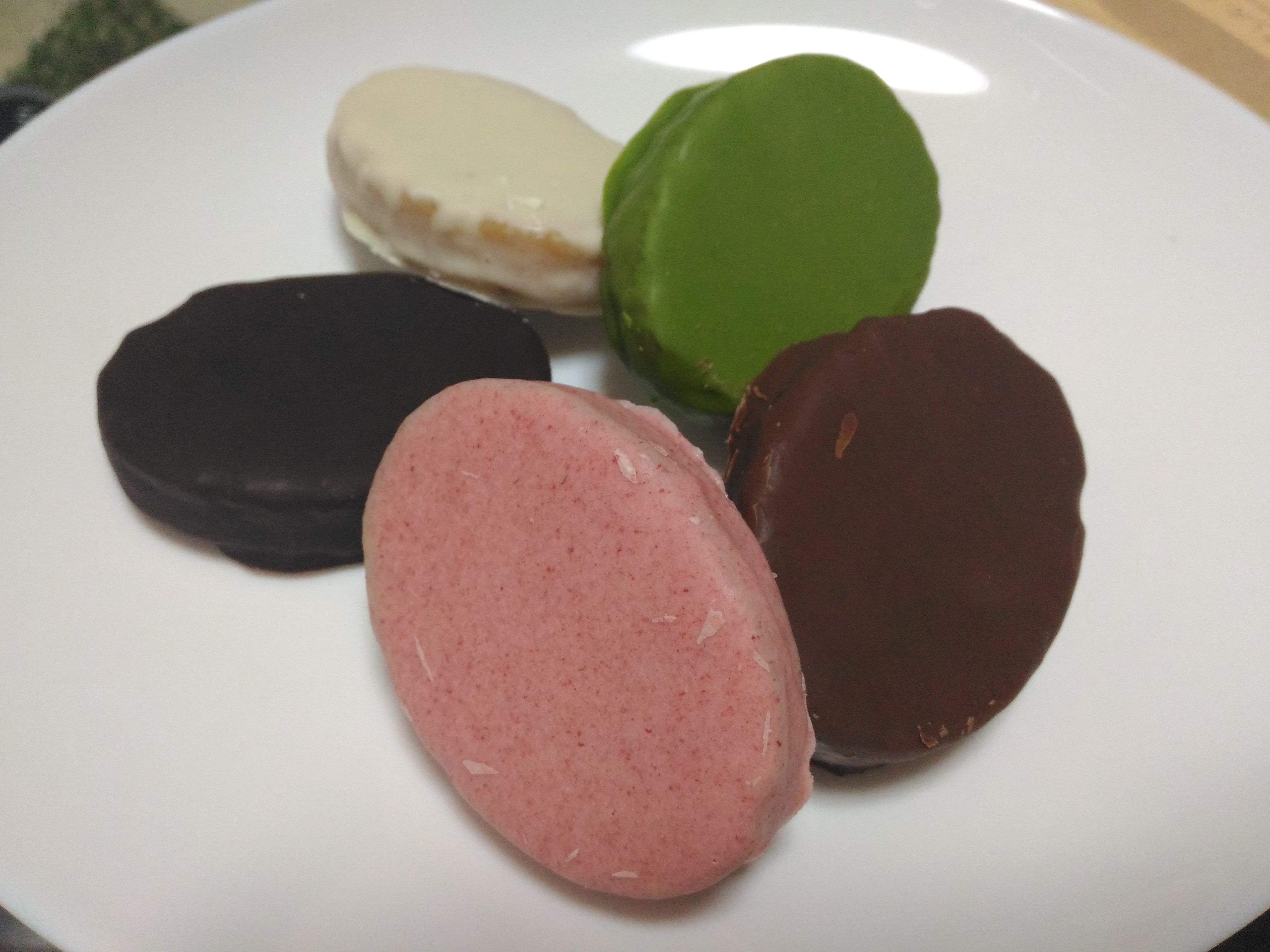 味はチョコレート・ホワイトチョコレート・抹茶・苺・キャラメルの5種類。