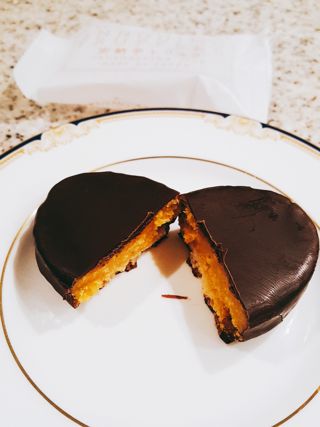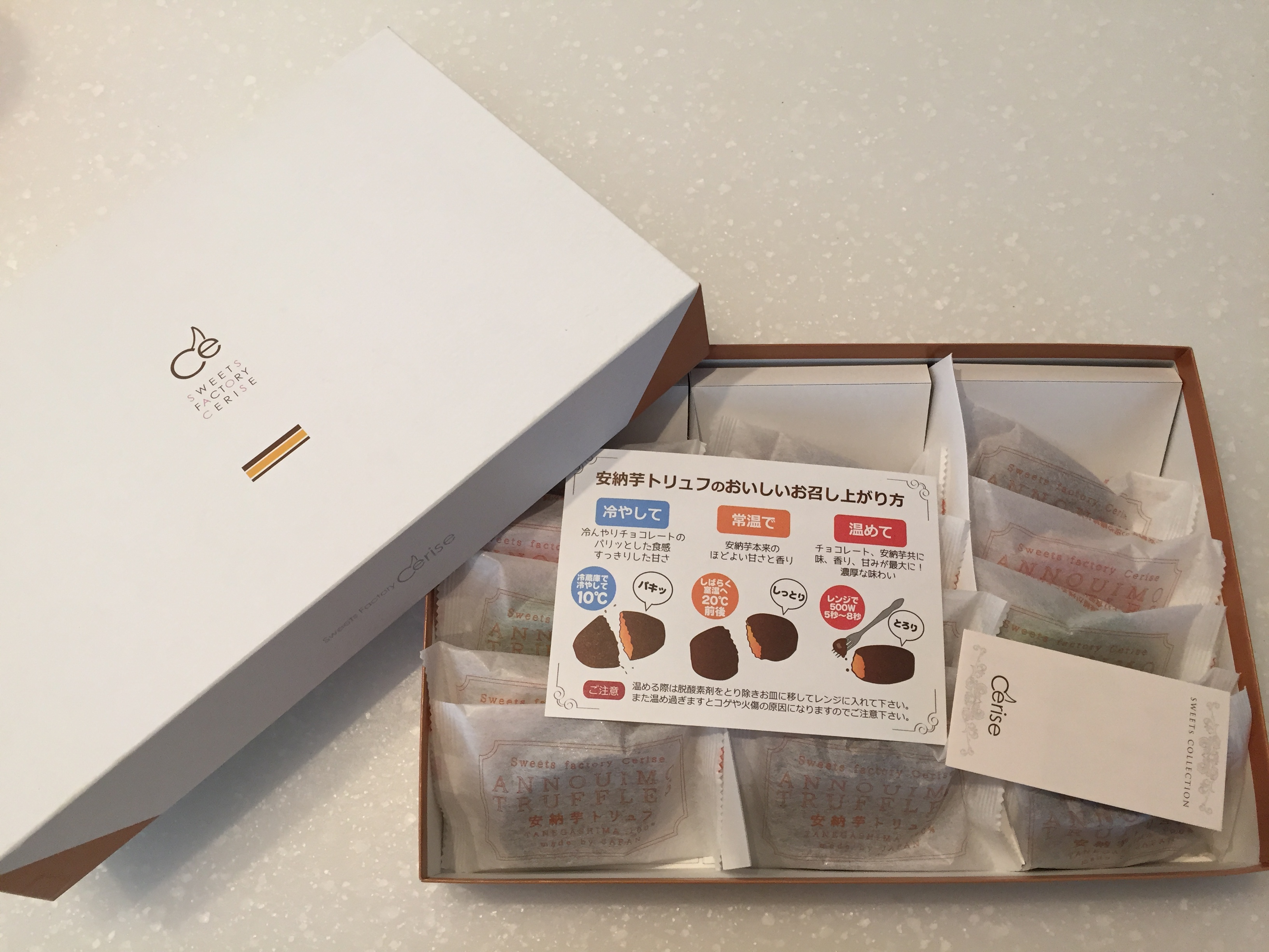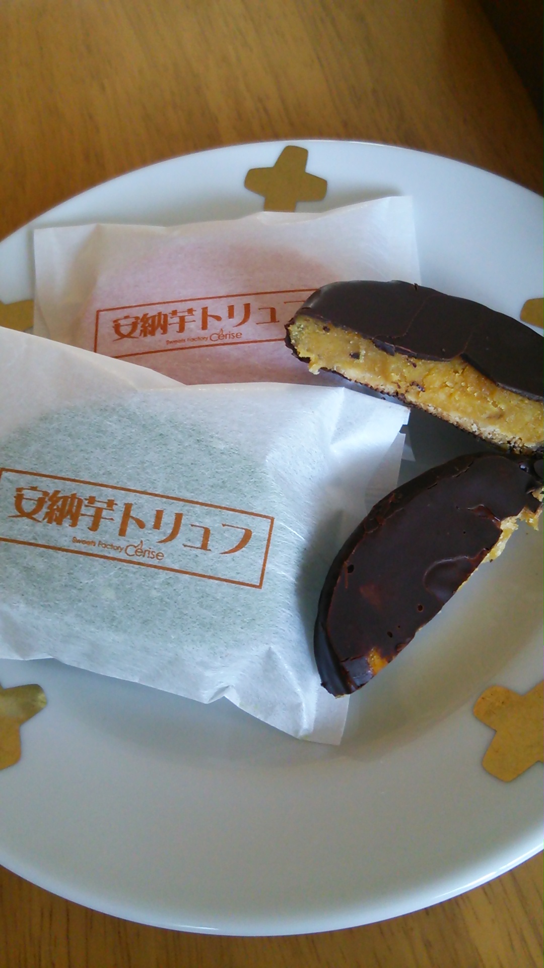 ショップさんでおすすめされている冷やして・常温で・温めての三つの温度帯で食べてみましたが、「冷やして」はチョコレートのパリッとした食感と安納芋のほっくりした食感がおもしろく、「常温で」はチョコレートも安納芋もしっとりしていてどちらの香りも楽しめました。「温めて」は安納芋の甘みが一番感じられ、コーティングのチョコレートは味ではなくコク・香り・なめらかな食感をプラスしてくれます。