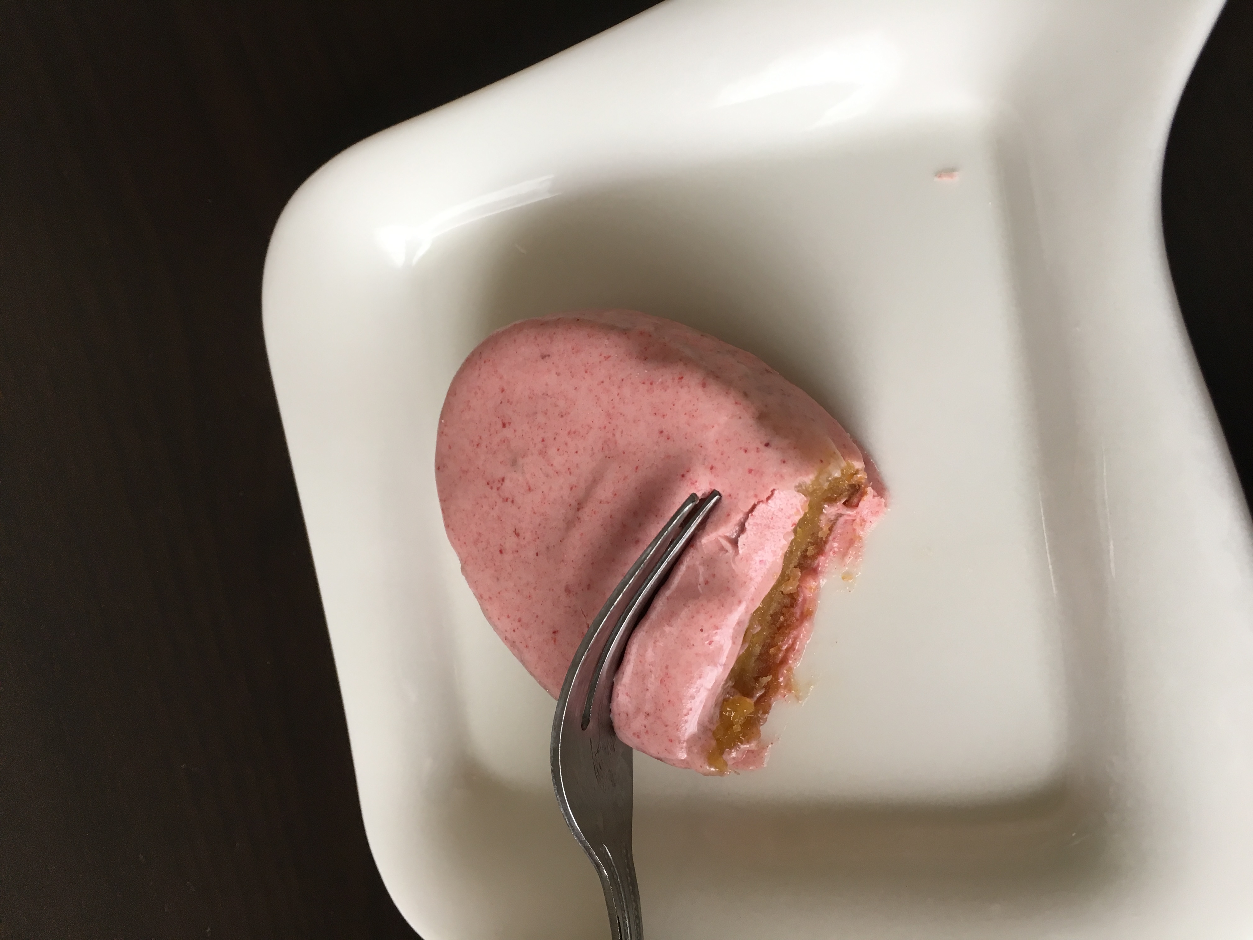 苺・・・苺の香りと爽やかな酸味でさっぱりと食べられます。苺チョコレートのシャリシャリっとした食感もおもしろいです。こちらも抹茶同様、香りが一番感じられる温めて食べる食べ方が個人的には好きでした。