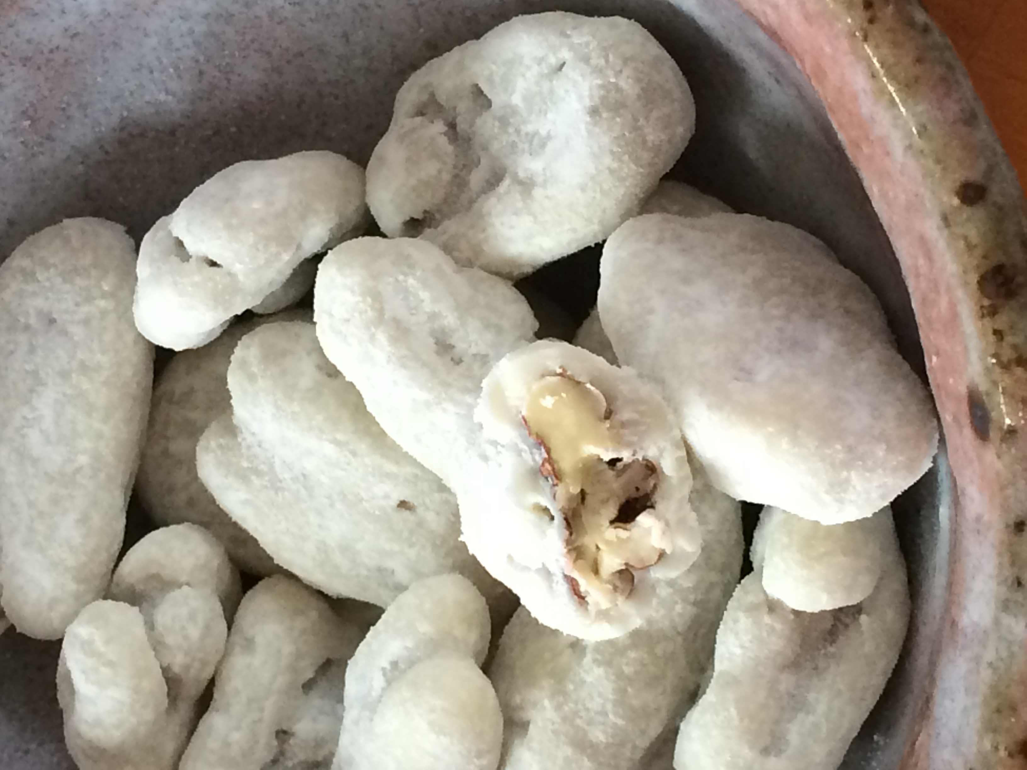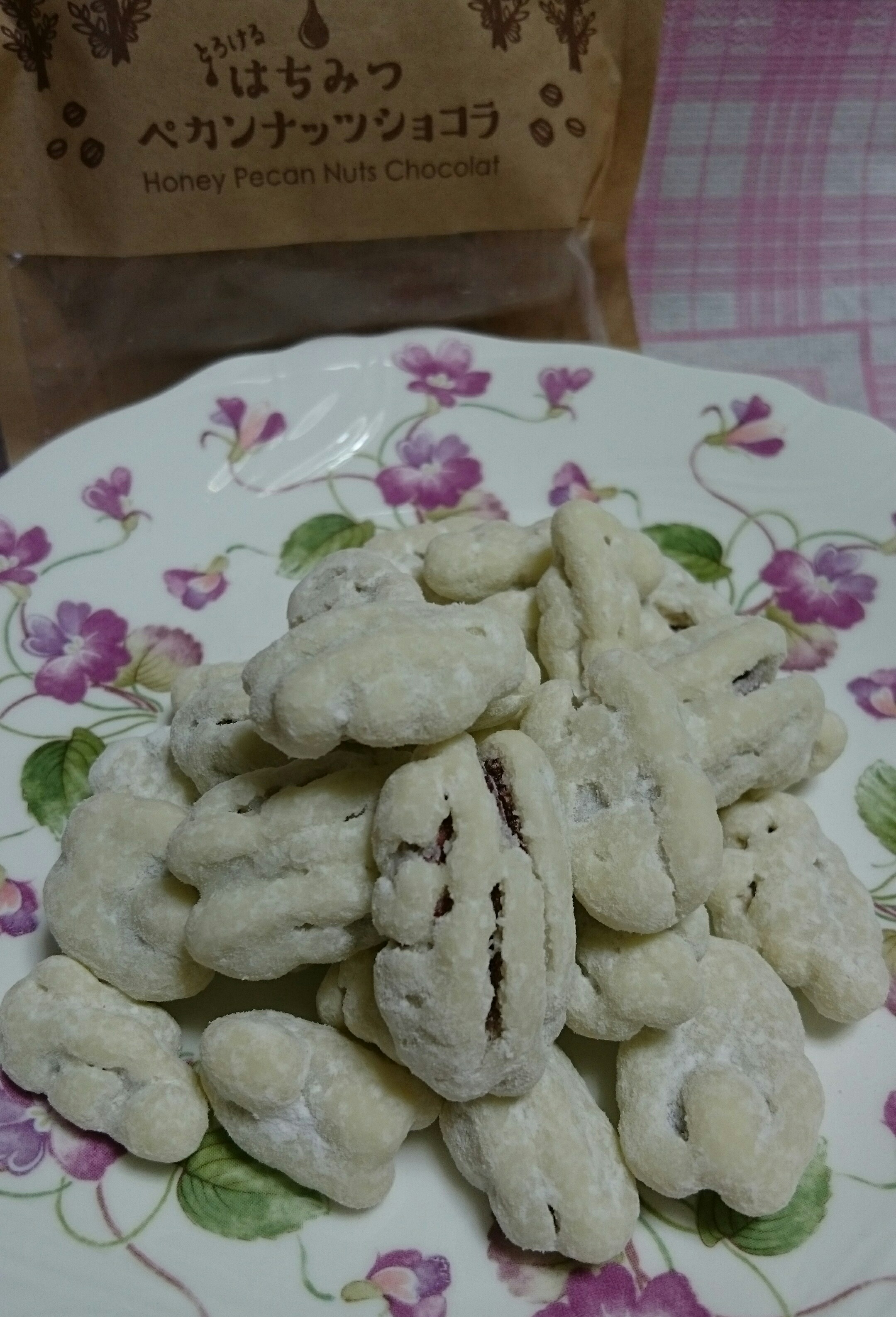 脂肪分が多く濃厚な口溶けが特徴のペカンナッツを、ベルギー産のホワイトチョコレートと特別製法でパウダー状にしたはちみつパウダーでコーティングしたナッツチョコレート。袋を開けると甘いナッツとホワイトチョコの香りが漂い、口に入れた瞬間ジュワ~っととろける食感を味わえます。ペカンナッツのとろける食感とホワイトチョコ、はちみつの甘みが絶妙に混ざり合った極上のご褒美スイーツです。