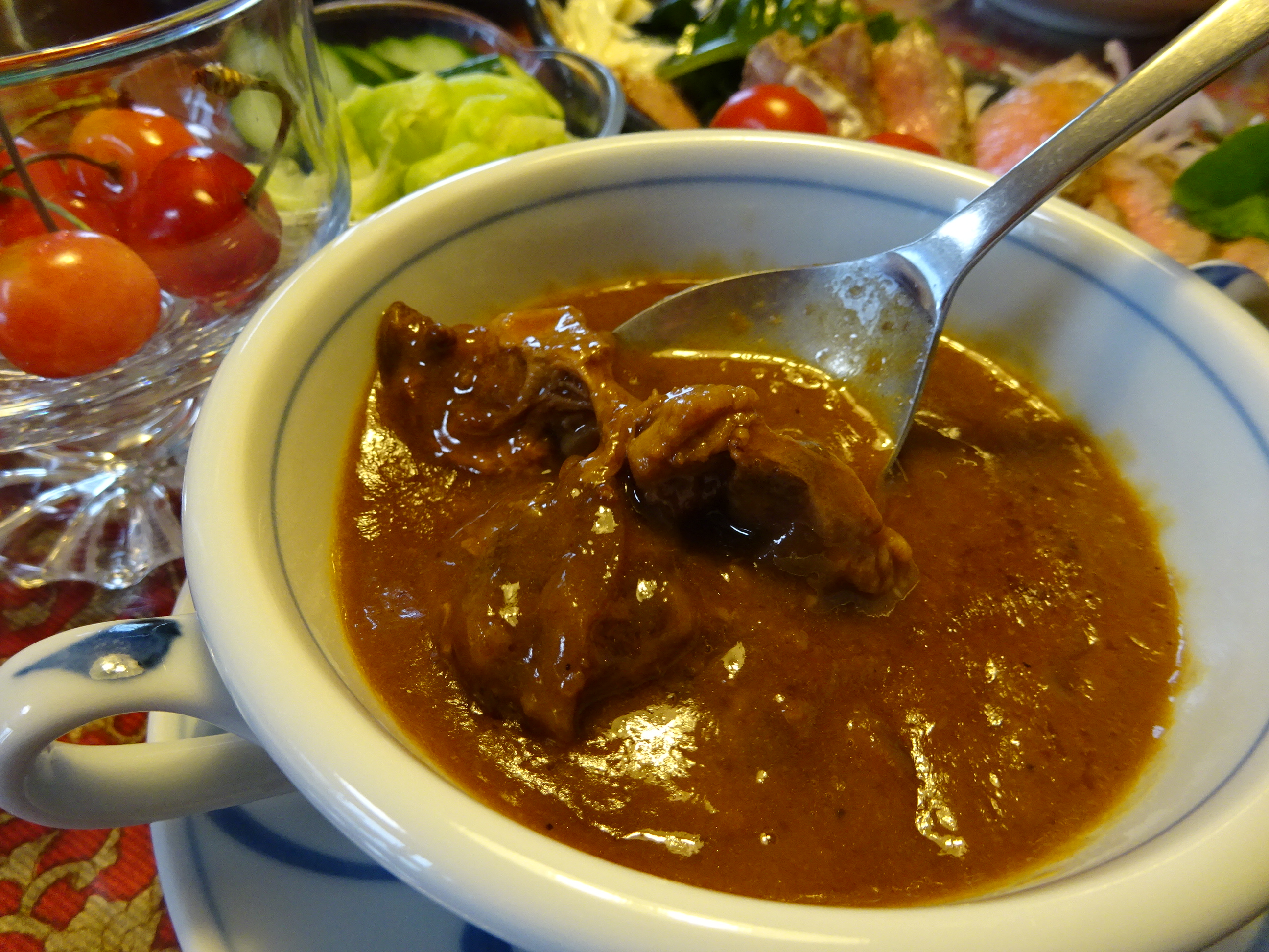 馬肉は、コレステロールや脂質が少なく、鉄分が豊富だそうですが、それなのに癖がないという食材の故、シチューの味もしっかりと染み込んでいます。デミグラスソースの中に溶けかけたタマネギの甘みがあり、大人はもちろん、我が家の2歳児も「おいし。もっと」といってパクパク食べました。