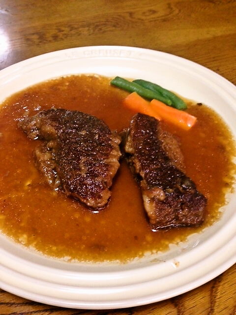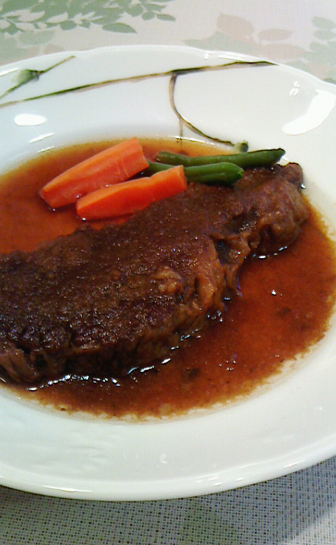 ソースもたっぷりでしたので、先に少し取り分けておき、お皿に盛ってからお肉へもう一度かけました。とろみのある、まろやかなお味のソースが染み込むように絡み、ご飯にもパンにも合う美味しさで神戸牛を堪能できました。