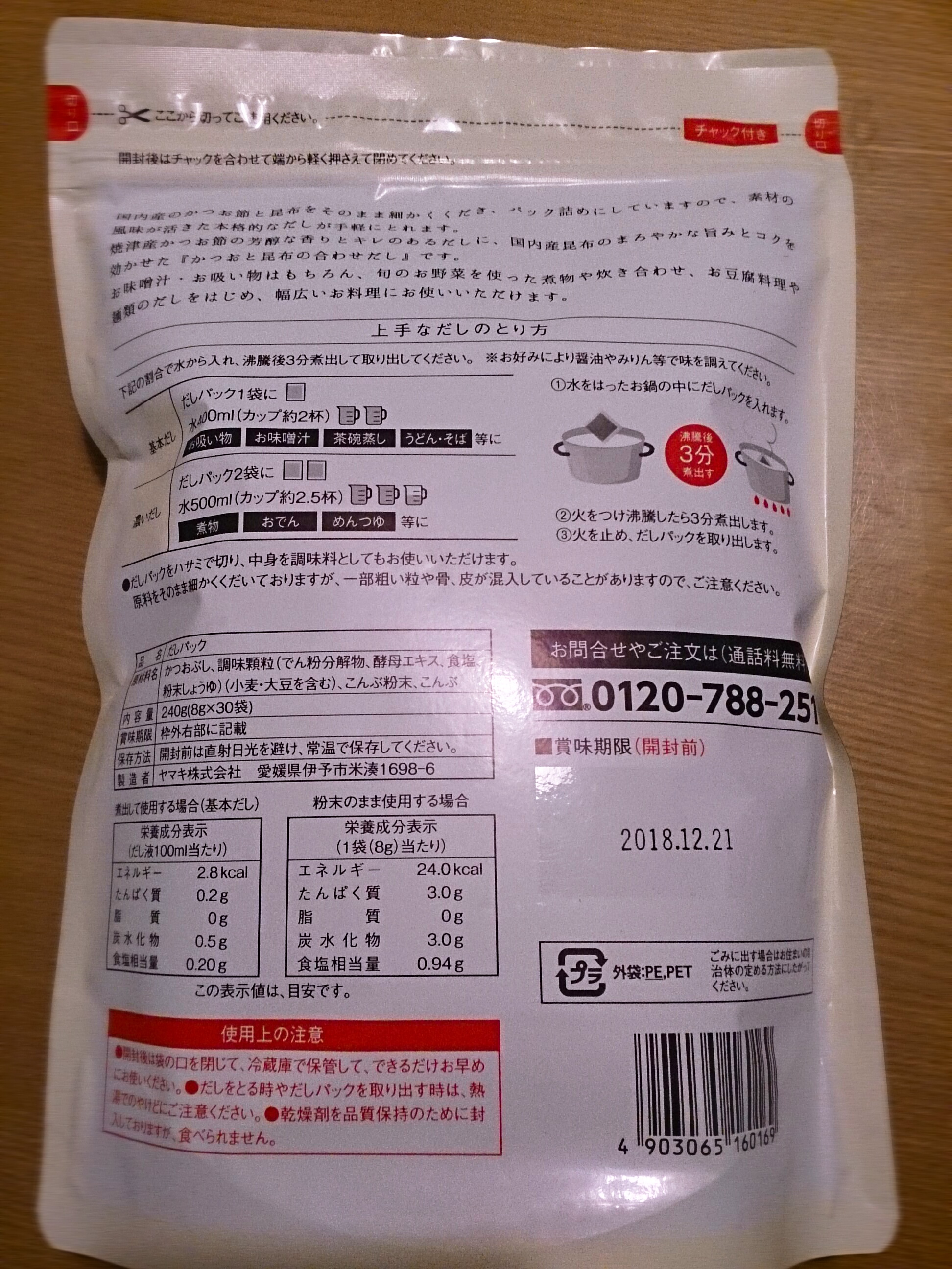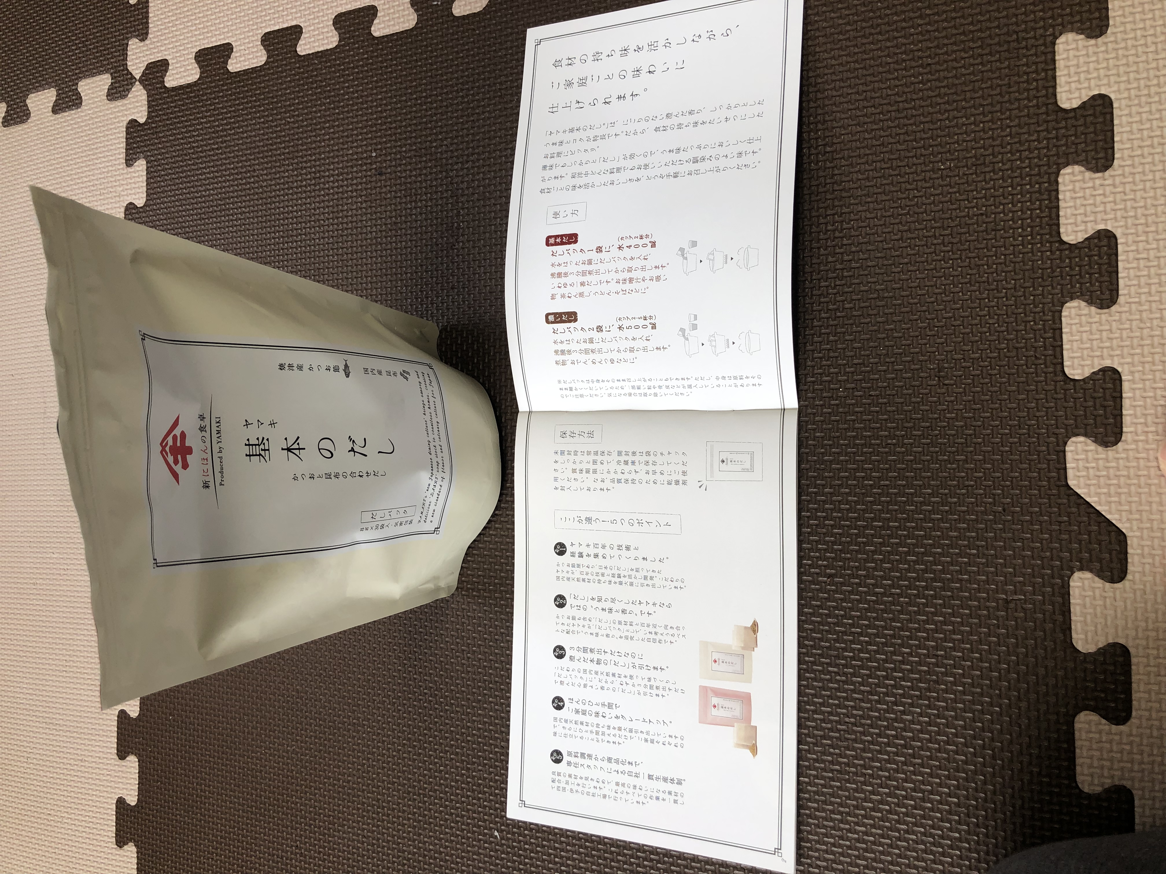 新しく買ったおだしの中身を見るのが醍醐味だと思っていますので中身を出しました。