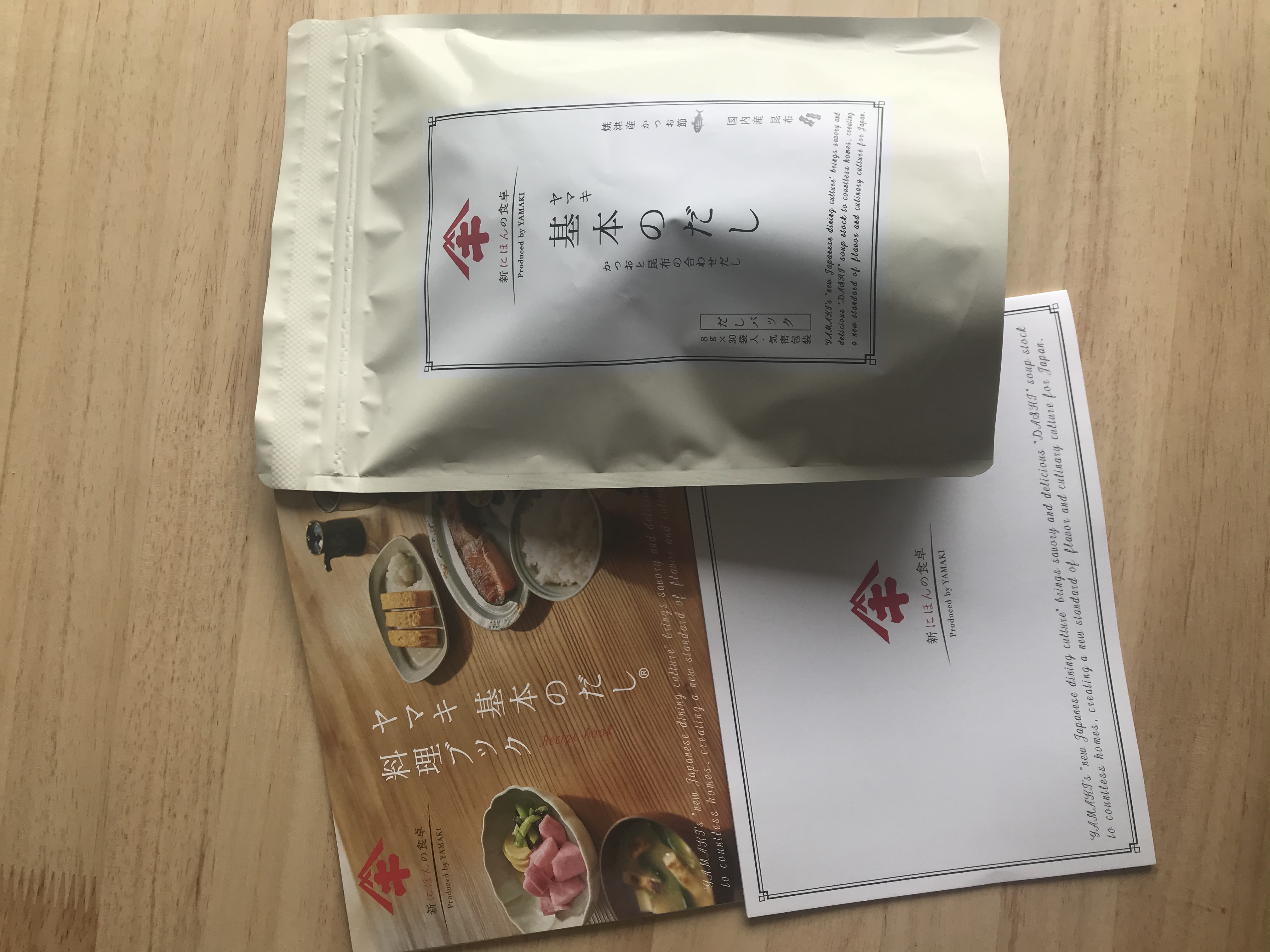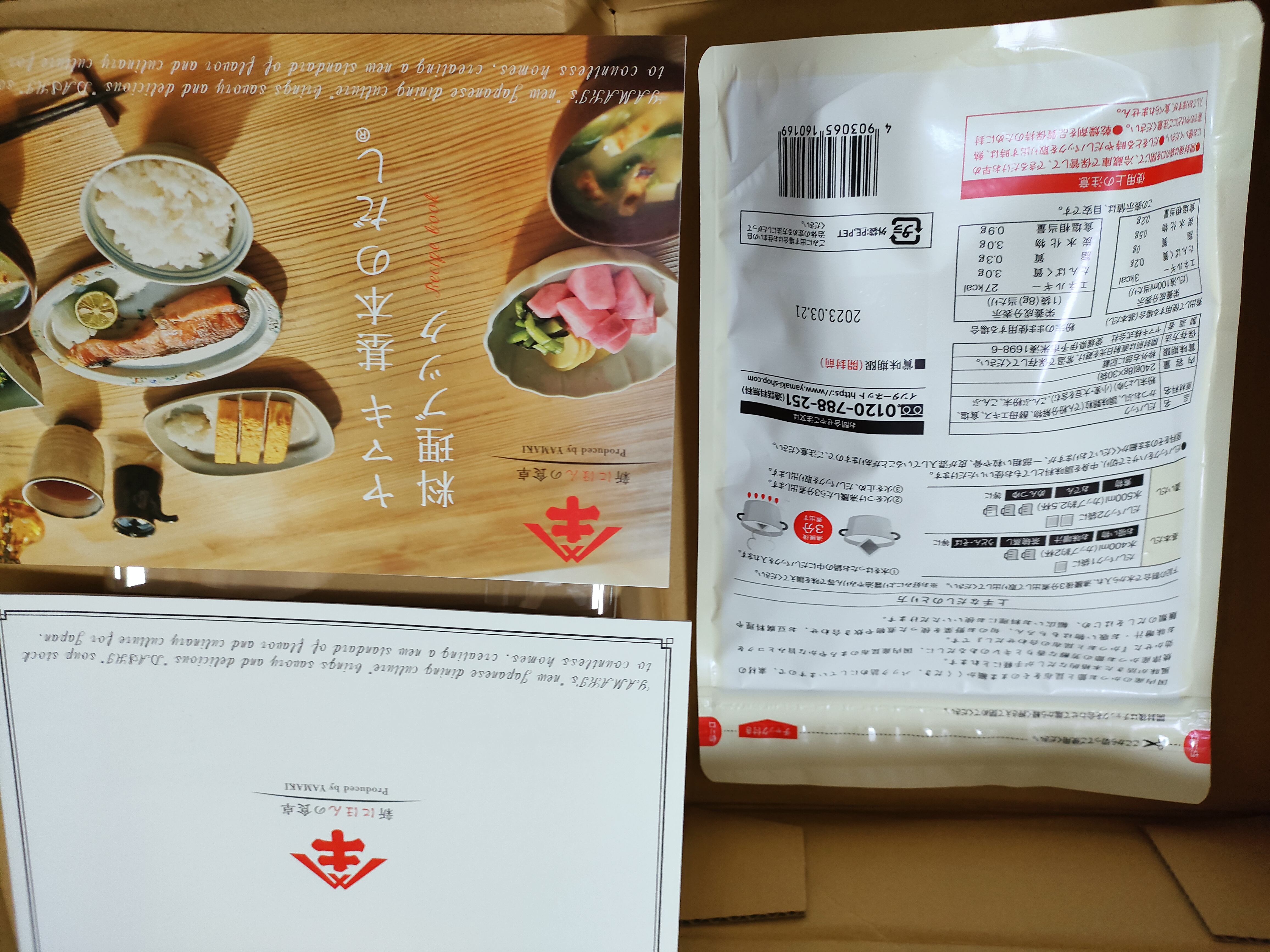 同封された「ヤマキの料理ブック」には①基本だし(お味噌、茶碗蒸しなど)②濃いだし(煮物、麺つゆ)の作り方(どちらもお湯に入れるだけ)も簡単に記載されており、どんな用途にぴったりかもわかりやすいので料理初心者にも手軽に使えそうです。