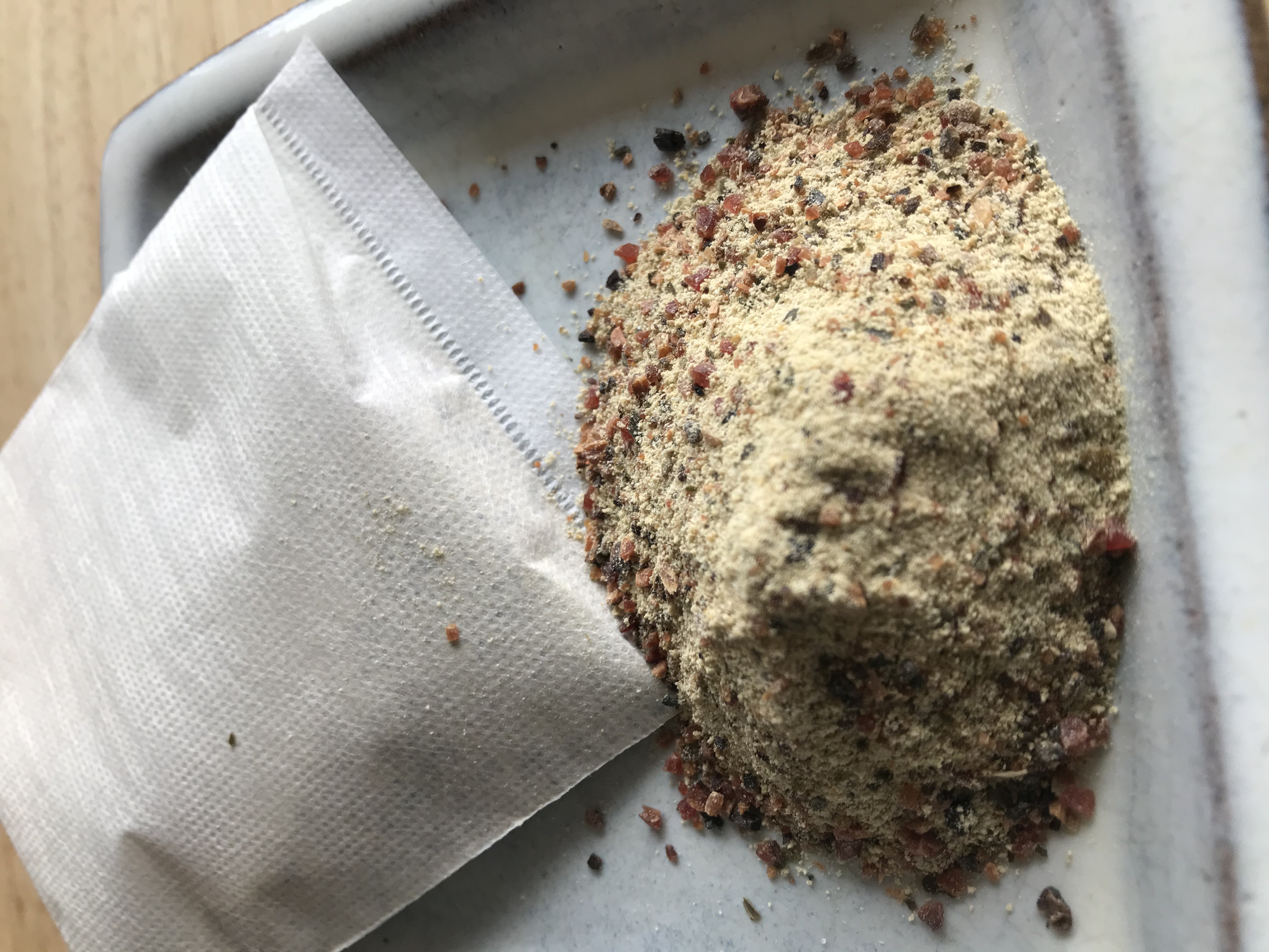 おだしの原材料には食塩と粉末醤油が入っており優しい塩味を感じたので、このまま袋から出しごはんにふりかけお湯を注いで梅干や山葵と頂いてもとても美味しいと思います。