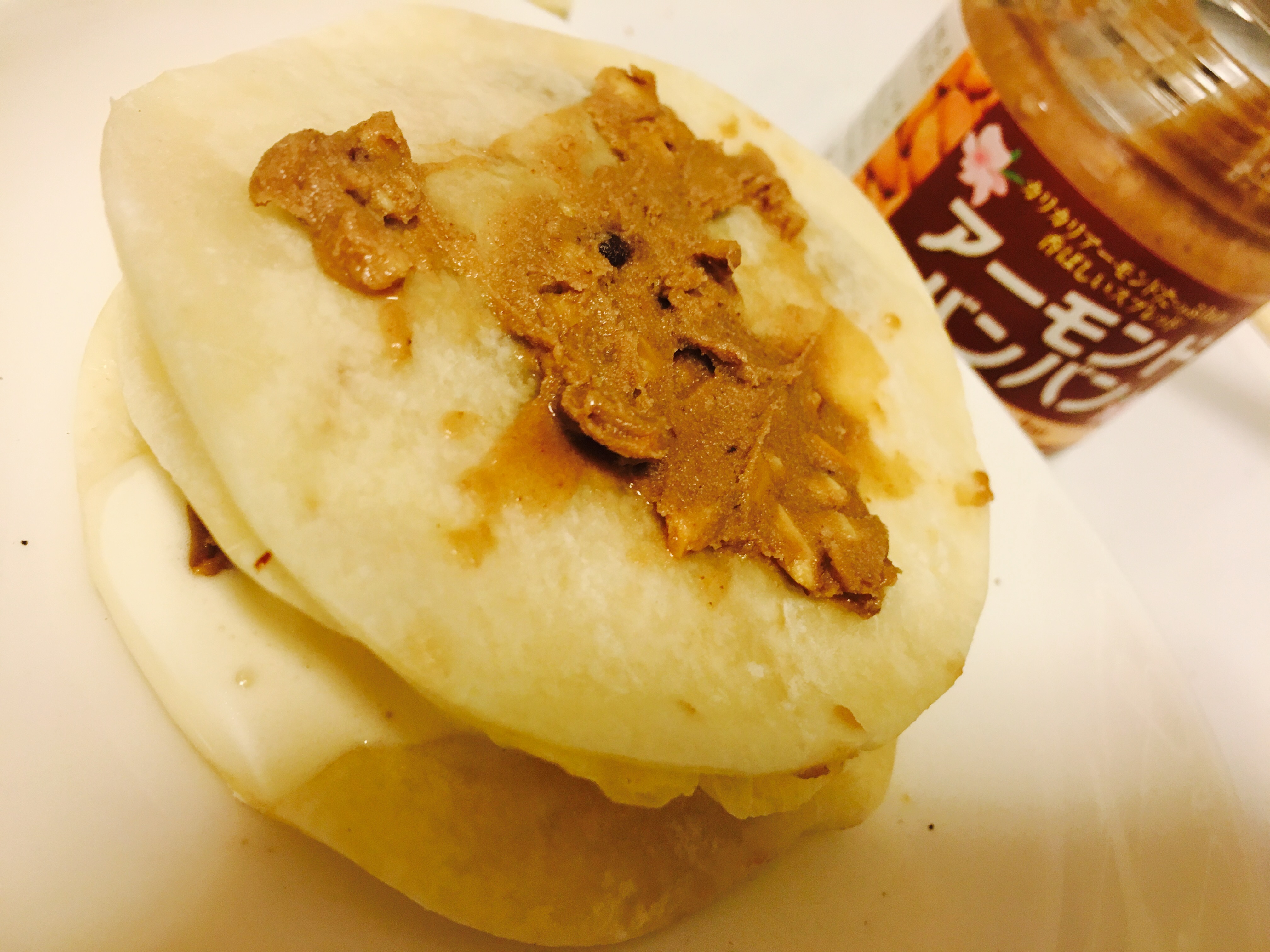 トーストに塗ったものと、餃子の皮とバニラアイス、アーモンドバンバンをミルフィーユにしたものを作ってみました(^ ^)