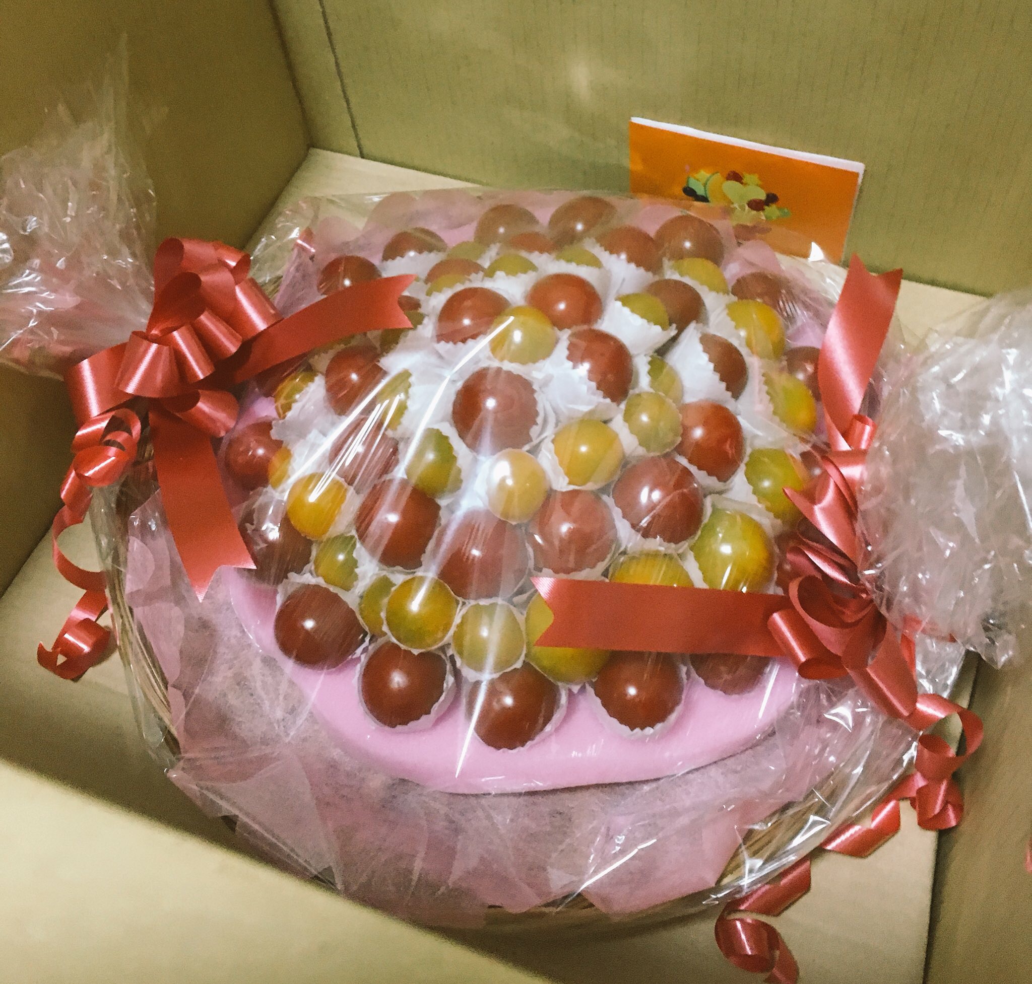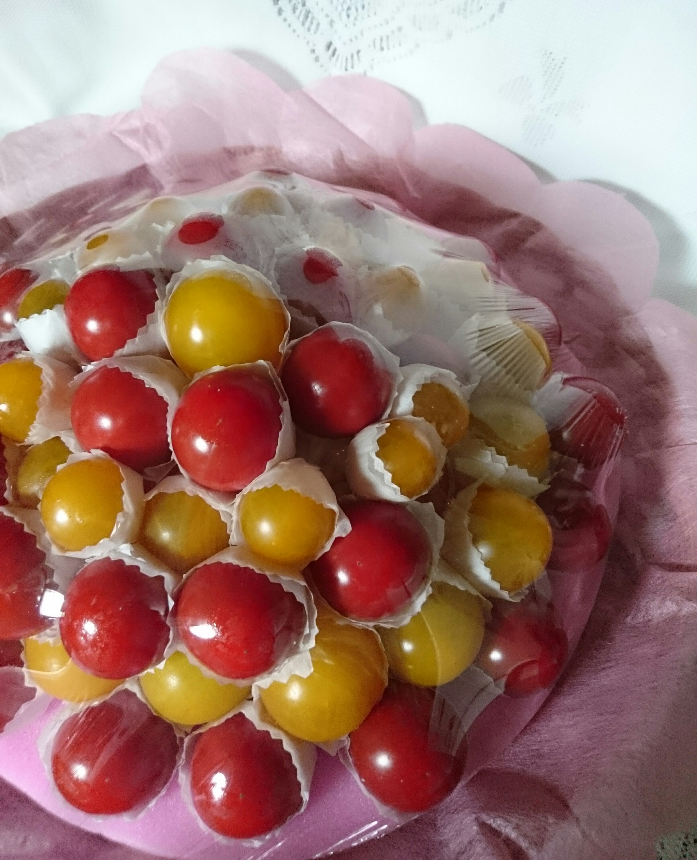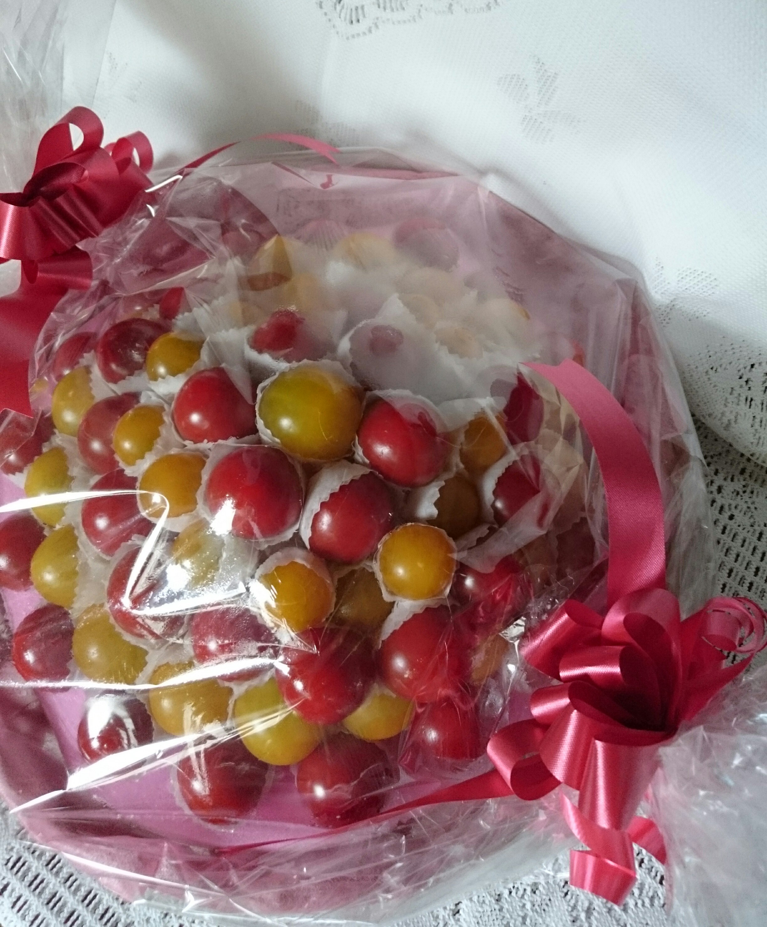 ダンボールを開けると、キャンディ状にラッピングされたトマトたちに、無類のトマト好きな娘もビックリ。早速、小躍りしながらつまみ食いしてました。