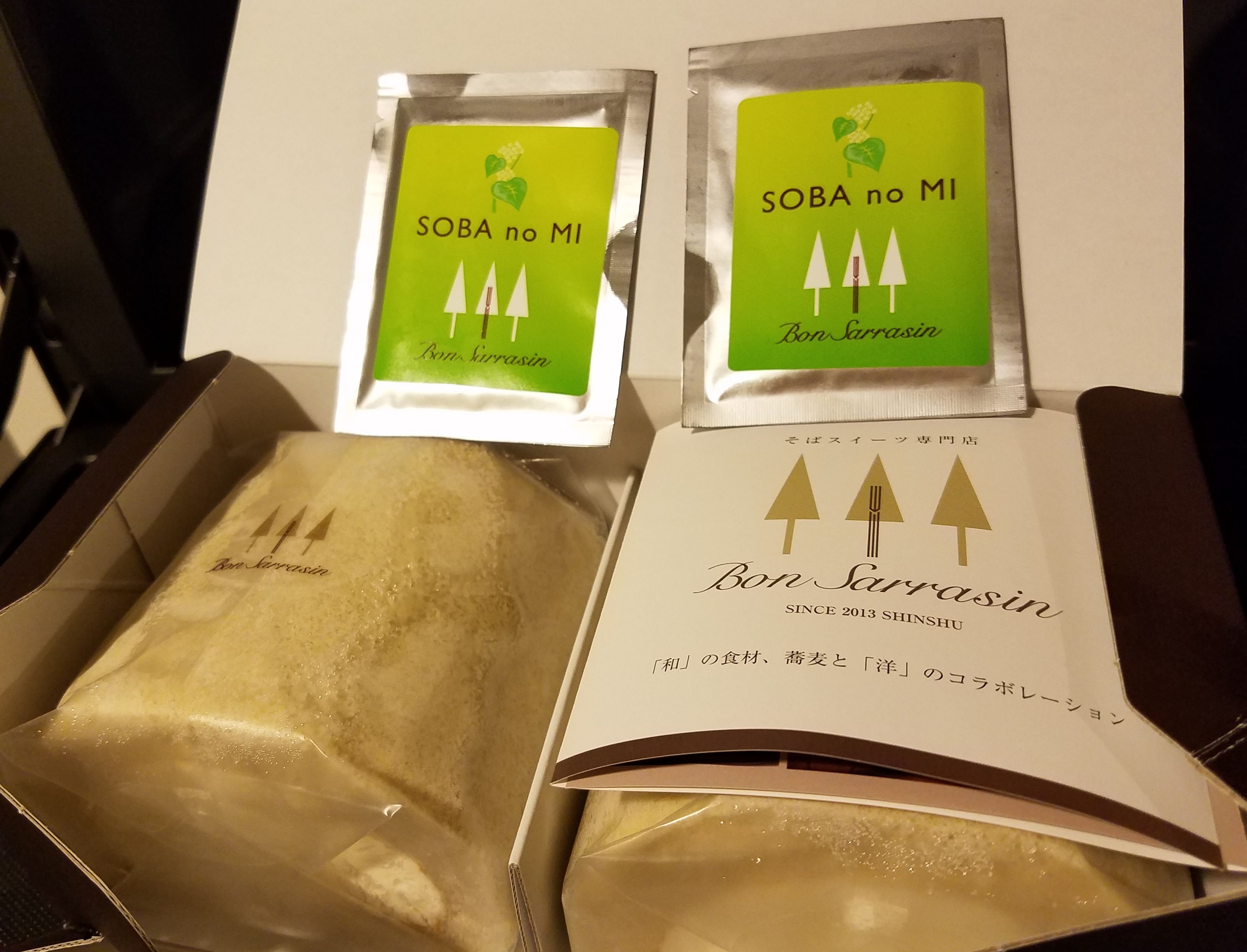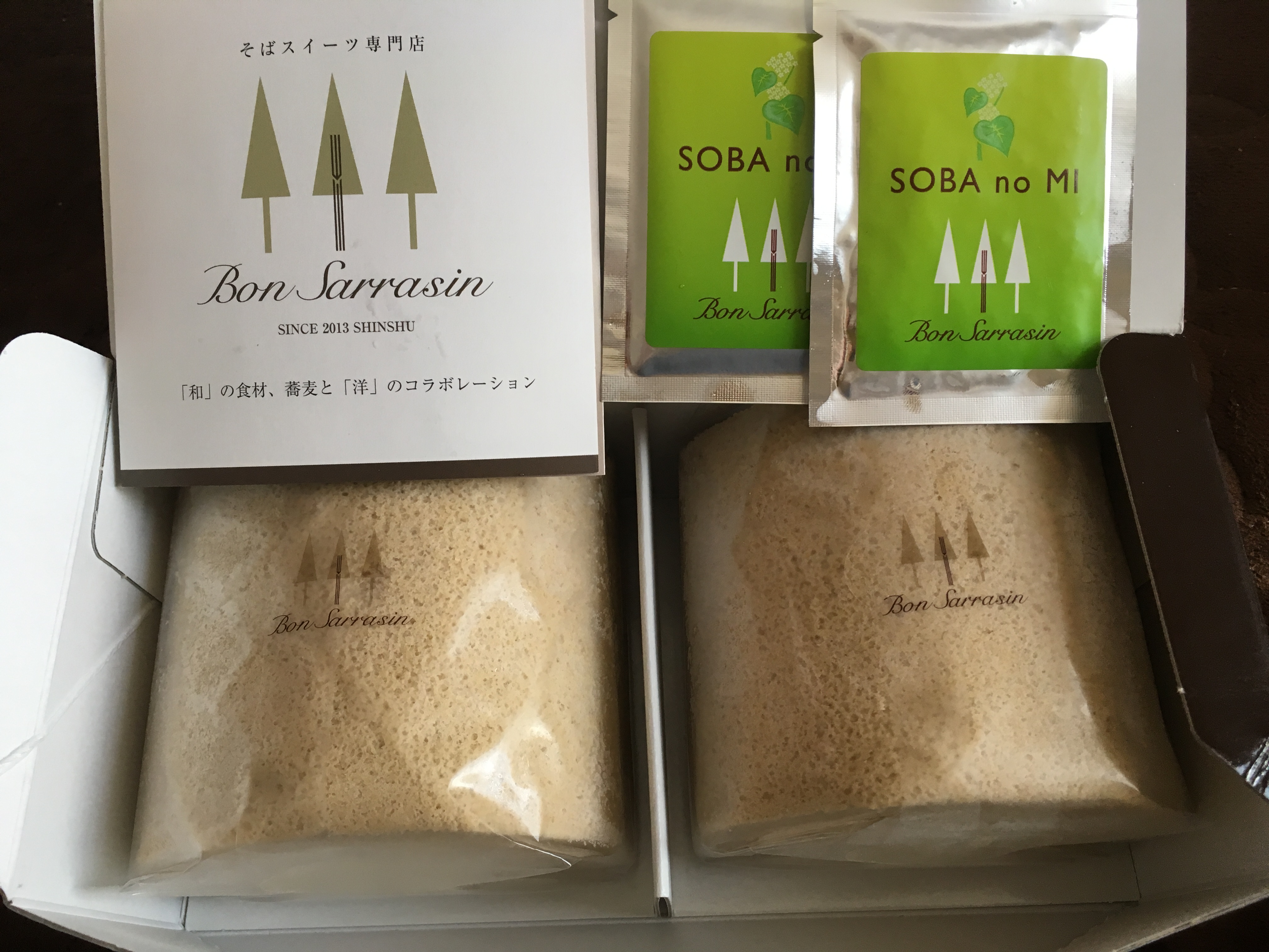 『ぼんさらざんろーる』は、小麦粉を一切使用せず、信州産の石臼挽きそば粉と濃厚で風味豊かな「米たまご」で焼き上げた、そばのロールケーキです。中のクリームにも信州浅間山麓産のそば茶をブレンド。しっとりふわふわとした食感のスポンジと濃厚かつなめらかで深みのある「そば茶クリーム」の組合せ、控えめな甘さが絶妙です。好みで付属のそばの実をふりかければ、サクサクの食感がプラスされ、そばの香ばしさもさらに広がります。