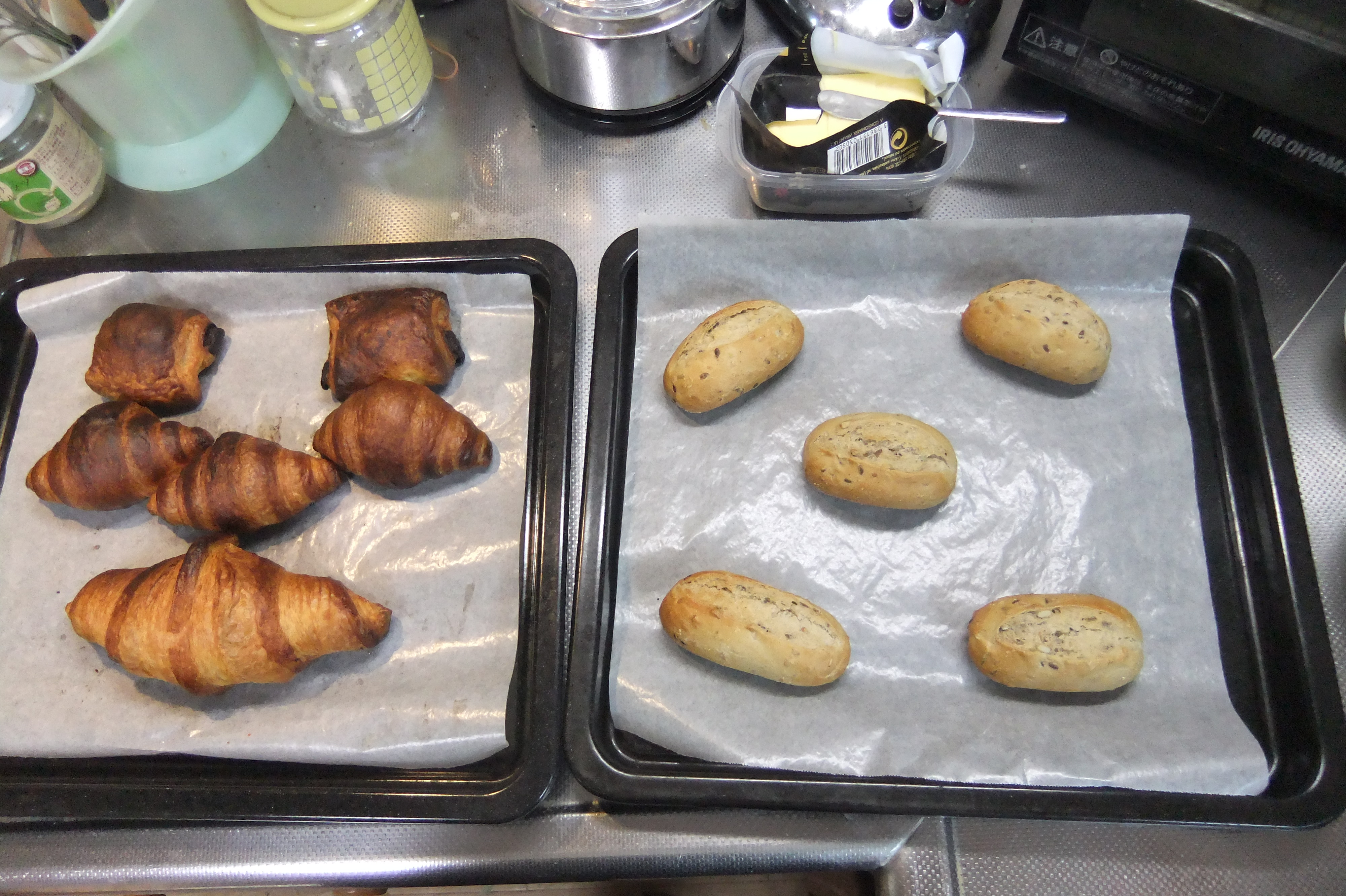 ぜんぶ生の生地で送られてくるのかと思っていたら、クロワッサン以外のほとんどのパンは、半分焼きあがった状態になっていて、解凍後オーブンまたはトースターで焼き上げるようになっていました。