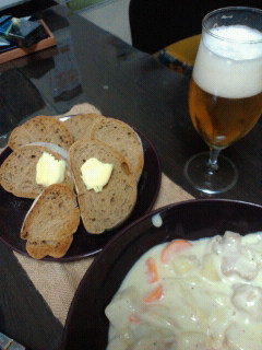 前日にパン屋で買ったバケットを食べるよりは美味しい。