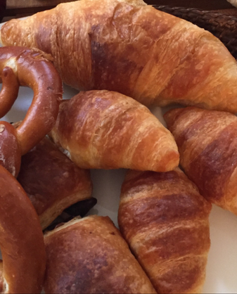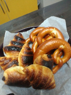 フランスのハーフバゲット、セーグル(ライ麦パン)、クロワッサン、パン オ ショコラ。スペイン産ミニシリアルロール、サンドイッチチャバタ、ドイツのプレッツェル。そして、ブレス産の濃厚な発酵バター。
