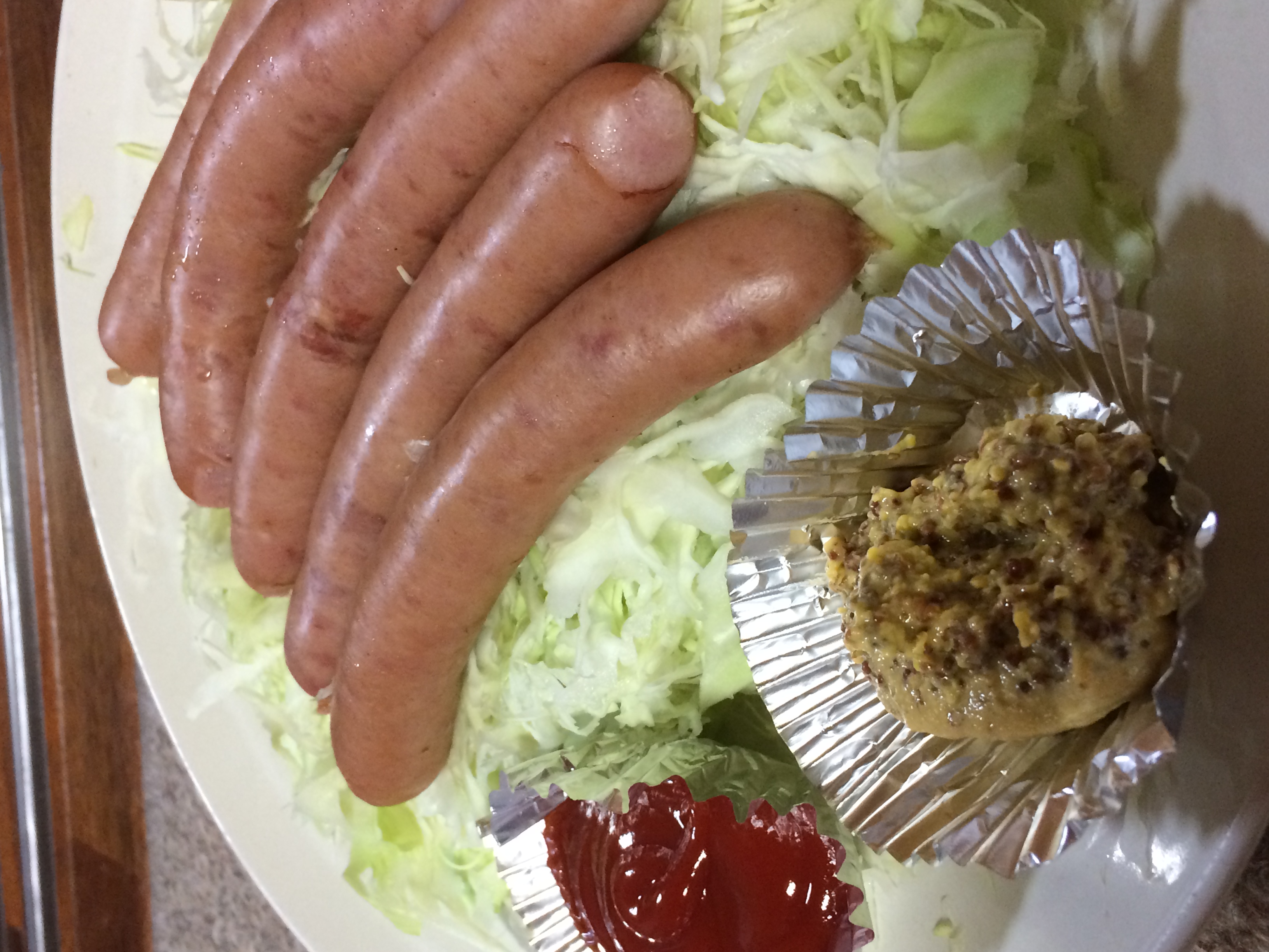 期待を込めてしっかり作り方を読み、時間をきっちり測って茹で、マスタードとケチャップを添えました。