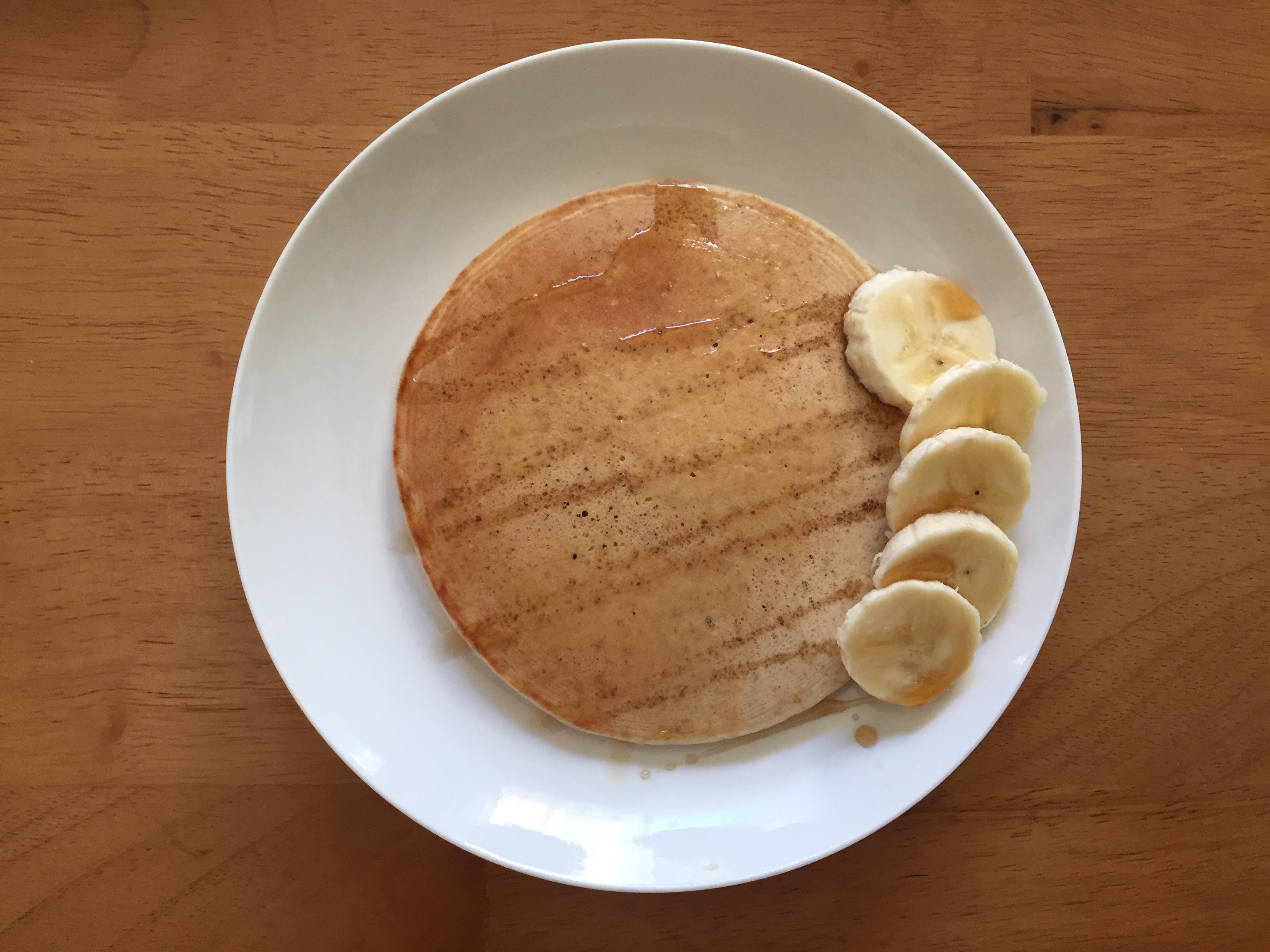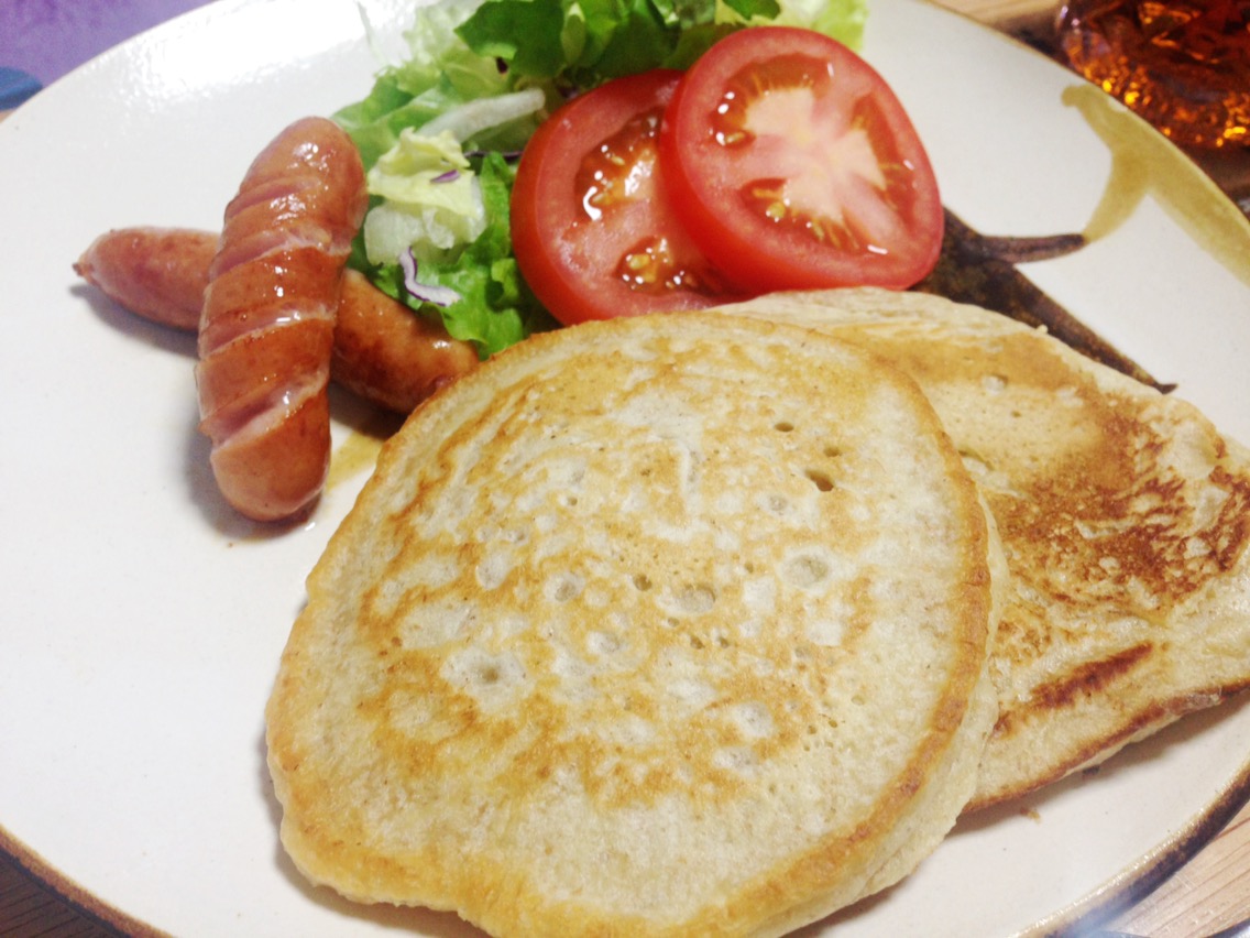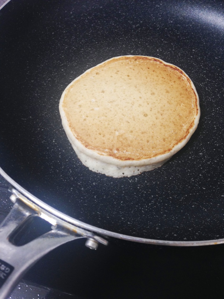 豆乳と油を少し混ぜて焼くだけなのでお手頃です。混ぜていると思いまツブツブが入ってるので、口に残らないのか不安でしたが、食べてみるとツブツブどころが、ふわふわでもちもちのパンケーキが焼きあがりました。