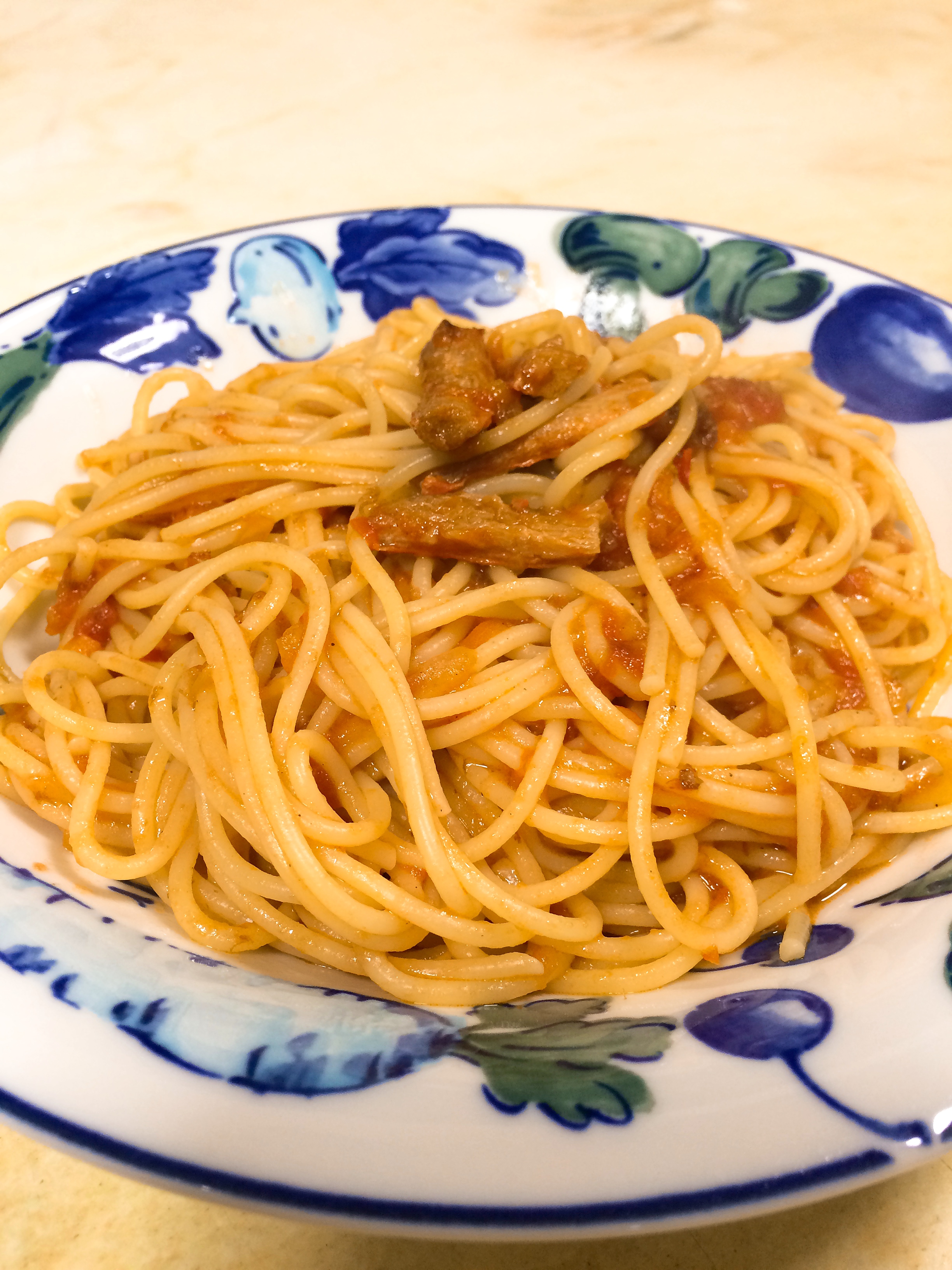 市販のレトルトのパスタソースは量が物足りなかったり、味がぼやけているように感じることも多いですが、こちらは1人前(私はパスタ100gにしました)でちょうどいい量。