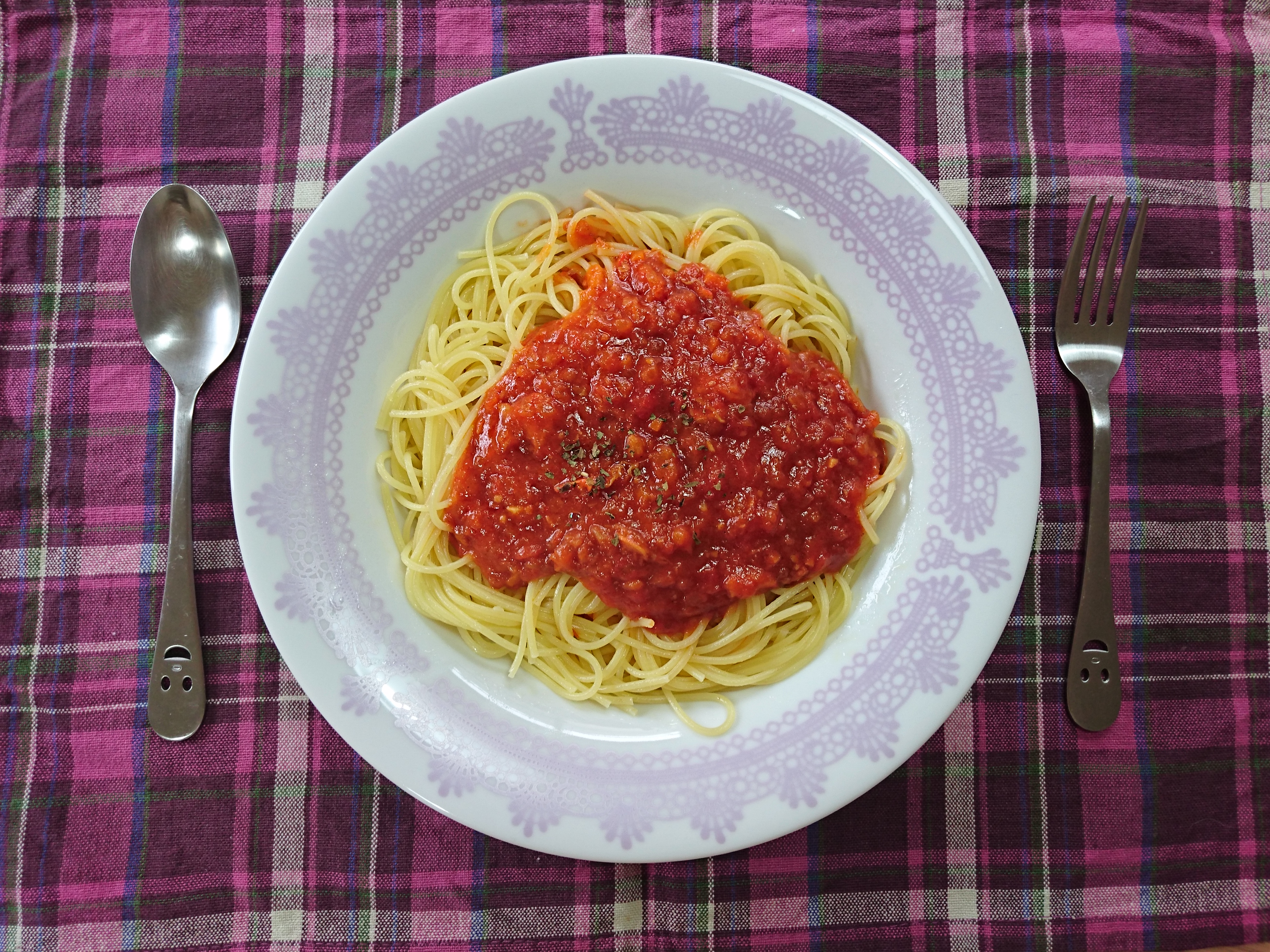 スパゲッティだけでなく、ラザニアやグラタンのようにチーズを乗せて焼いたりオムレツのソースにしてもおいしいと思います。