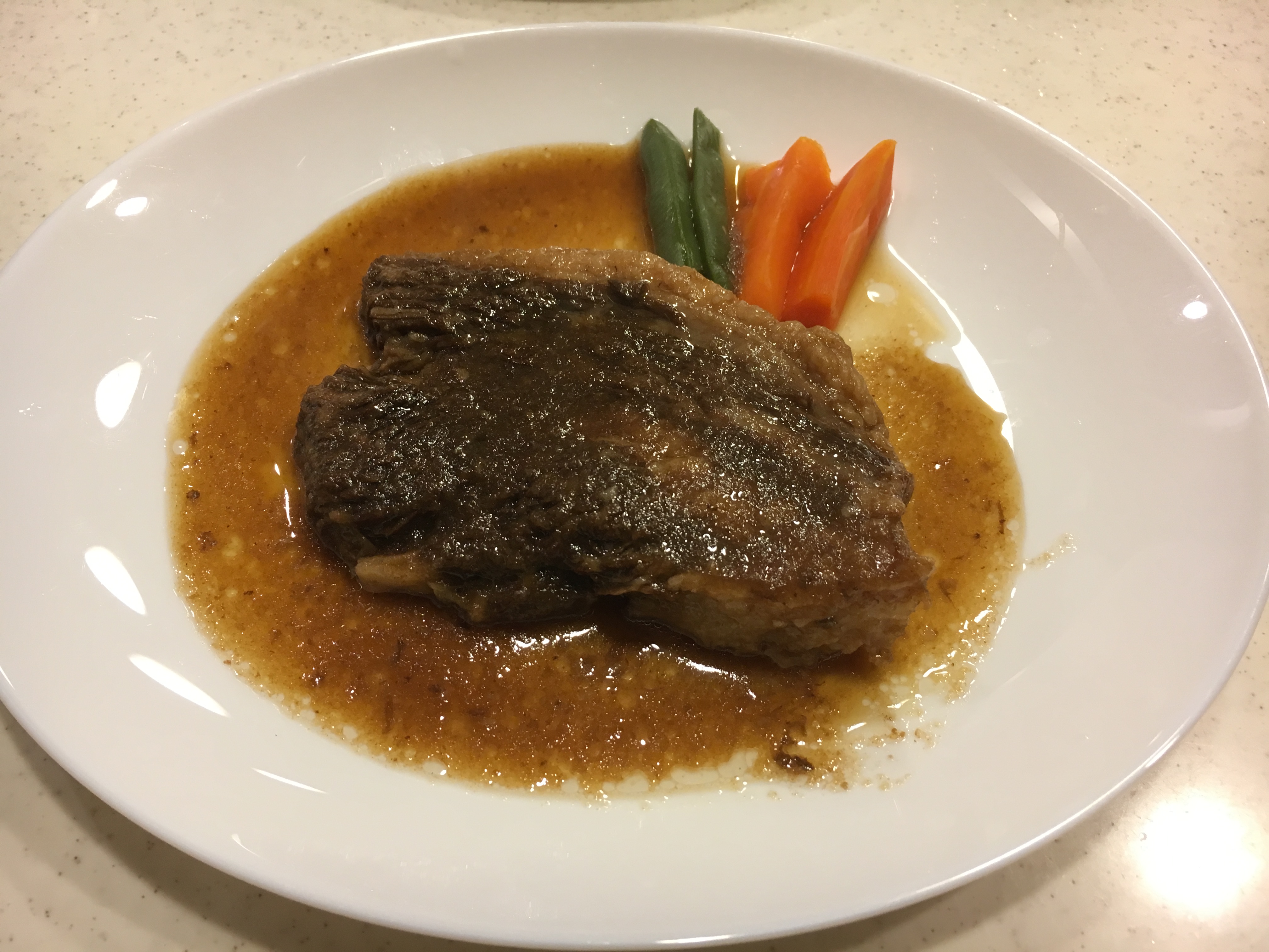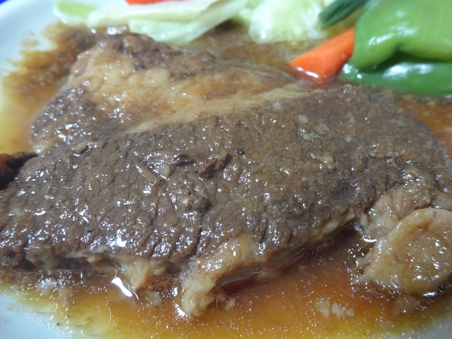 バラ肉100%なので、赤身と脂身が層になっていて、ナイフ・フォークを使わなくても箸でも簡単に裂ける柔らかさ!