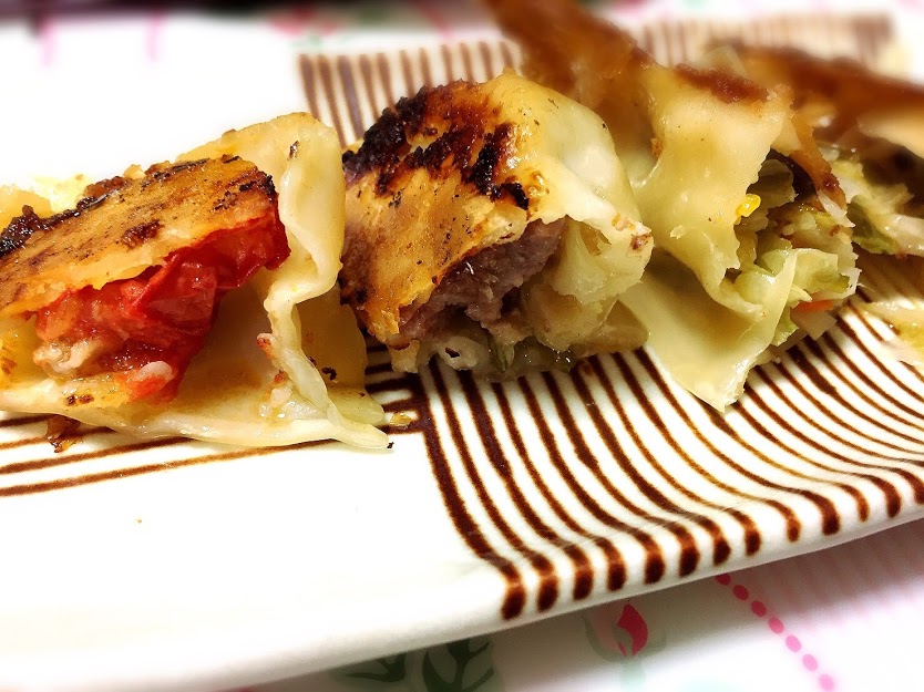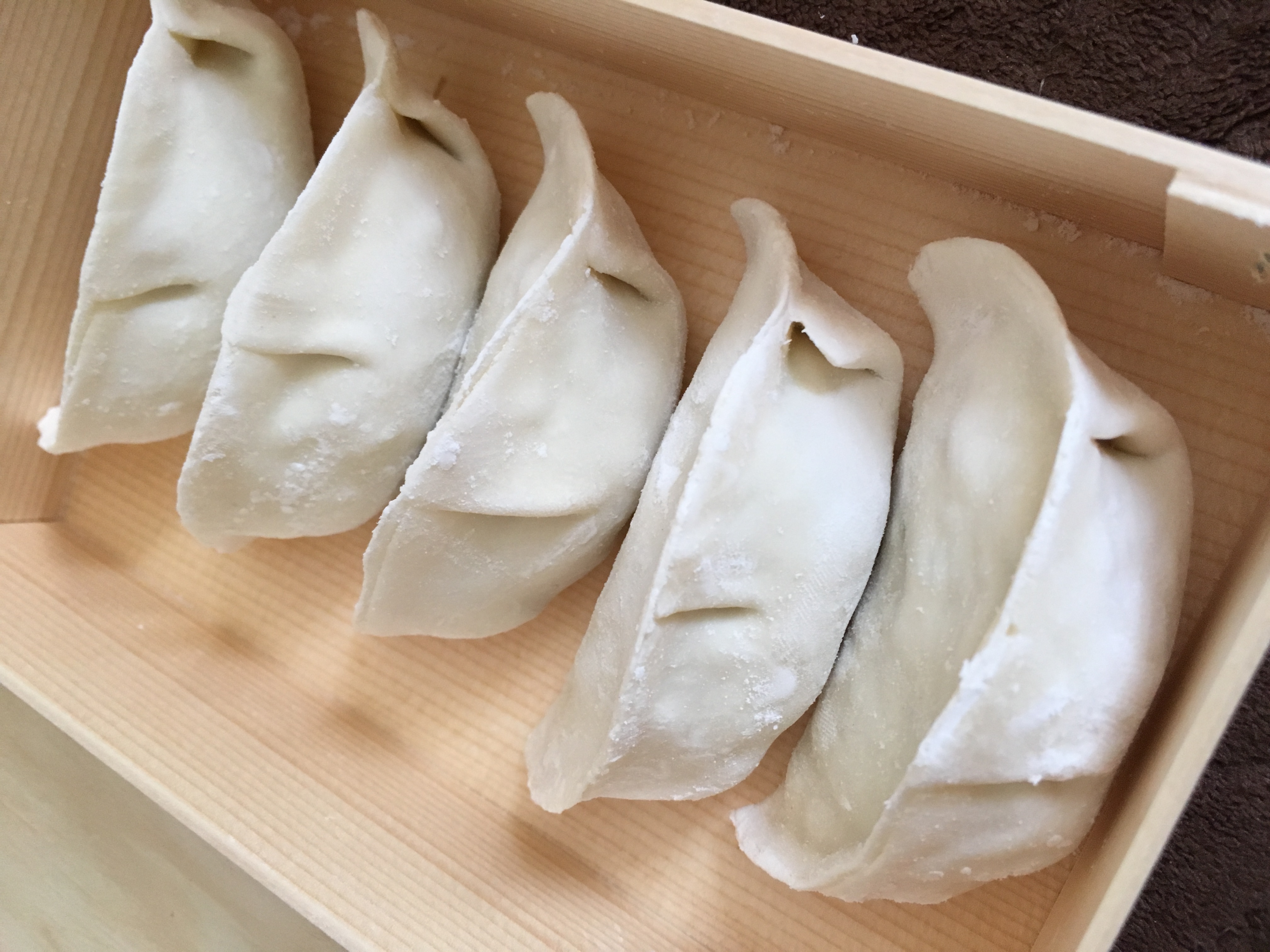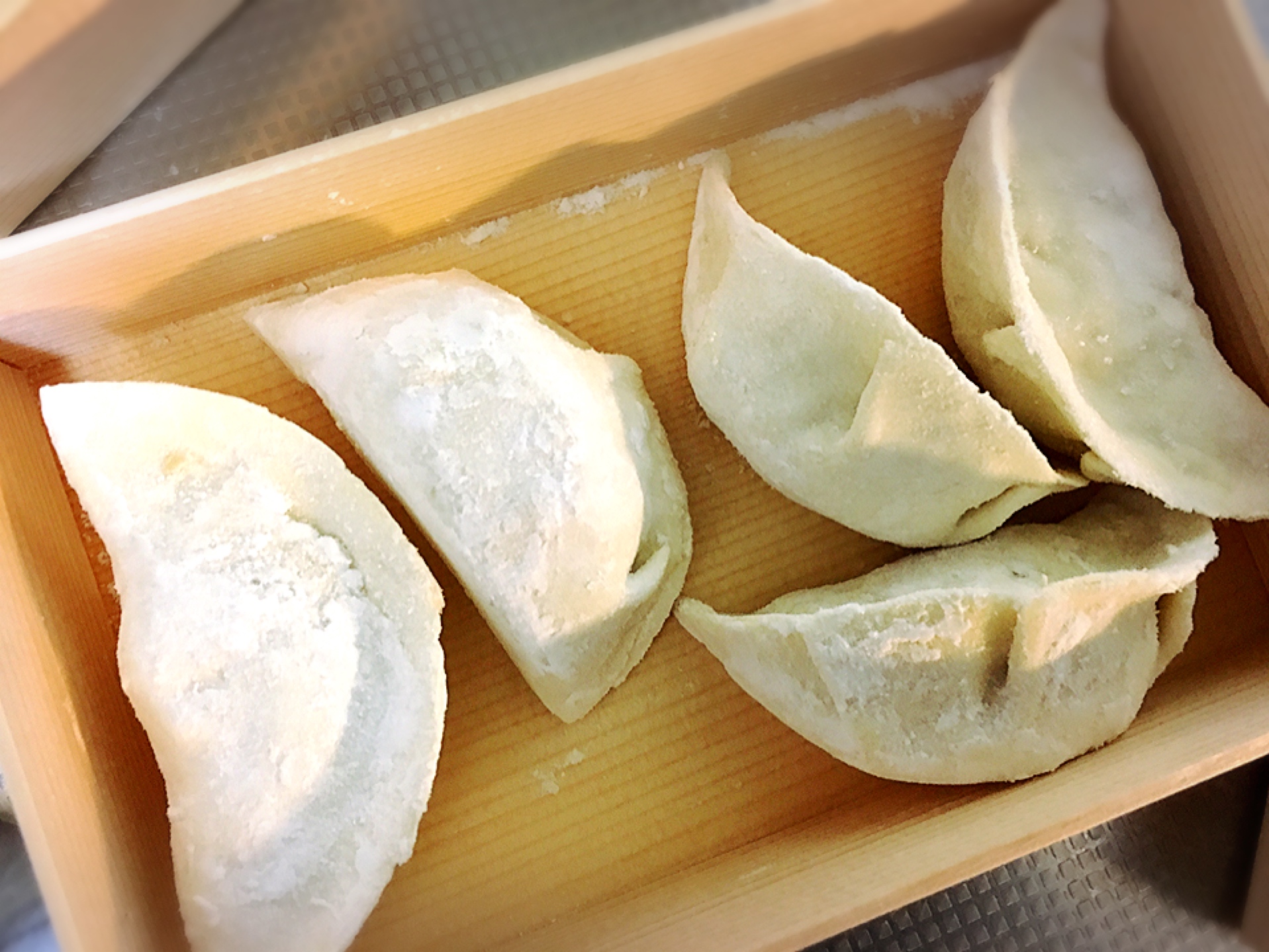 餃子の種類はたくさんあり、今回は 王道の羽根付き餃子、野菜餃子、しそ餃子、トマト餃子、生姜餃子の5種類です。