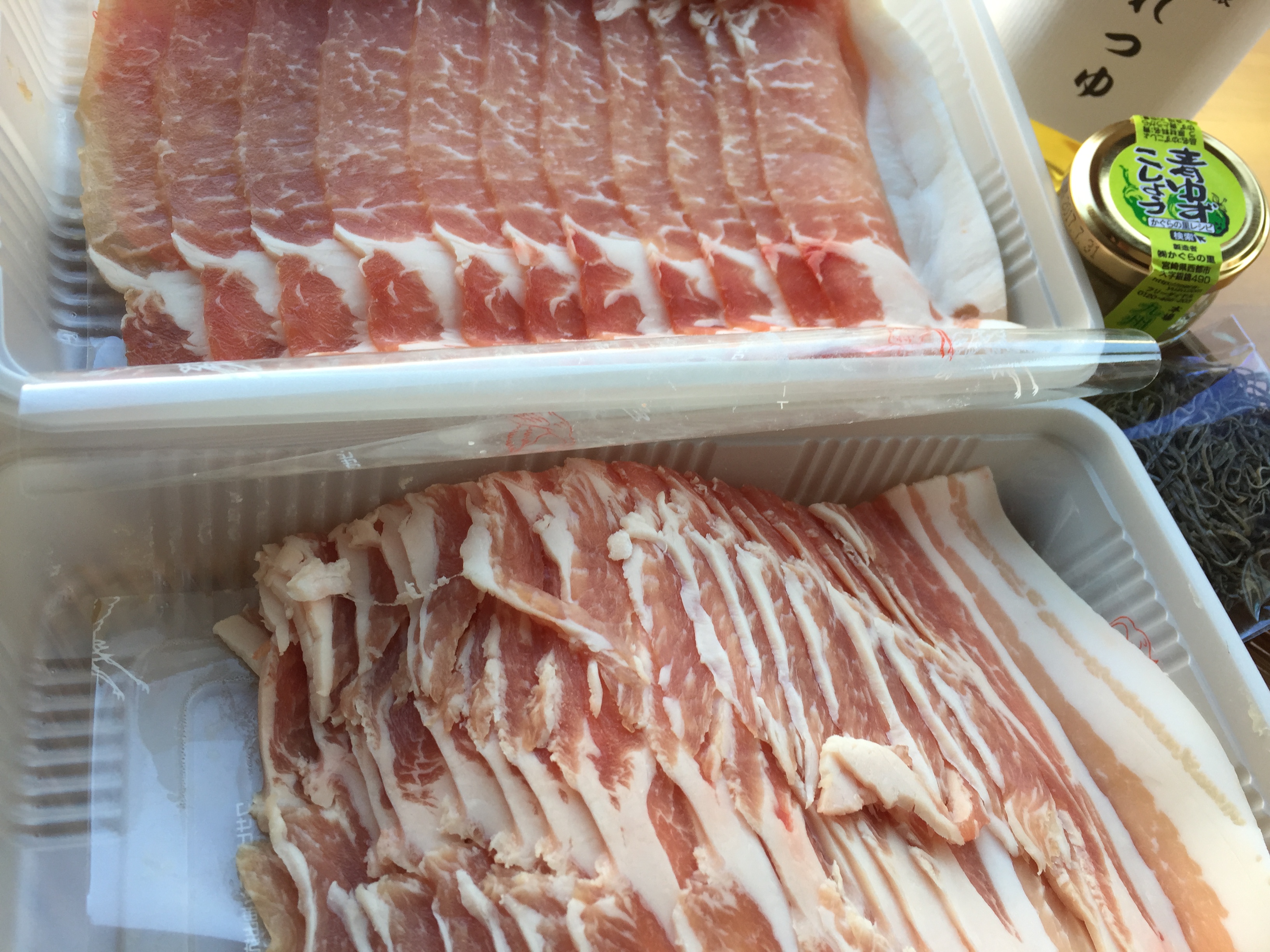 口に入れた途端どちらのお肉もうまさが口の中に広がります。薄ピンクの美しいロースはとっても甘いお肉でした。バラ肉の脂は全然しつこくなく次から次に食べられます。柔らかい肉質でスーパーのお肉のような豚肉くささがまったくないのです。