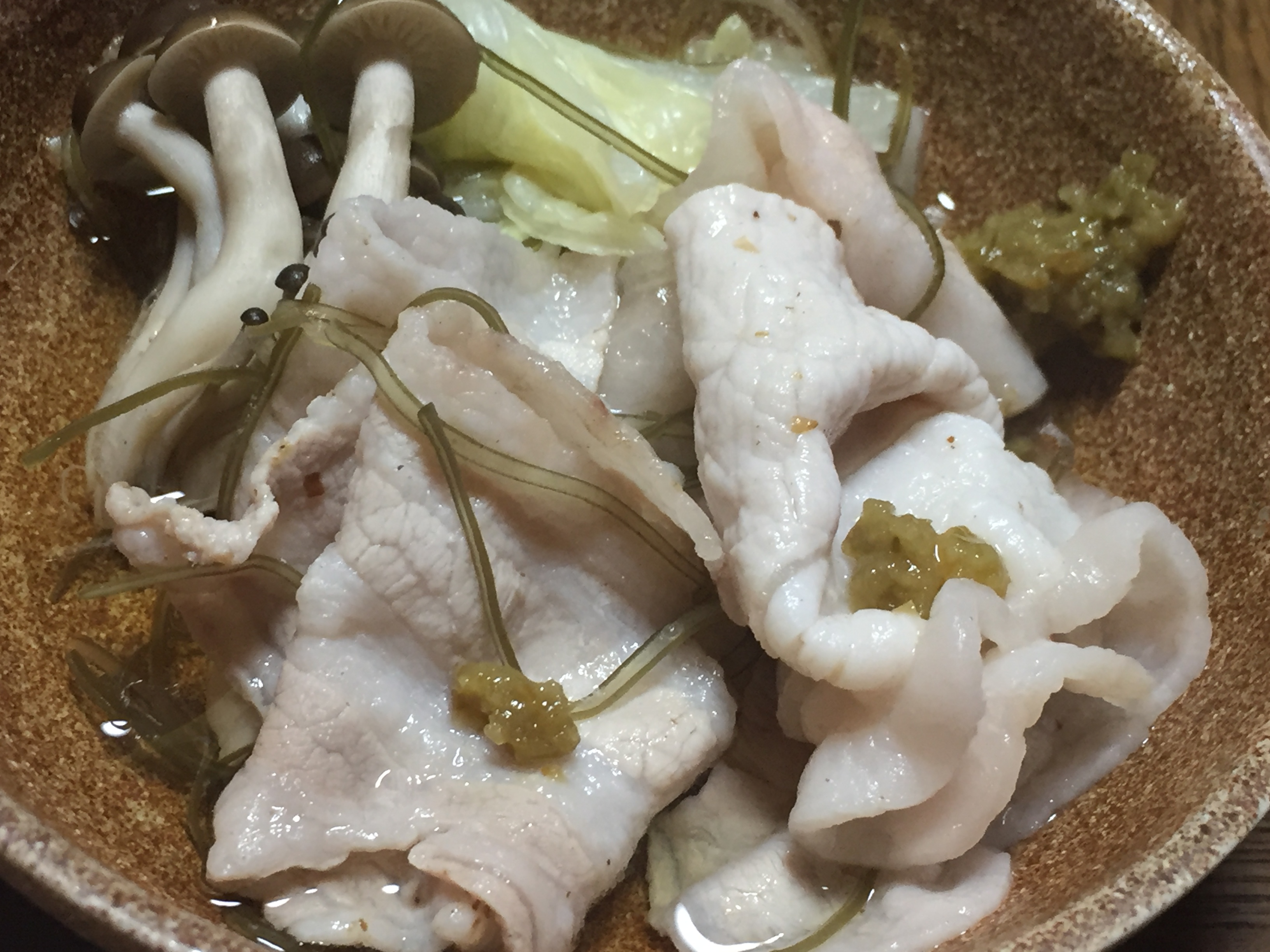 柚子胡椒はダシに浸ると溶けてしまうようなスーパーのものとは違いしっかり存在感がありお肉に風味のアクセントが加わります。