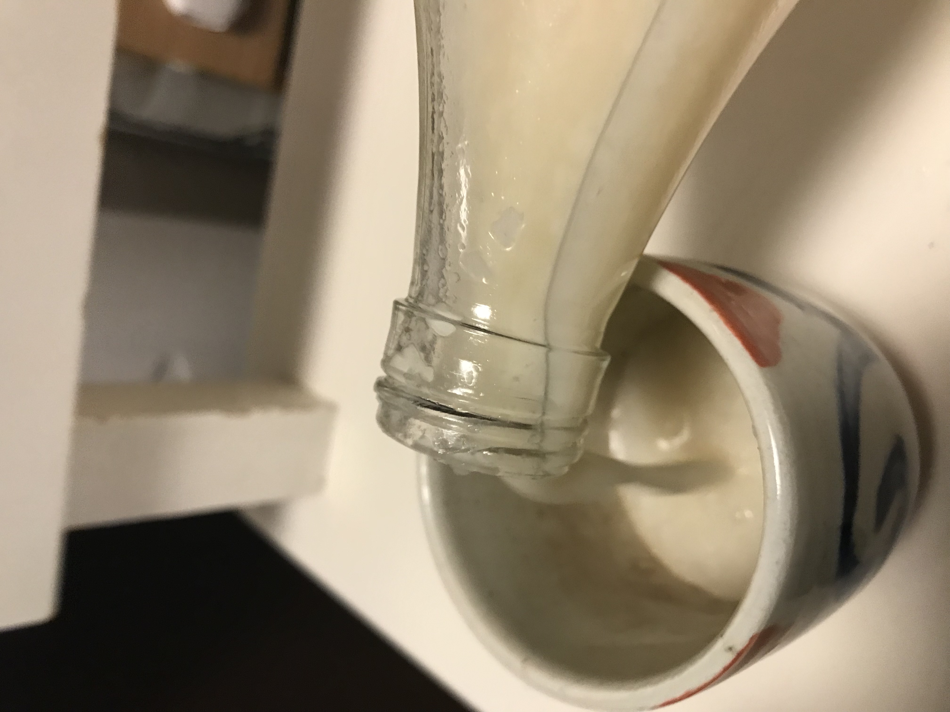 味は、口に入れた時のしつこさがなくて甘すぎず、後味はすごくすっきりでした。米麹のみしか使用していないのに、たまにしつこい甘さがある甘酒もありますが、私はそこまで甘すぎない甘酒が好きです。これは本当にちょうどいい甘さでした。祖父母と妹も合わせて家族6人、一杯ずつちょうど飲める量でした。