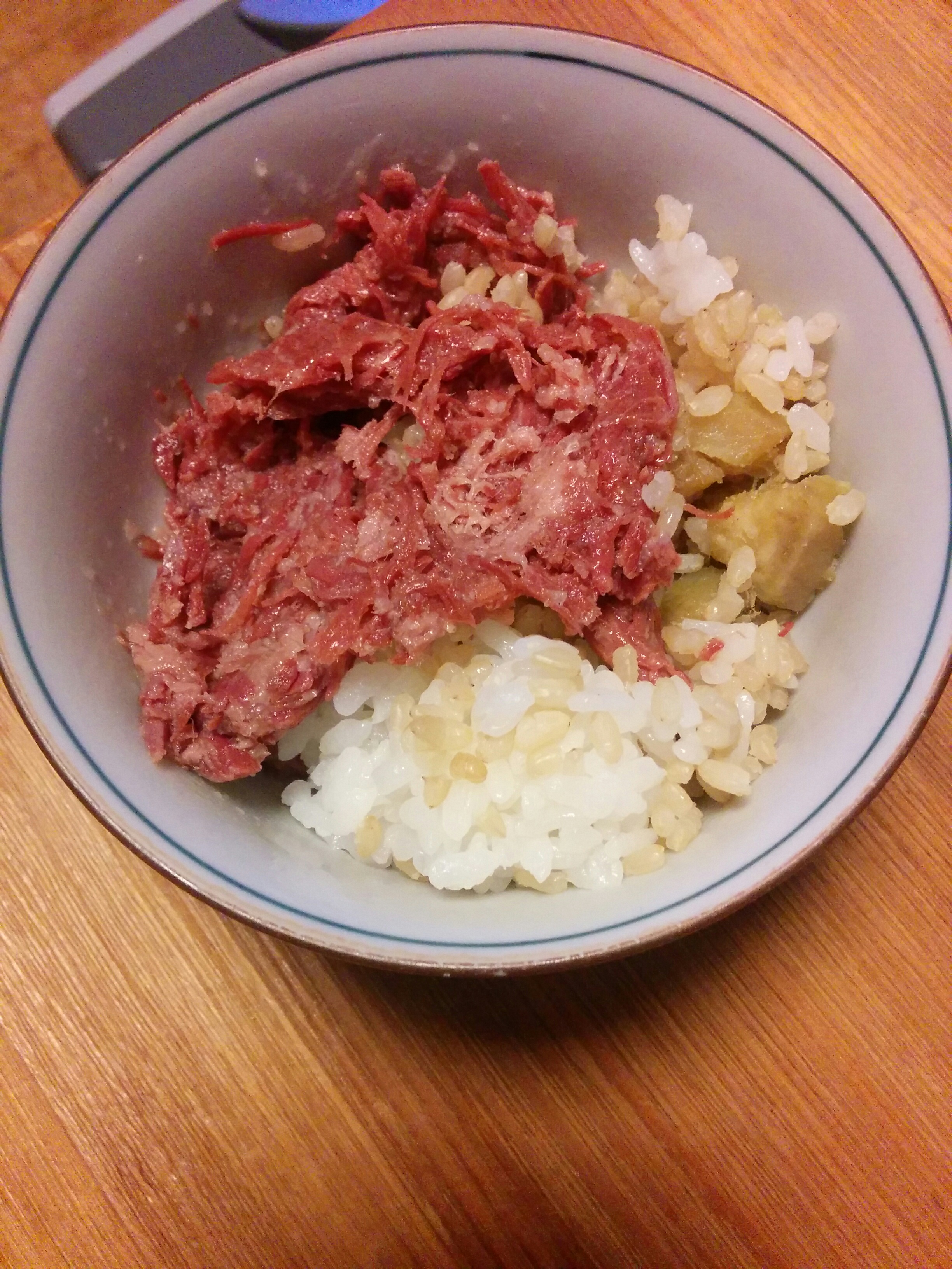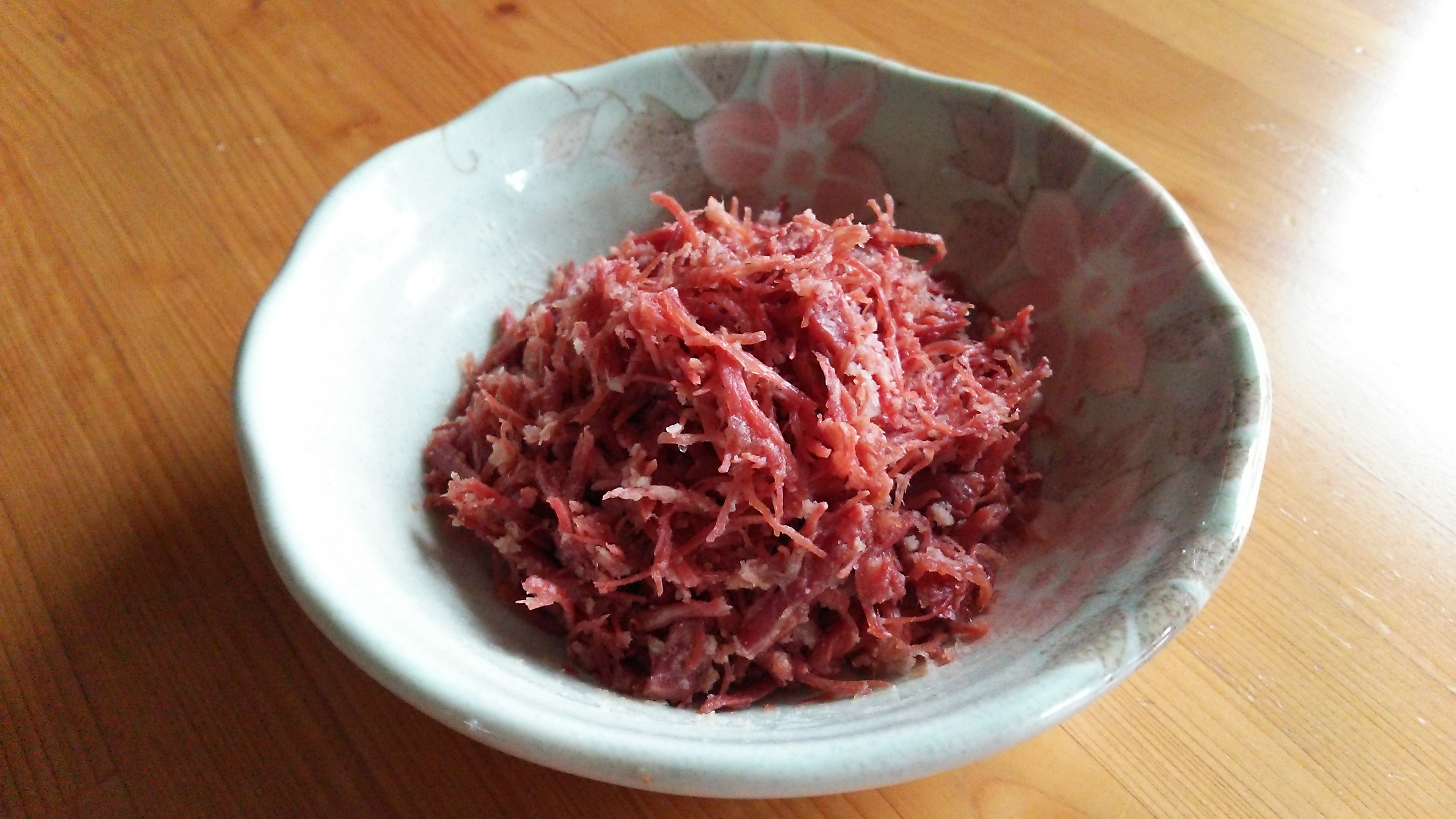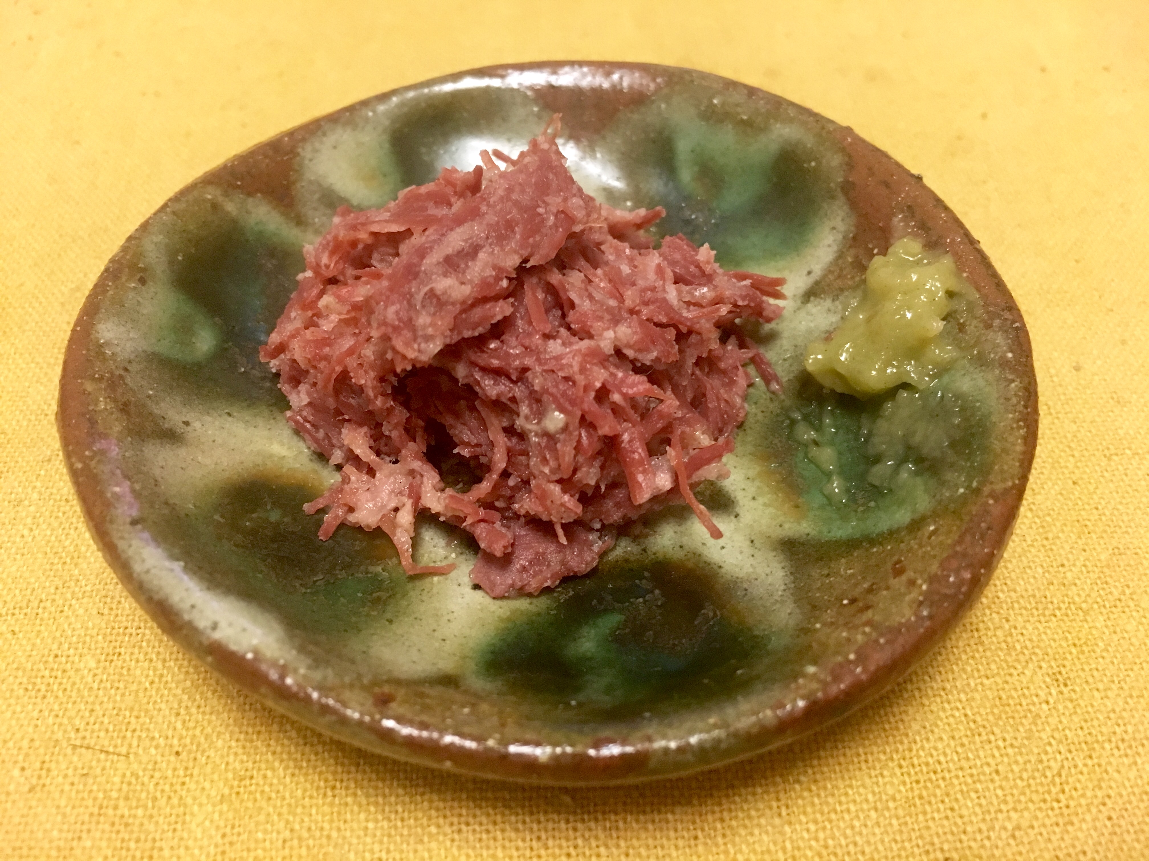 元の重量から約半分が除かれ、残りの半分だけが和牛コンビーフとしてのお肉に使用されています。