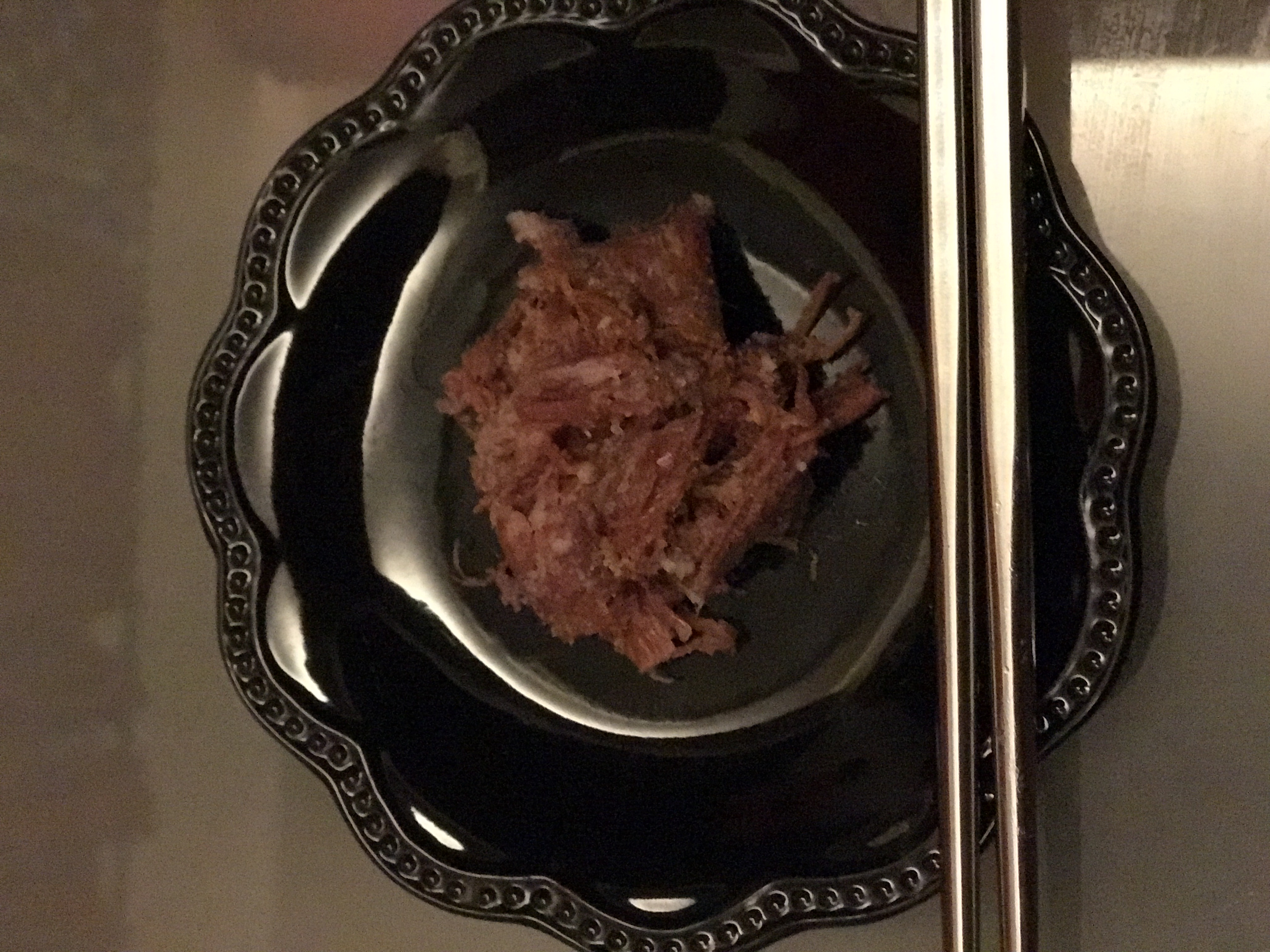 赤身肉をドイツ産岩塩でじっくりと漬け込み熟成させることで旨みを引き出します。その後、鍋で灰汁取りをしながら半日かけてじっくり、じっくり煮込みます。半日かけて煮込んでいくと、トングでつかめば崩れてしまうほど柔らかくなります。