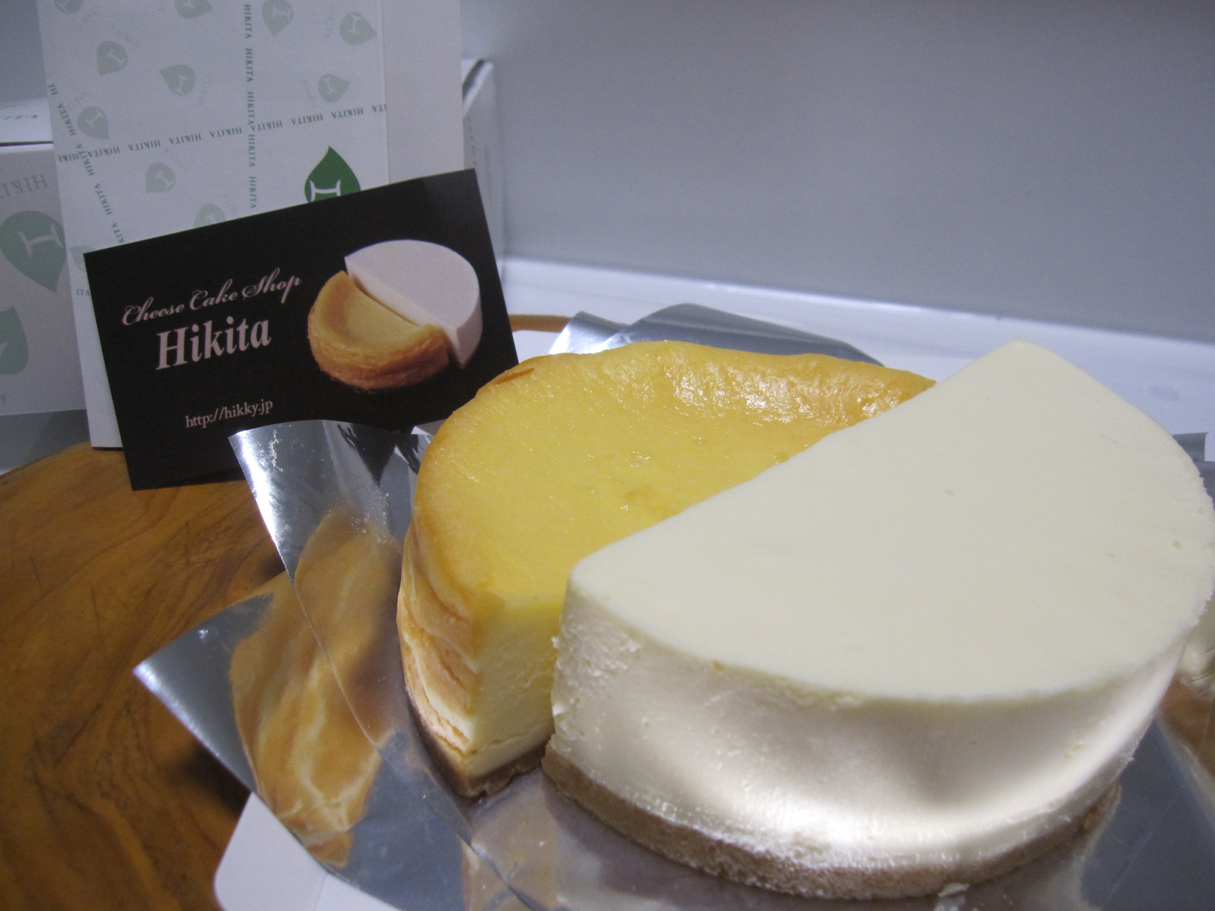 一つの箱にベイクドタイプとレアタイプの二種類が入ったヒキタ一番人気の商品。「こだわり卵のベイクドチーズケーキ」は広島県・石本農場の無農薬飼料を食べて育った鶏の栄養満点な卵を使用。ふんわりやさしい卵の風味とクリームチーズの濃厚でしっとりした口当たりが楽しめます。「究極のレアチーズケーキⅡ」は酸味が控えめでまったりと濃厚なクリームチーズ、北海道産の牛乳、コクのある生クリームを使用。卵を加えているのでフワッとととろける食感が特徴です。定番の味が一度に楽しめる贅沢な一品です。