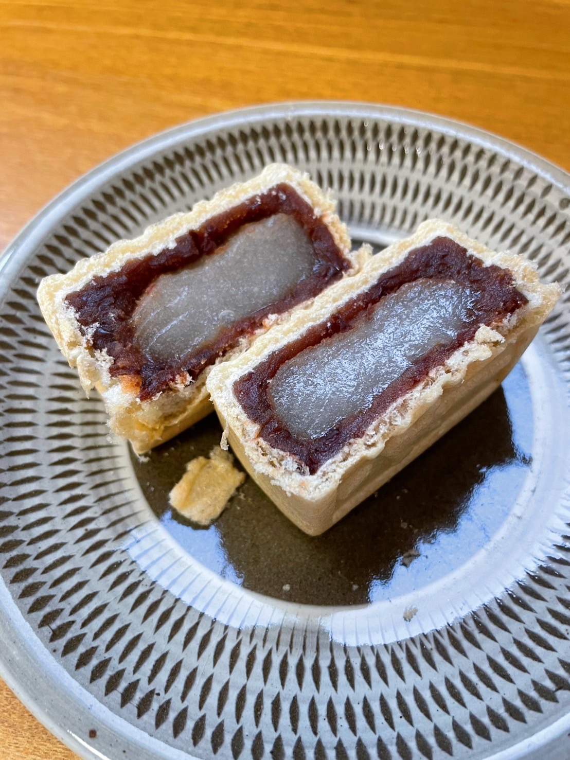 こだわりの小豆を用いて作られた餡は、上品な甘さでたっぷり入っています。サクッとした芳ばしい皮とたっぷりの餡、柔らかいお餅とのバランスがよく大変美味しいです。ひとつひとつが大きめで食べ応えがあるので満足度が高く、他にはない最中だと思いました。