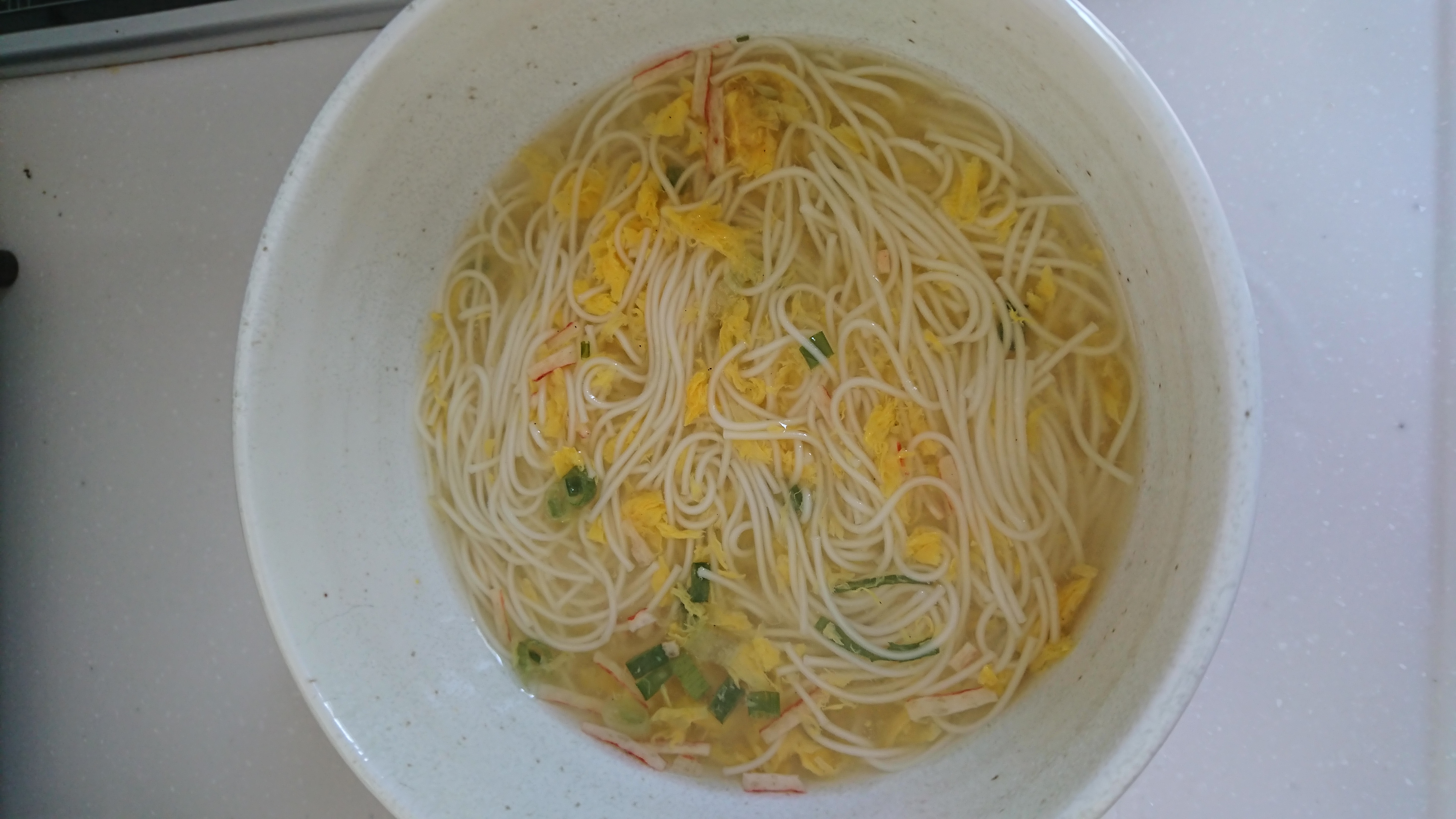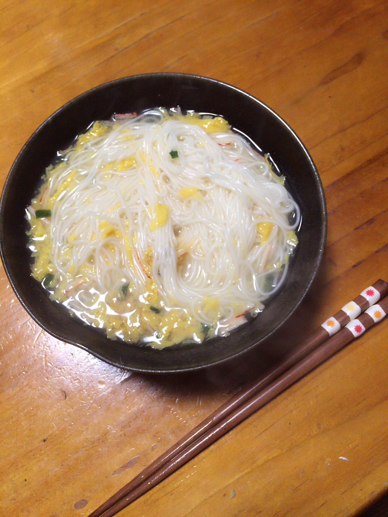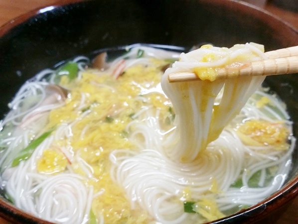 すごく簡単!!なのに麺はつるつる、市販の素麺よりほんの少しだけ太めなので、それがまたかき玉と絡んでおいしく頂けました。