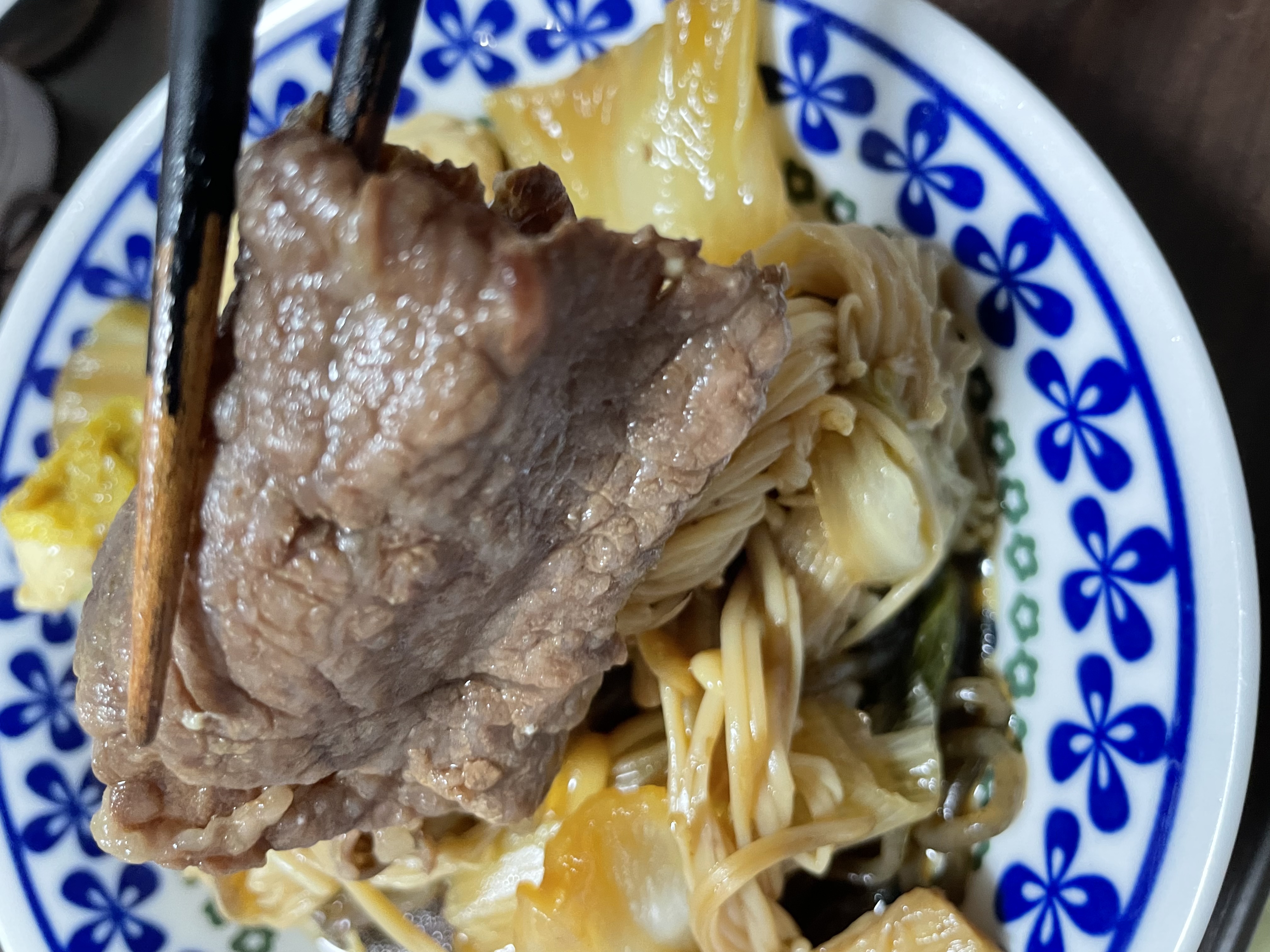 あまりの美味しさに他の野菜等の具材に箸がのびず、お肉ばかりを食べてしまいました。