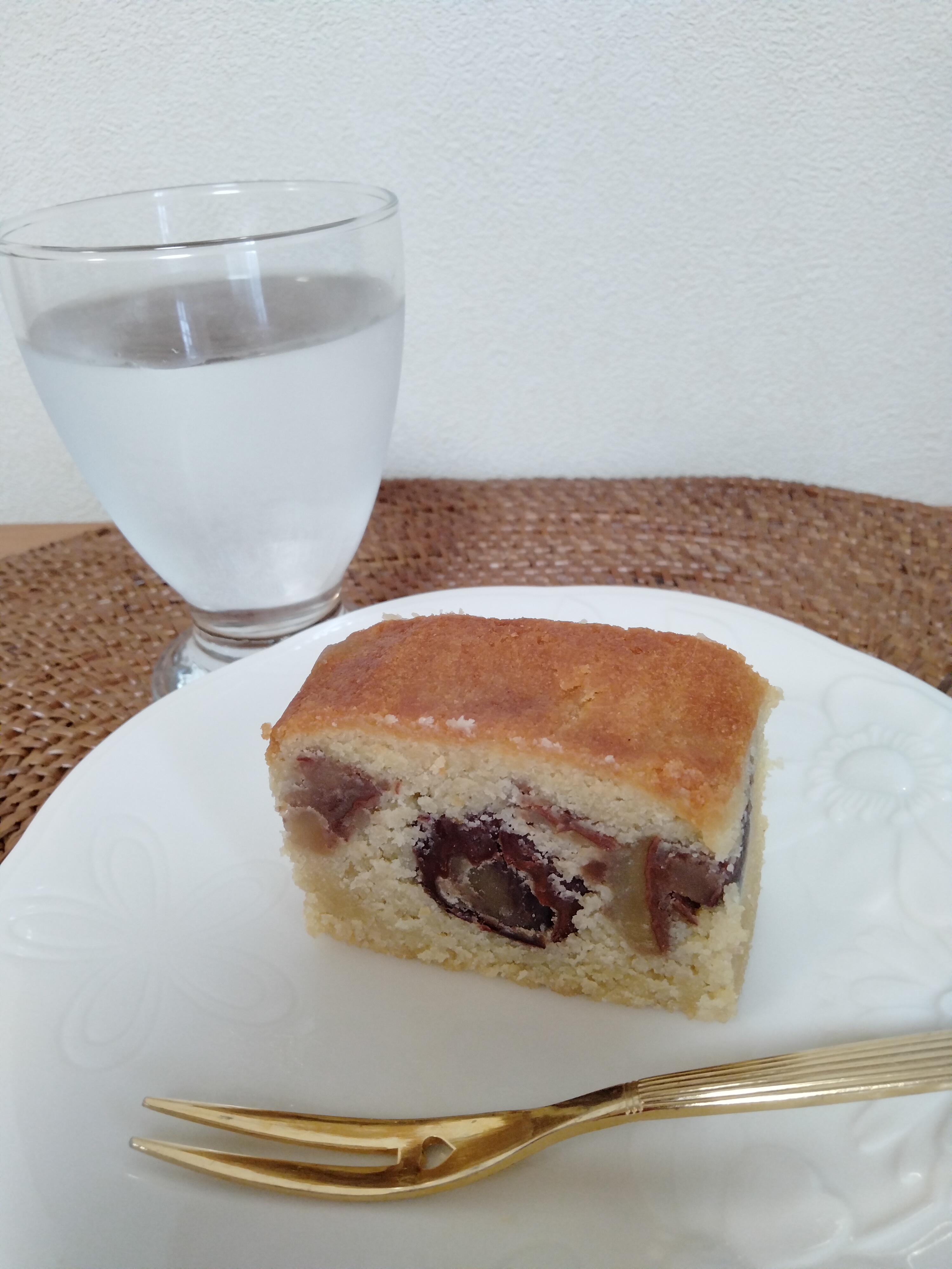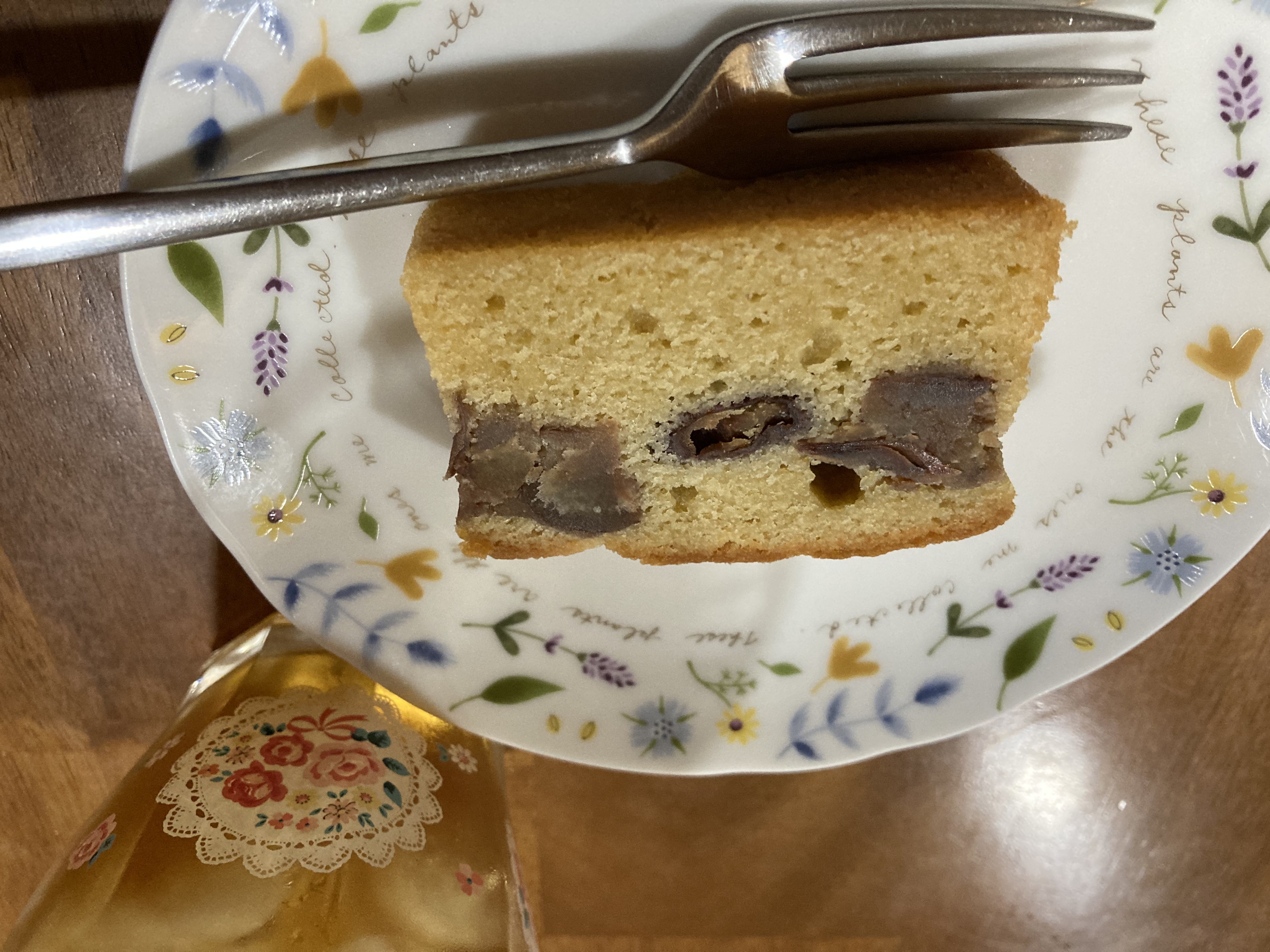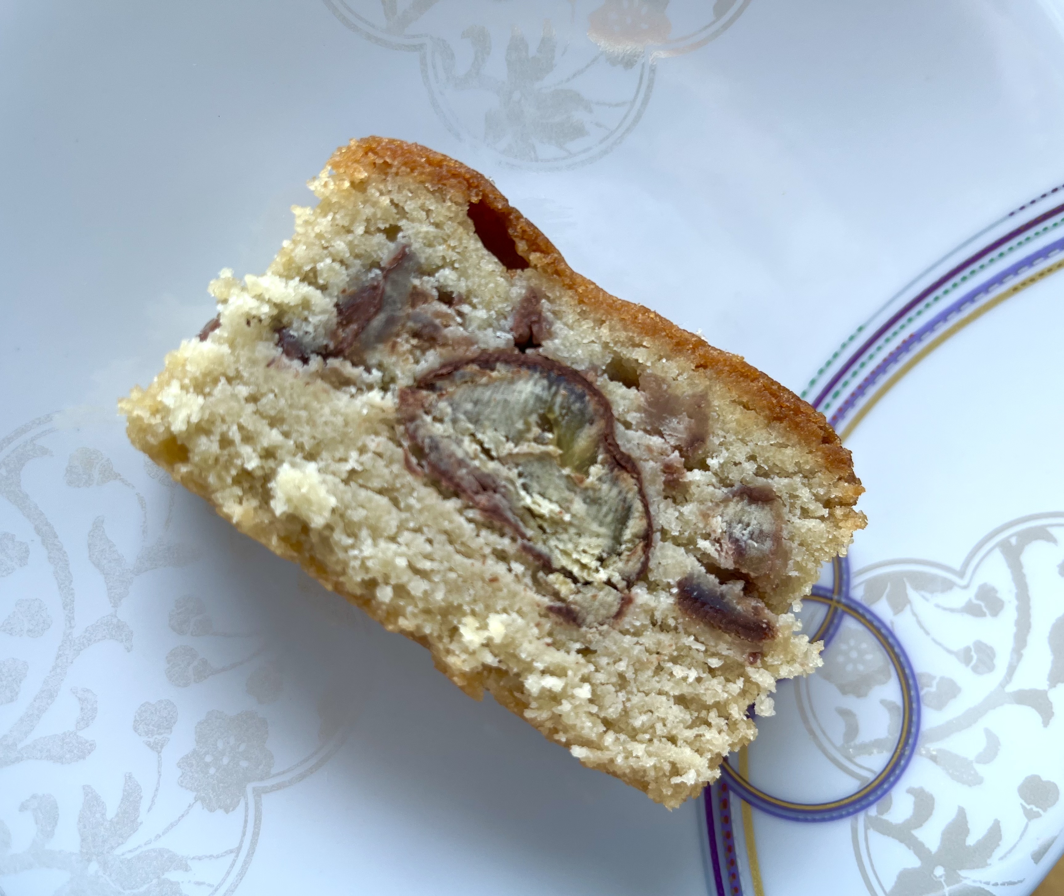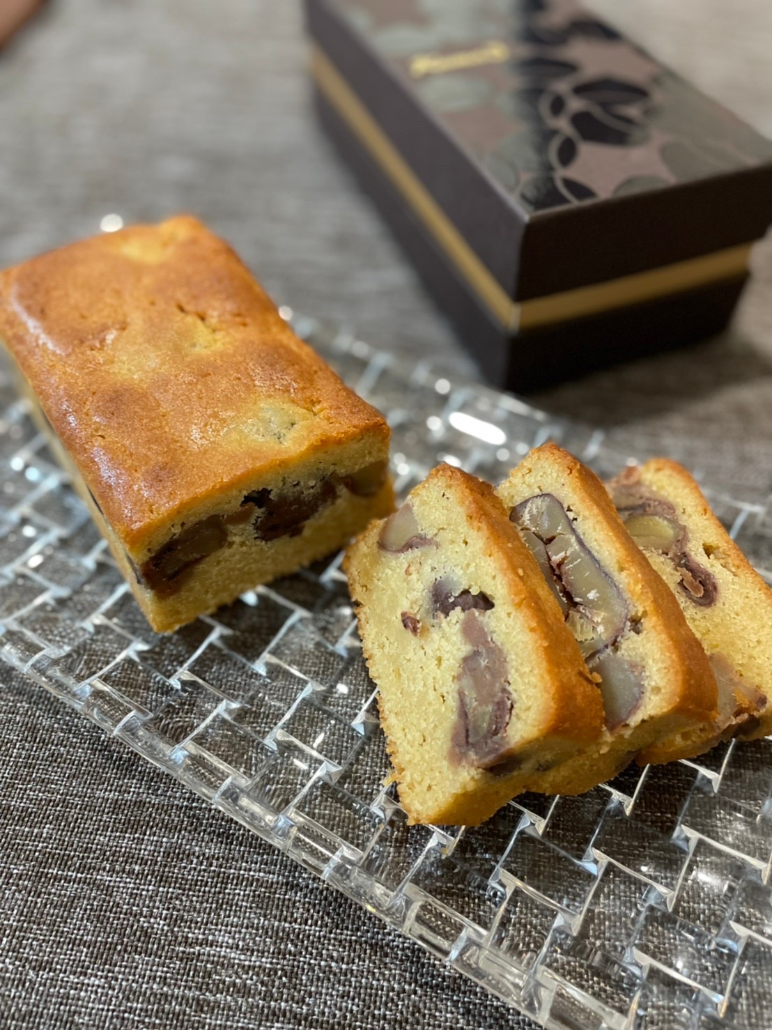 パウンドケーキと思い込んで食べたので、独特な食感に驚きました。非常にしっとりしているのに、少しざらつきのある舌触り。おそらくたっぷり使用されたアーモンドプードルやマロンペーストで作り出された食感なのだと思います、おかげで普通のパウンドケーキにはない、後に残る香り高さと満足感。