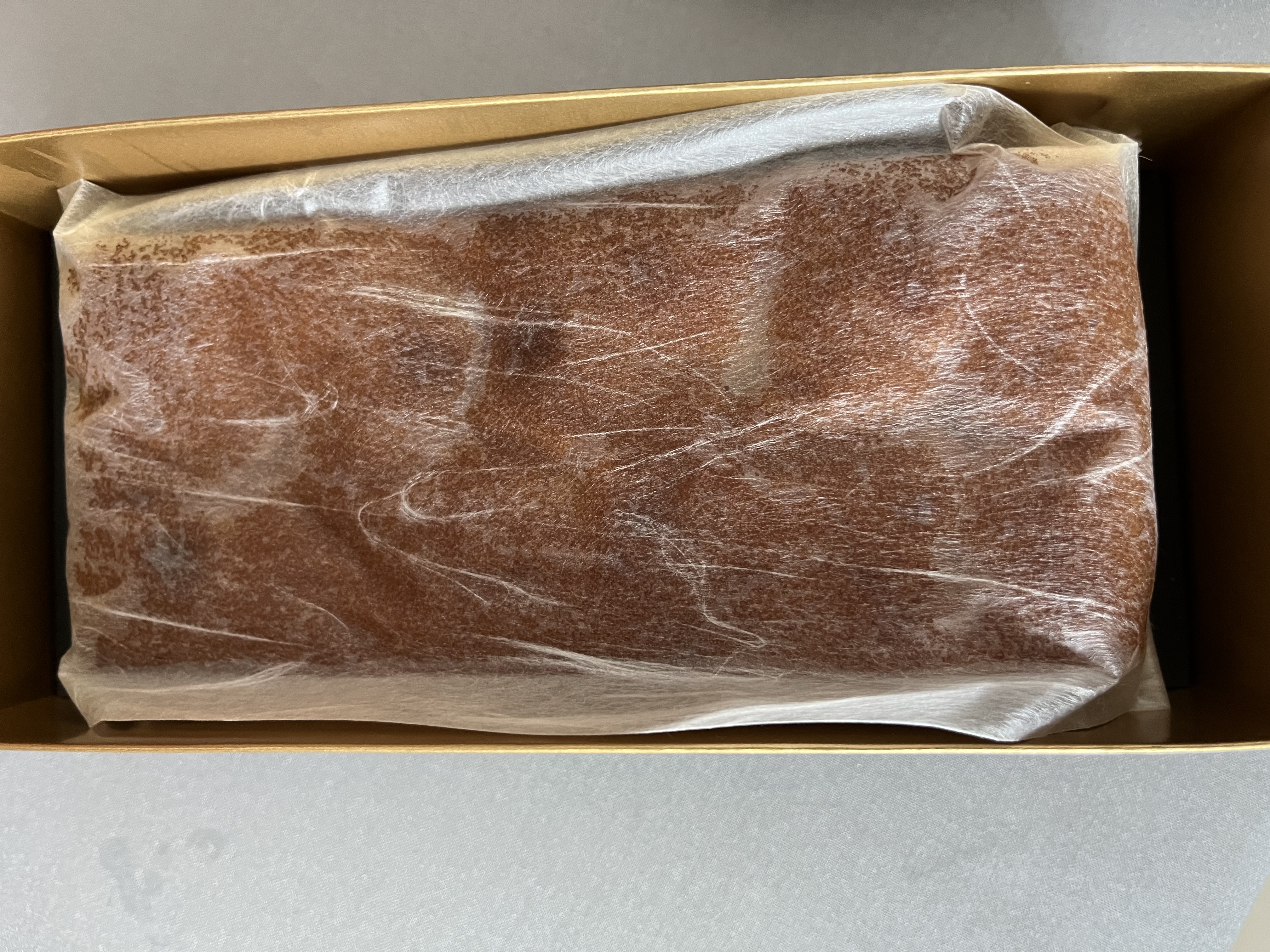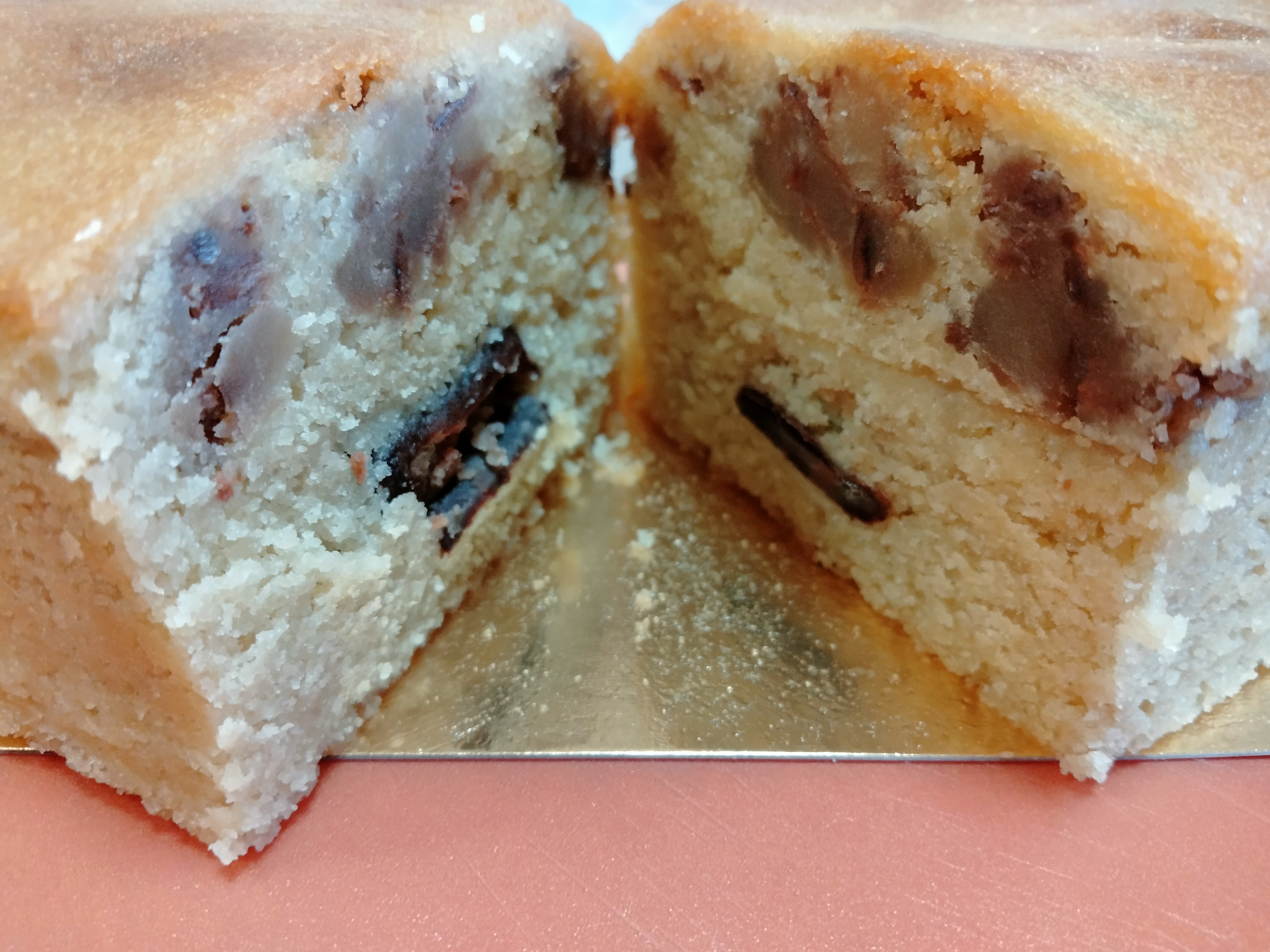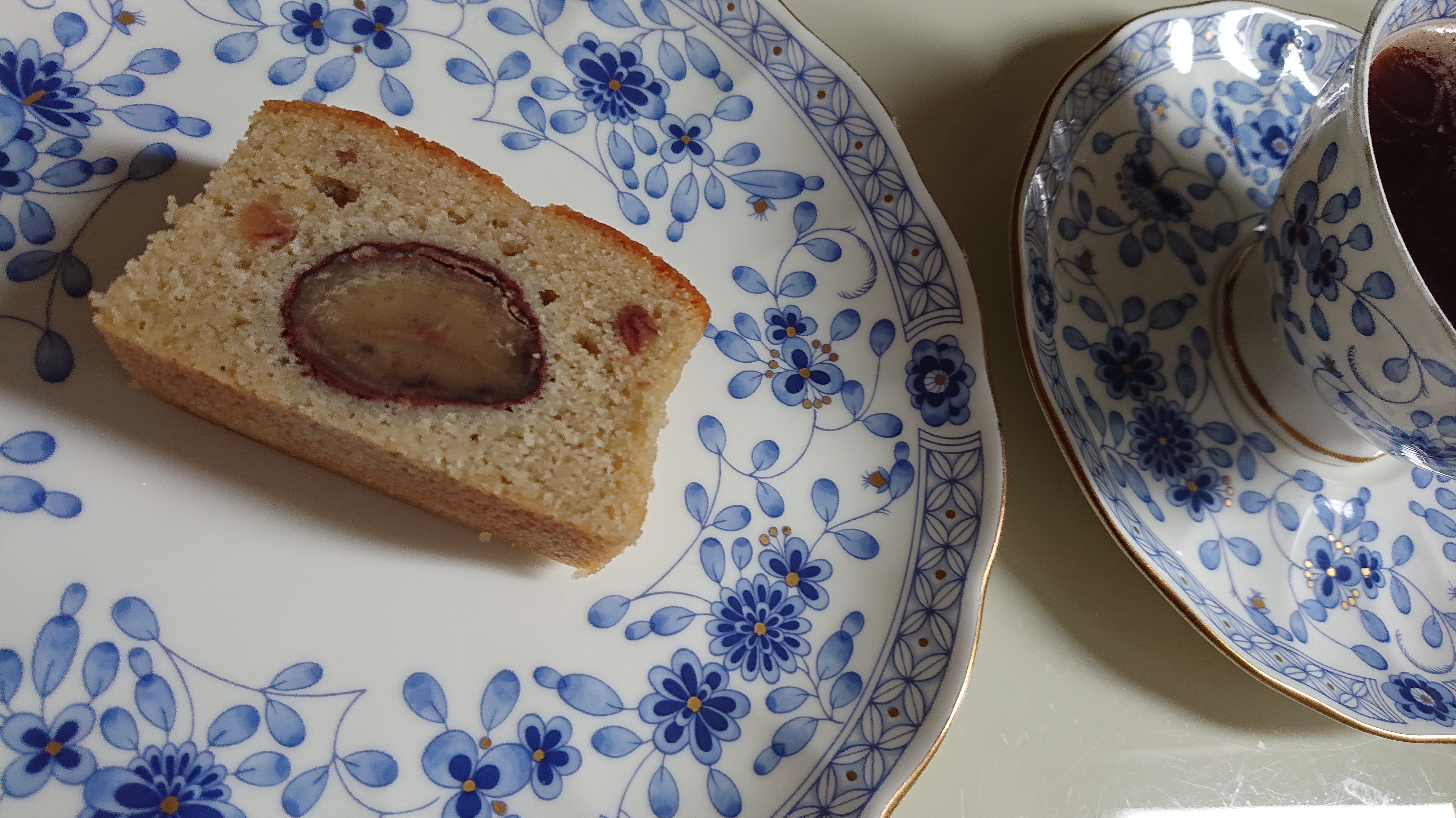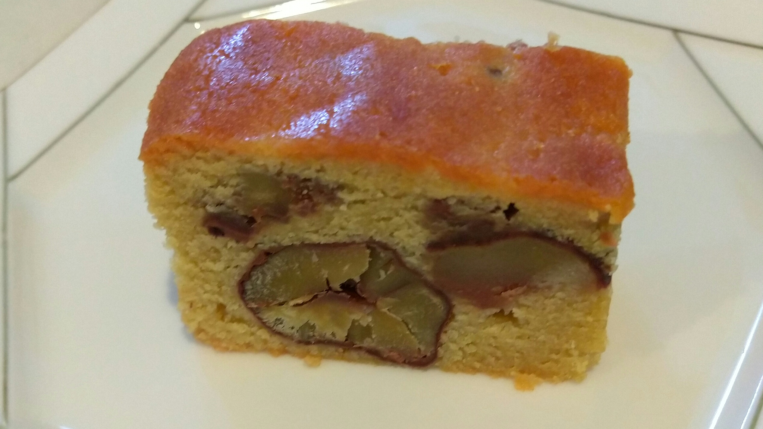 パウンドケーキと思い込んで食べたので、独特な食感に驚きました。非常にしっとりしているのに、少しざらつきのある舌触り。おそらくたっぷり使用されたアーモンドプードルやマロンペーストで作り出された食感なのだと思います、おかげで普通のパウンドケーキにはない、後に残る香り高さと満足感。