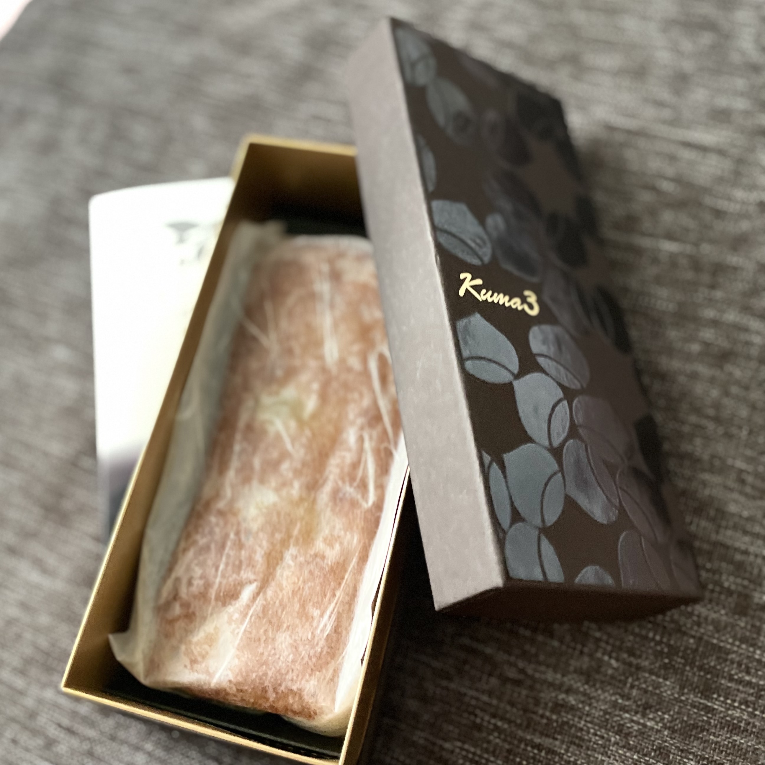 銀座の日本料理店「Kuma3(クマサン)」がプロデュースする第2弾「銀座わぐりへしれけーき」。大粒で皮の薄い丹波栗をはじめ、厳選された国産和栗のみを贅沢に使用しています。また、高品質な“フランス産発酵バター”、SDGsに積極的に取り組んだ地域循環型の生産法で育てた、高品質な平飼い卵の「フルーツエッグ」など、料理長こだわりの素材と特別な製法で1つ1つ丁寧に焼き上げています。1日20本限定のケーキです。お茶請けはもちろん、ワインとのマリアージュもおすすめ。贈り物にも最適な逸品であり、お歳暮やお年賀の熨斗も対応しています。