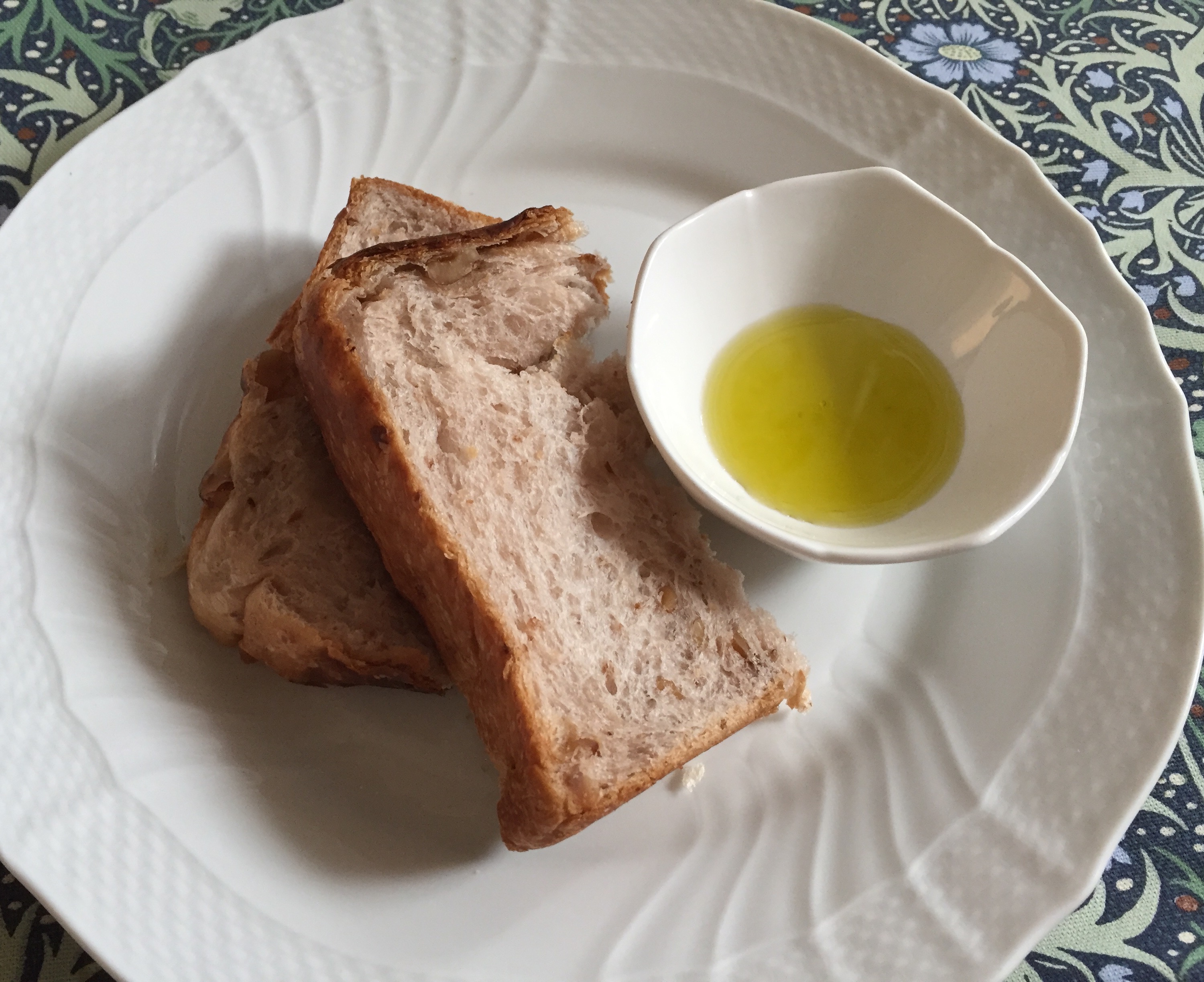 これは王道の食べ方ではないでしょうか?!パンの豊かな小麦の香り・ほのかな甘さ×オリーブのフルーティーな香り・微かな苦味が主張してもし過ぎず、良いバランスを取っています!