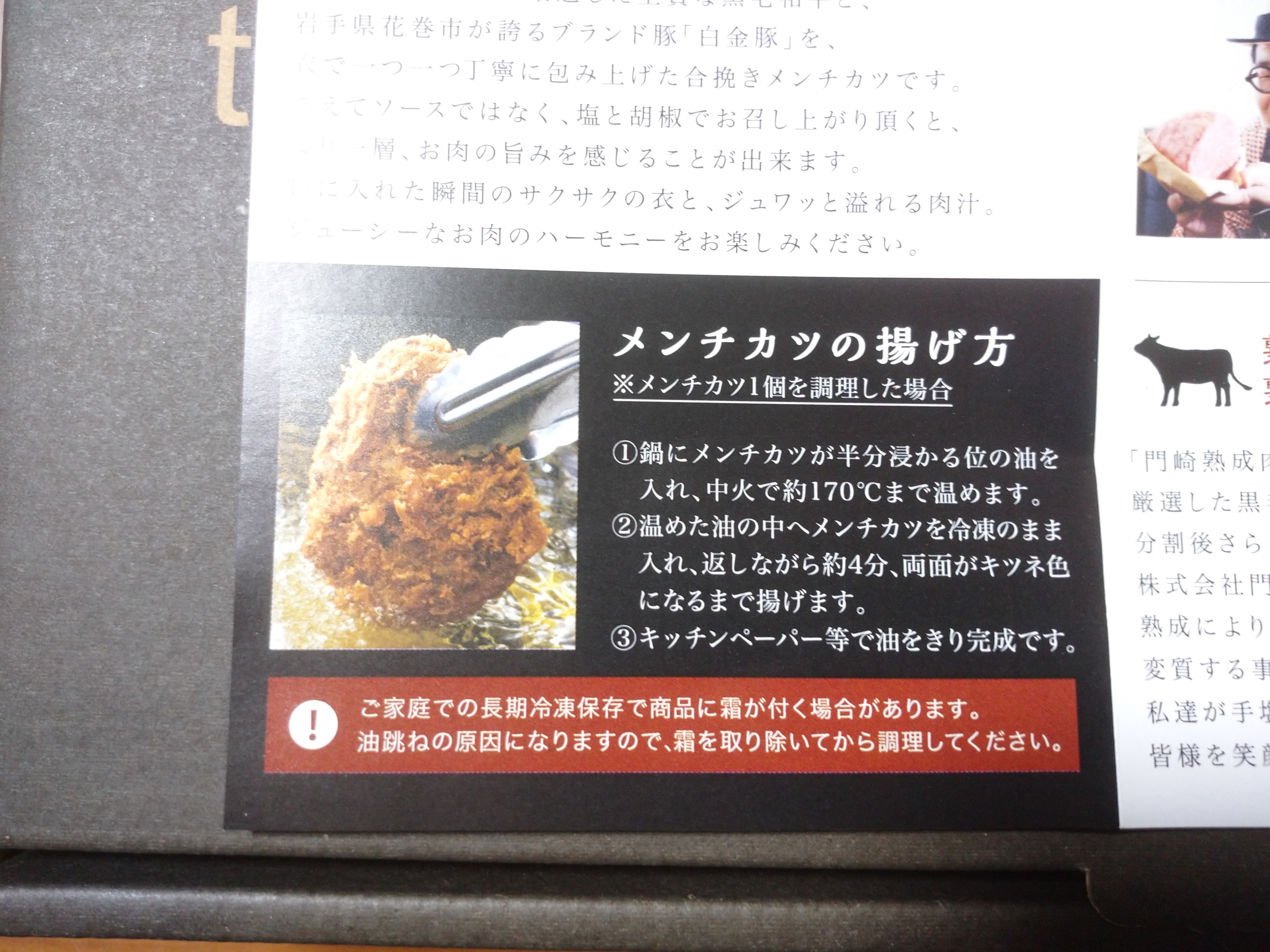 ▼「格之進メンチカツ ご家庭での美味しい揚げ方」