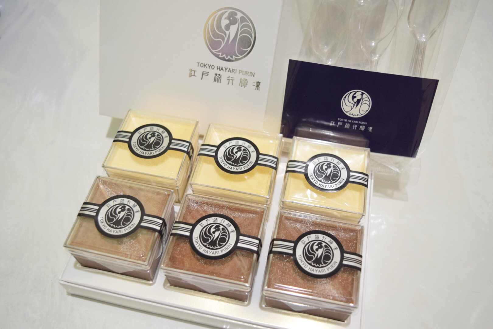 江戸流行婦凛のプレーンとチョコレートが同時に楽しめる商品です。プリンは1つ1つ蒸し焼きによる製法で丁寧に手作りしています。こだわりの2層プリンは、上はなめらか、下はぷるんとした食感で、他にはない口どけを楽しめます。
