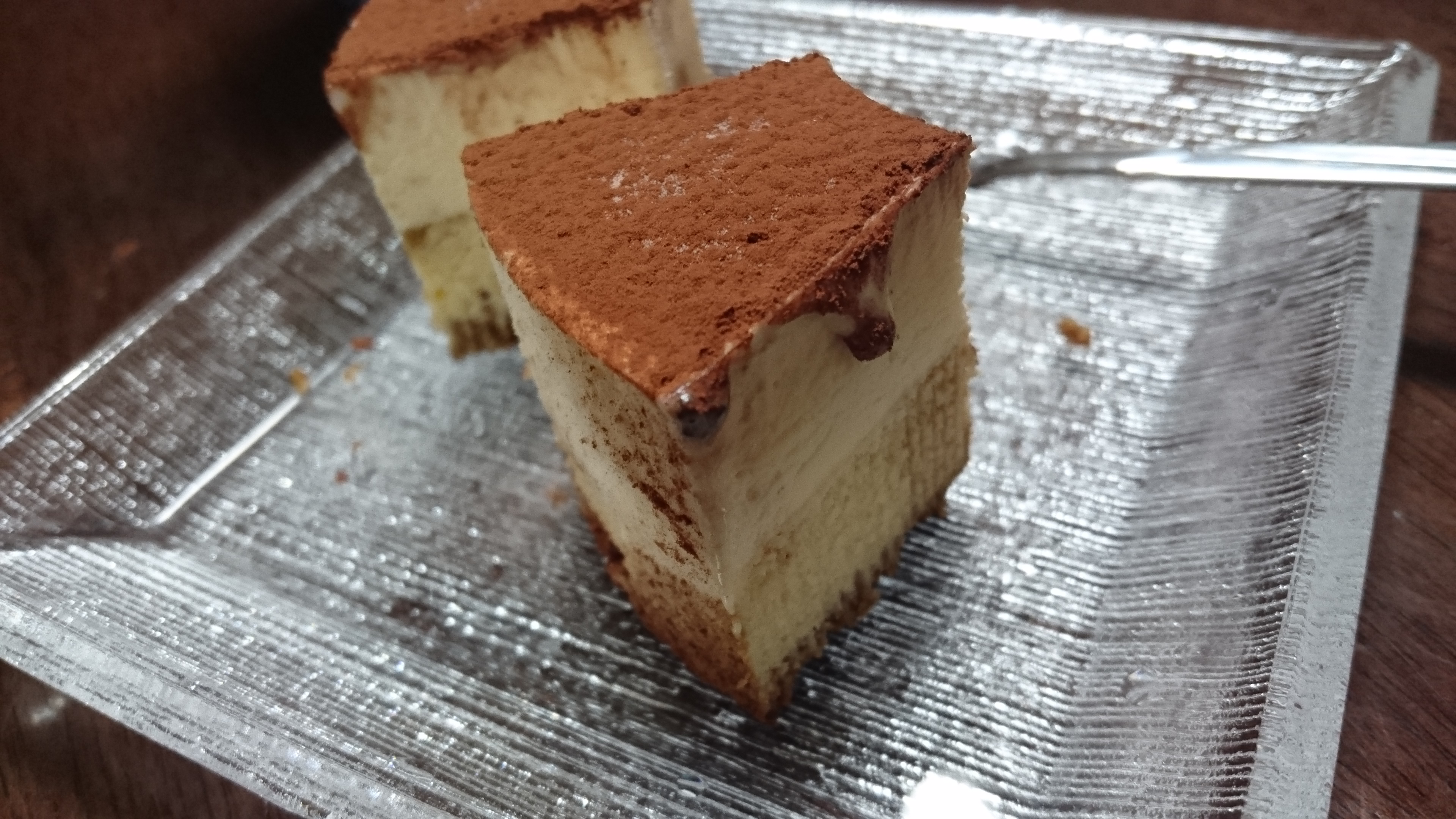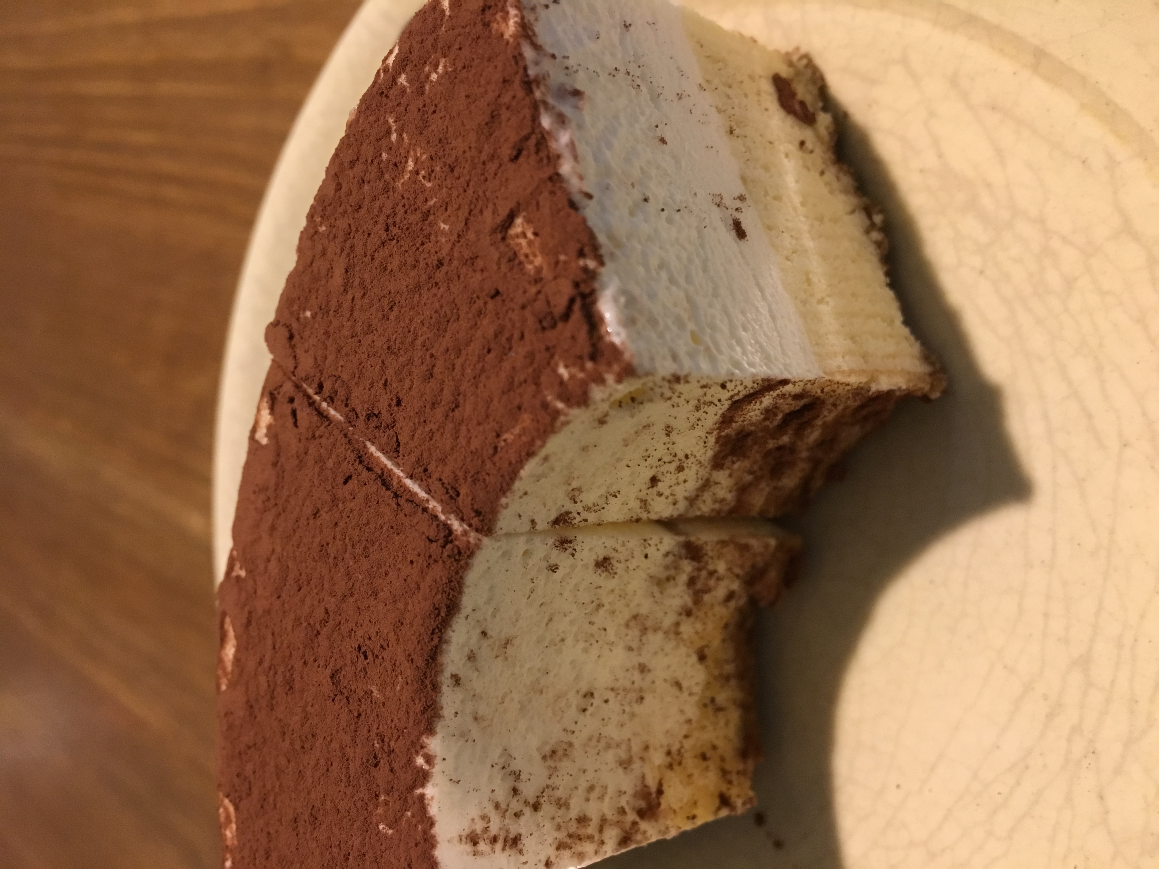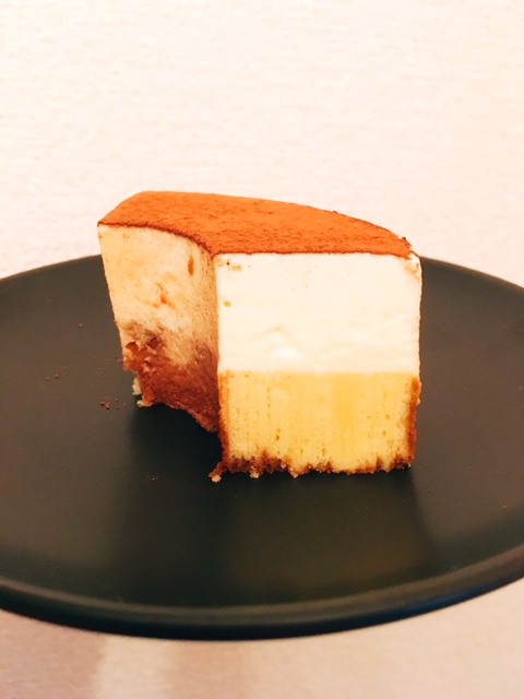 一口目を食べてびっくり!さっきとは別物です。今度はティラミスの部分がふわふわでバームクーヘンはよりしっとりしていて、本当に美味しかったです。温かい牛乳と一緒に頂きましたが、相性ぴったり♪
