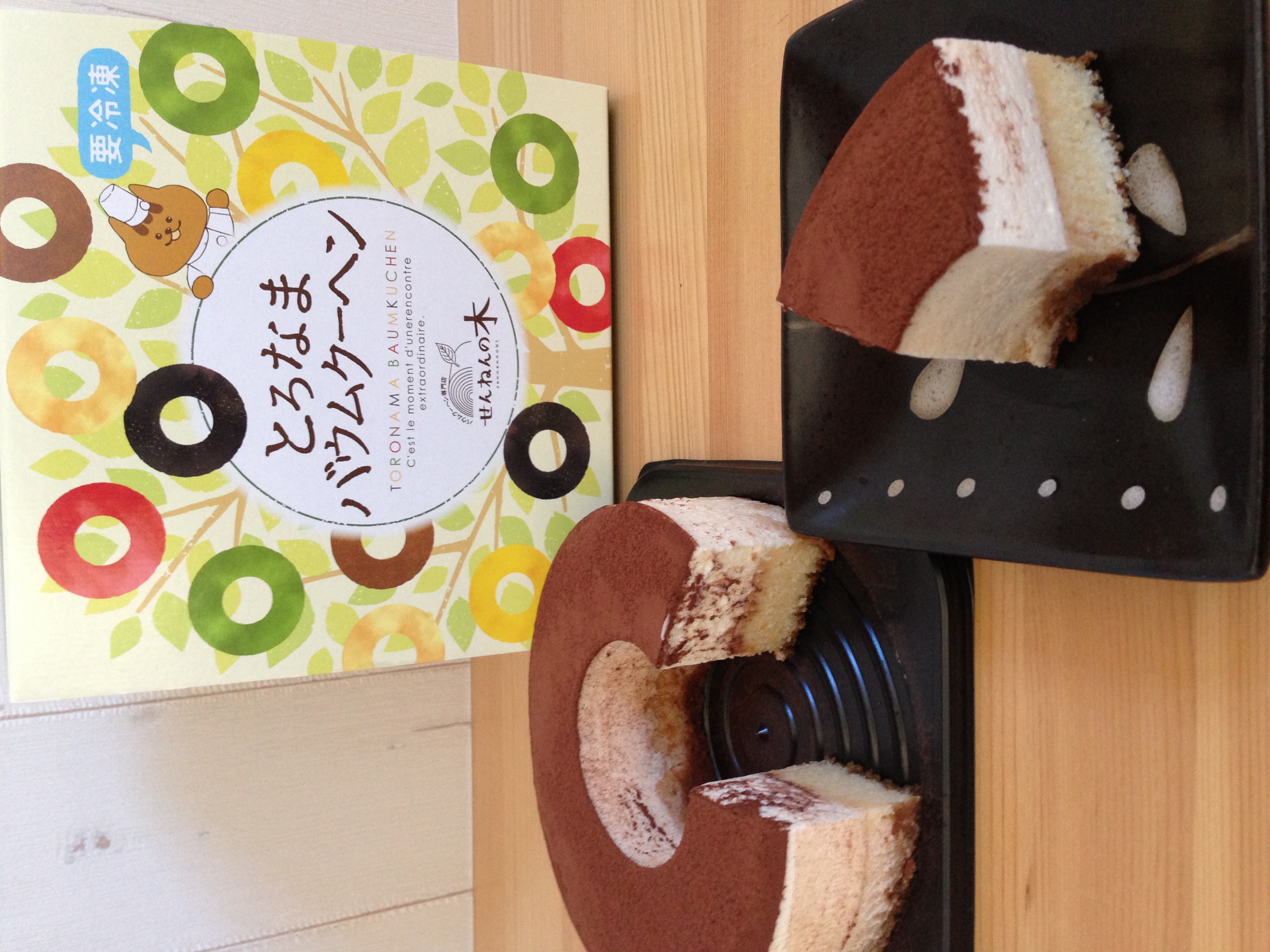 冷蔵庫で一時間待てば、とろとろ、ふわっふわっの食感のとろなまバウムクーヘンが味わえます。また、凍らせて食べたらアイスティラミスとしても楽しめます。