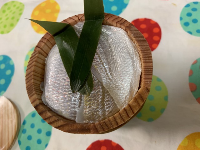 樽を開けると、ぎっしり小鯛がつまってて、びっくりしました。テンションあがりました!