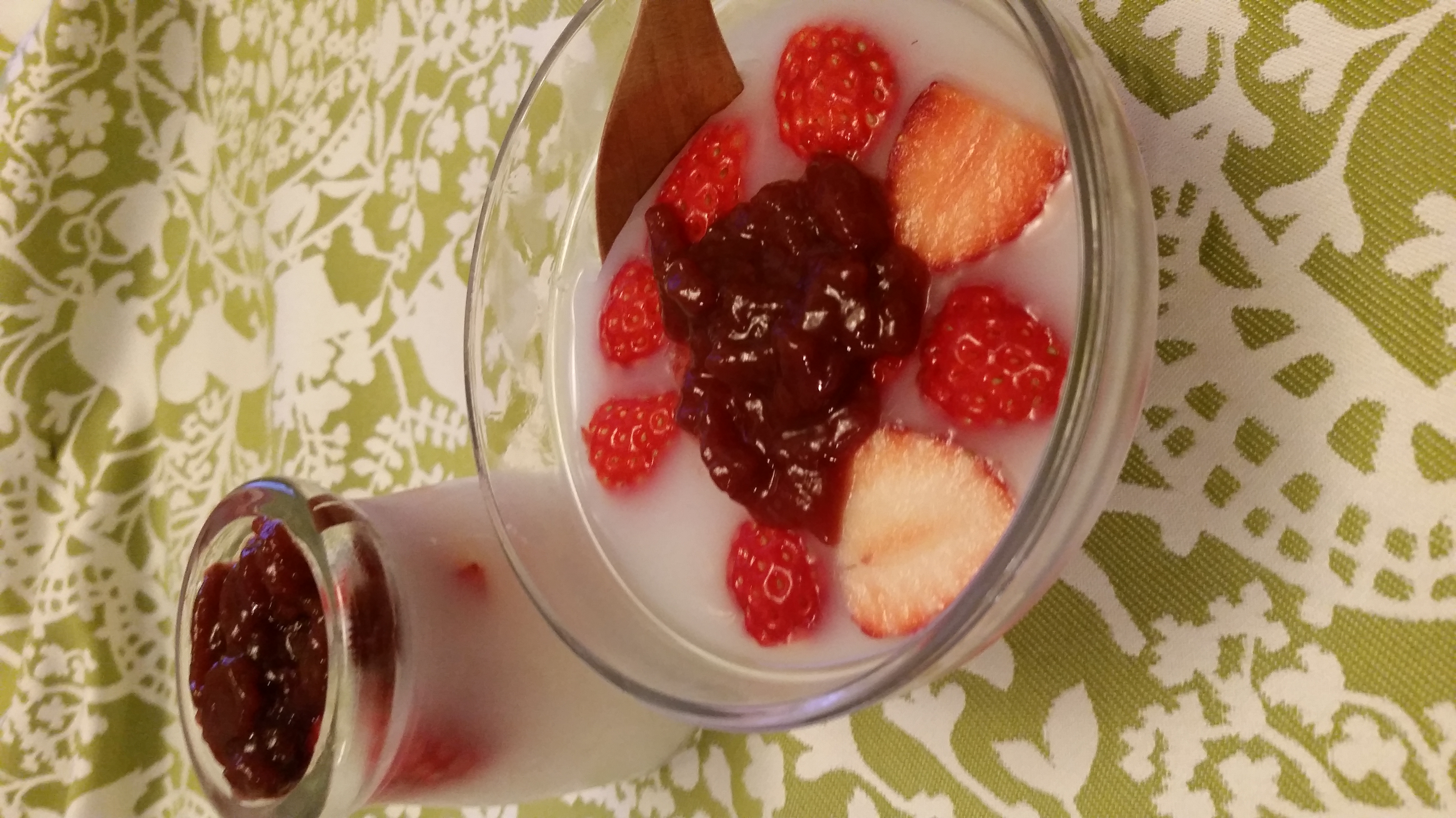 次に、いちごミルクゼリーの中に少し溶かして入れて溶かし固まりそうなところでジャムを上にのせました。これも、お婆ちゃんを始め子供達も(高校生)、合う!と喜んでおりました。甘味が主張してないのがとても良いと家族は言っておりました。