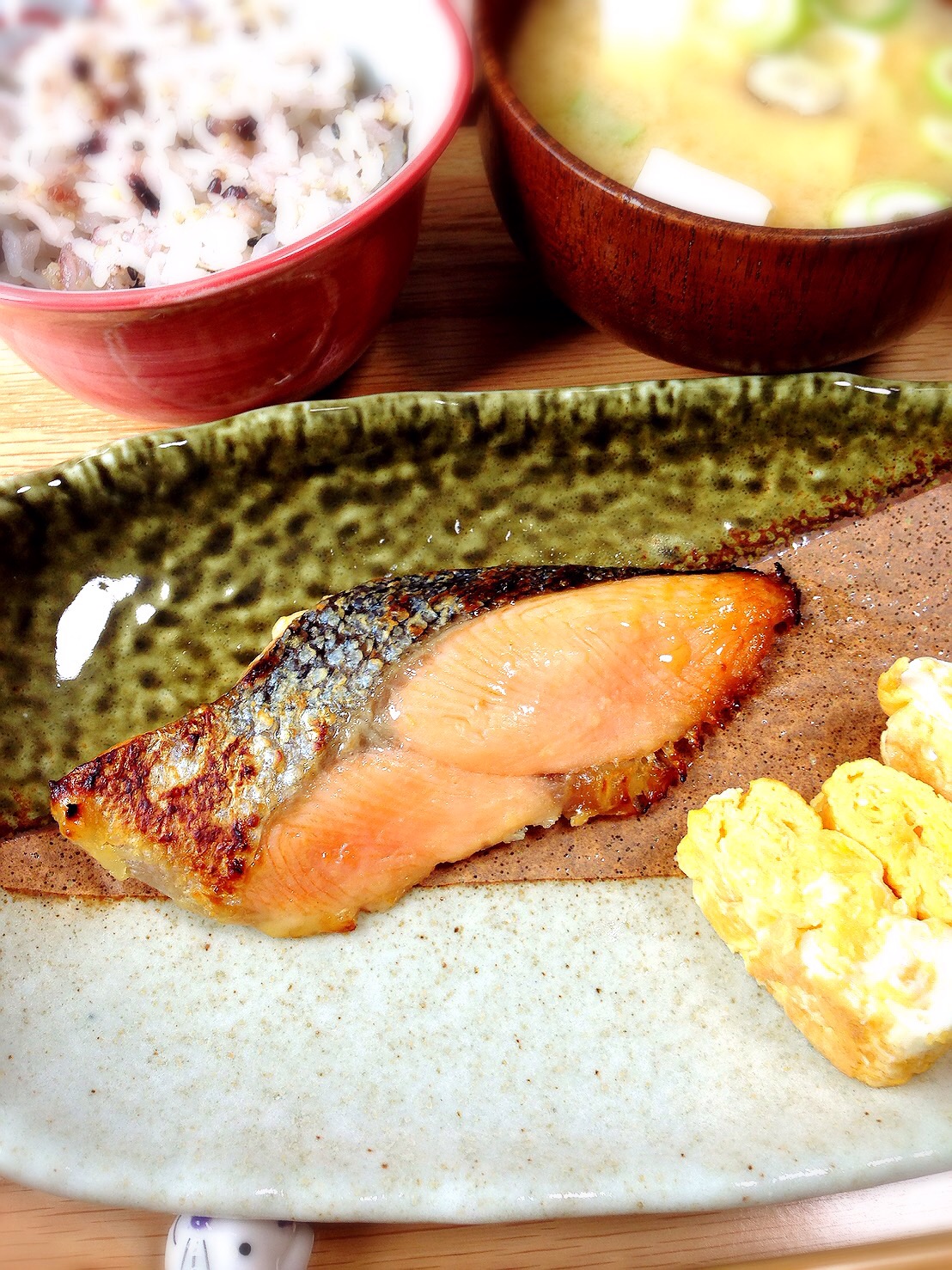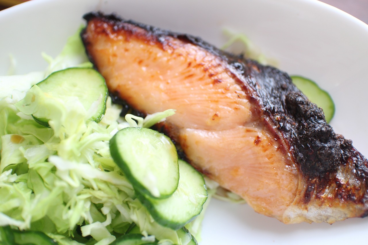 キングサーモンの西京漬けは初めて。普段の塩焼きよりも西京漬けの方がとってもおいしく感じました。皮の部分も香ばしく焼けて最高です。