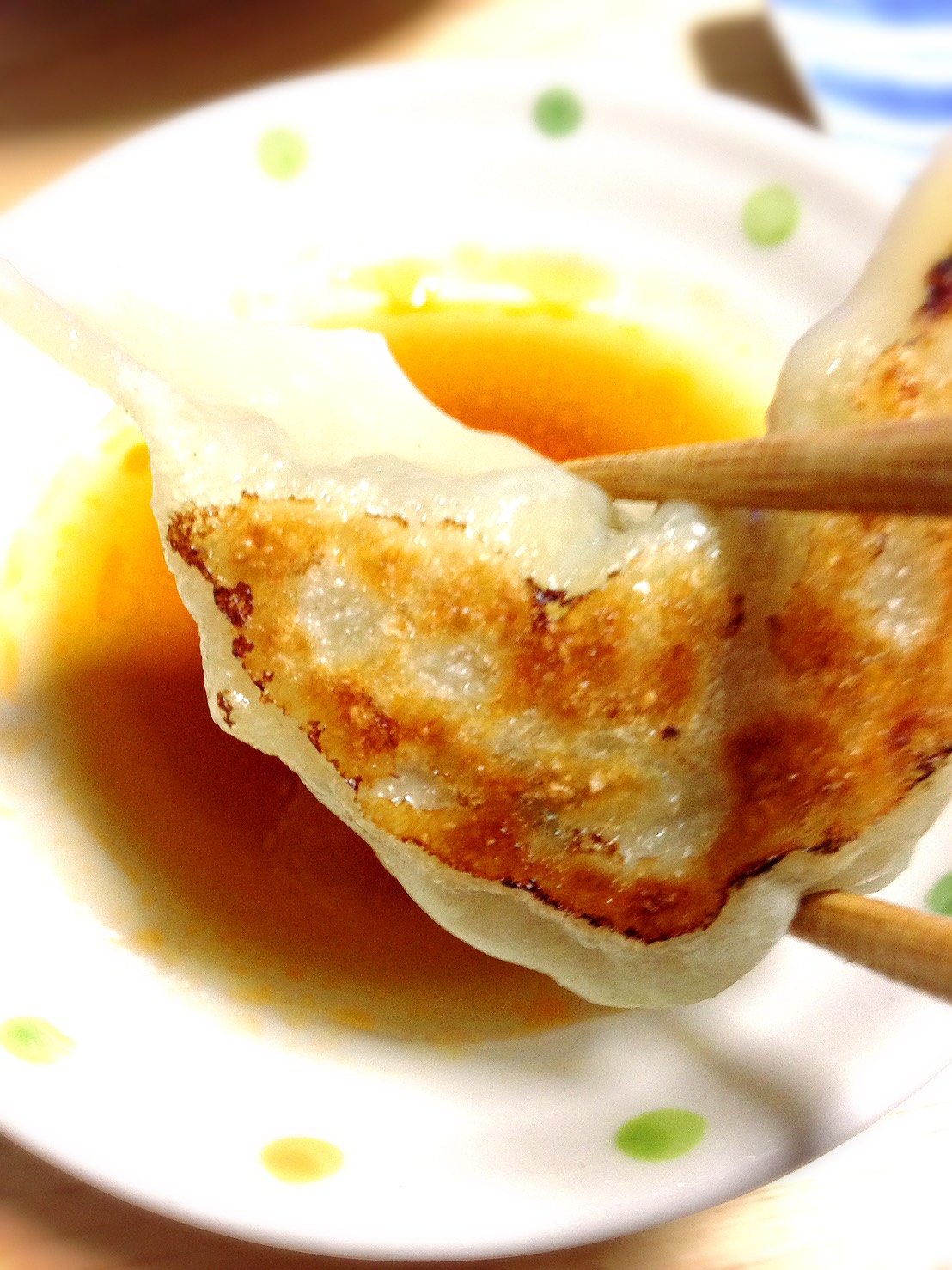 そして、20個のうち、半分は餃子のタレにつけていただきました。
